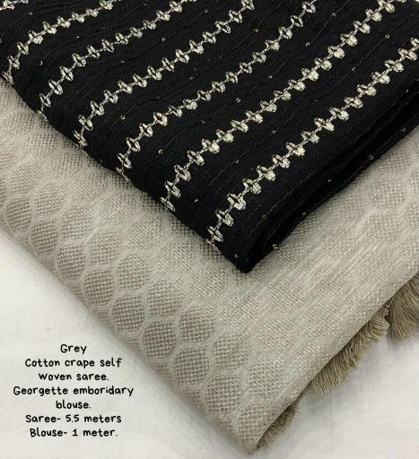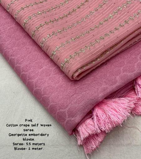 new arrivals New cotton crape catalog Quality- soft cotton crape saree with allover self woven design. Cotton tassels on pallu. Blouse- soft georgette heavy embroidery. Rate- 699/*- +ship Top trusted quality |