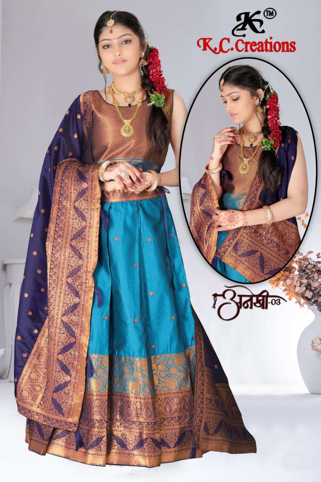 kc creation anekhi vol 3 readymade fancy lehenga blouse and dupatta kids collection