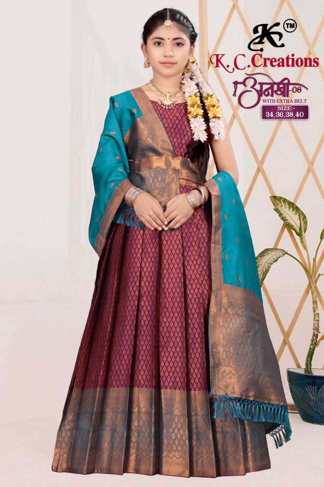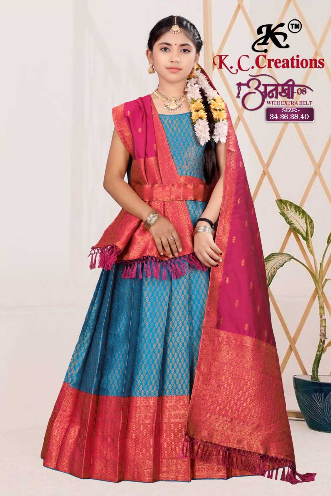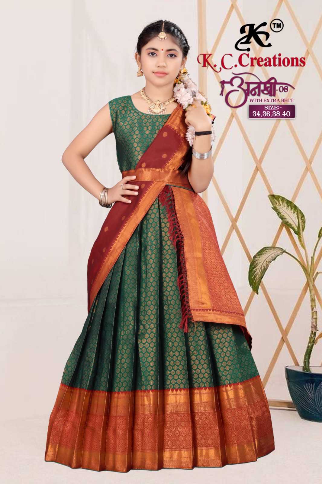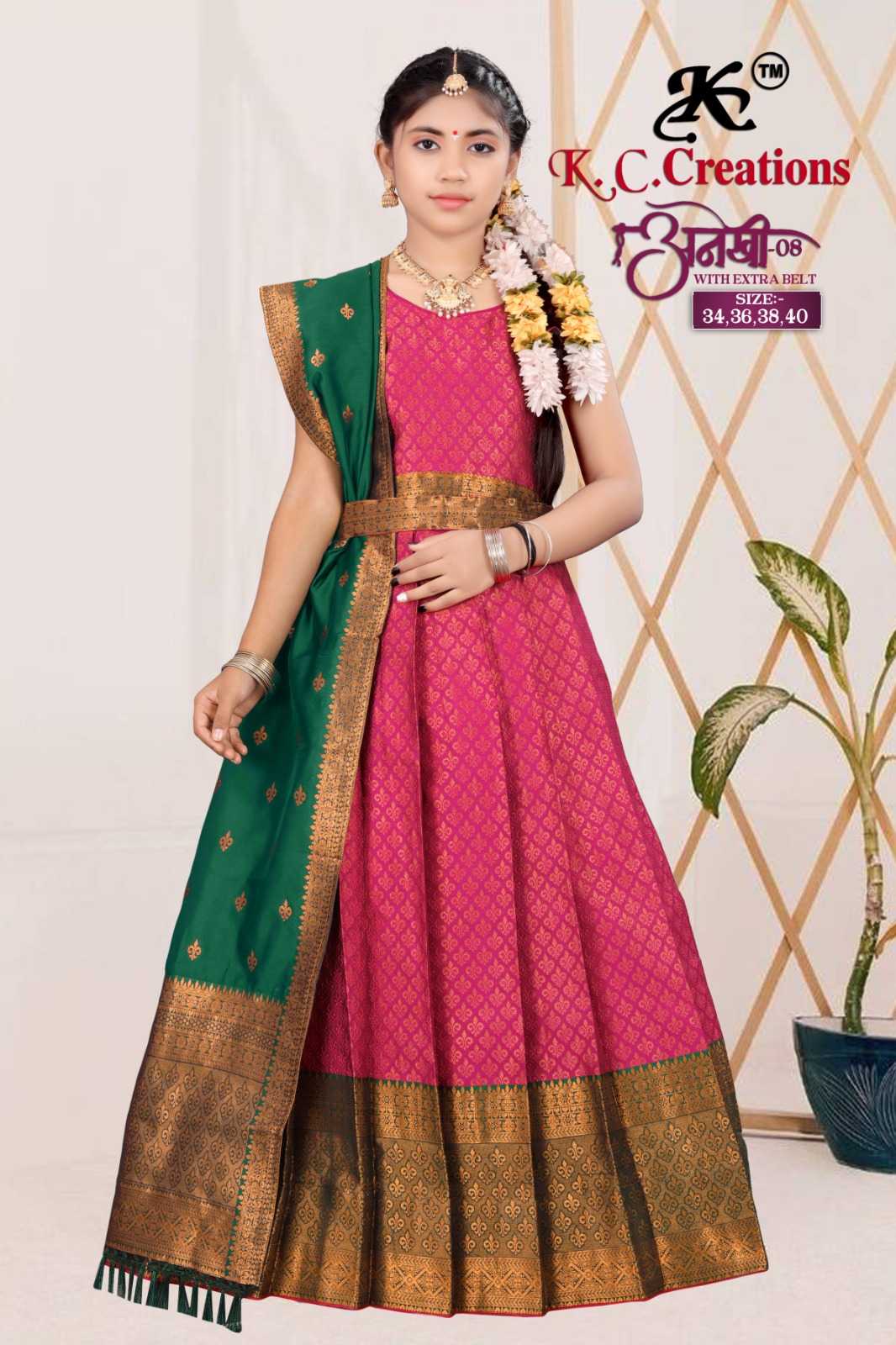 kc creation anekhi vol 8 beautiful kids wear readymade pattu lehenga catalog