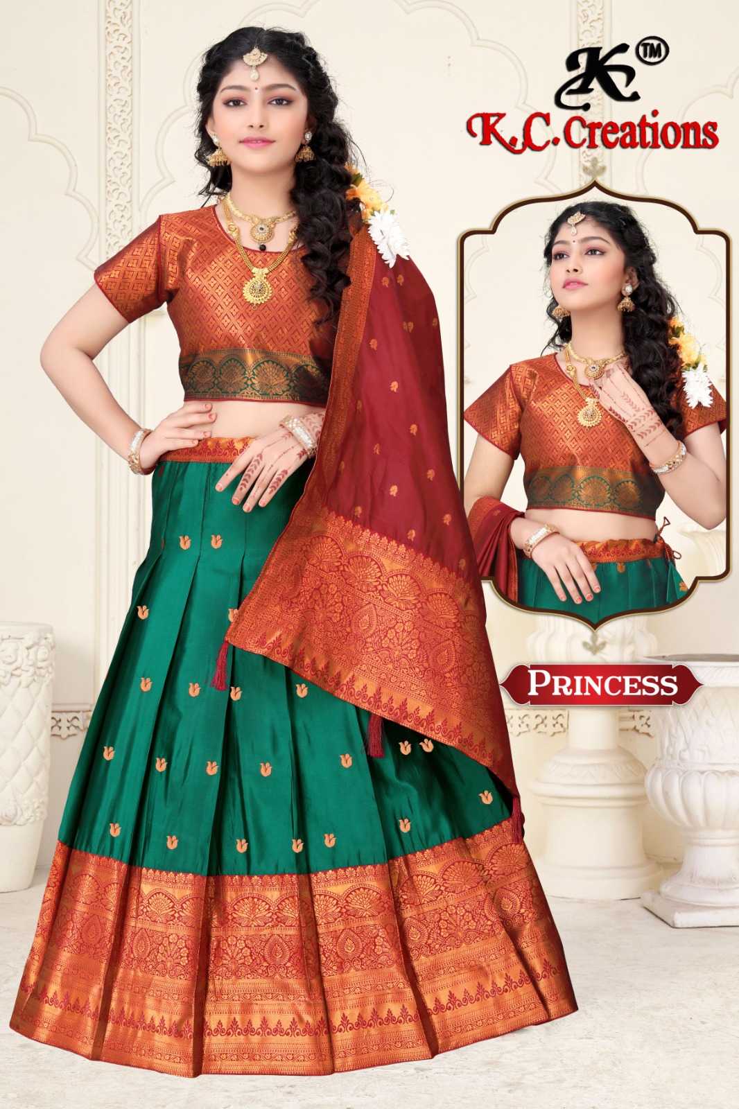 K C CREATION PRINCESS 26 to 40 = 875/ PATTU KIDS LEHENGA Moq 48 pc |