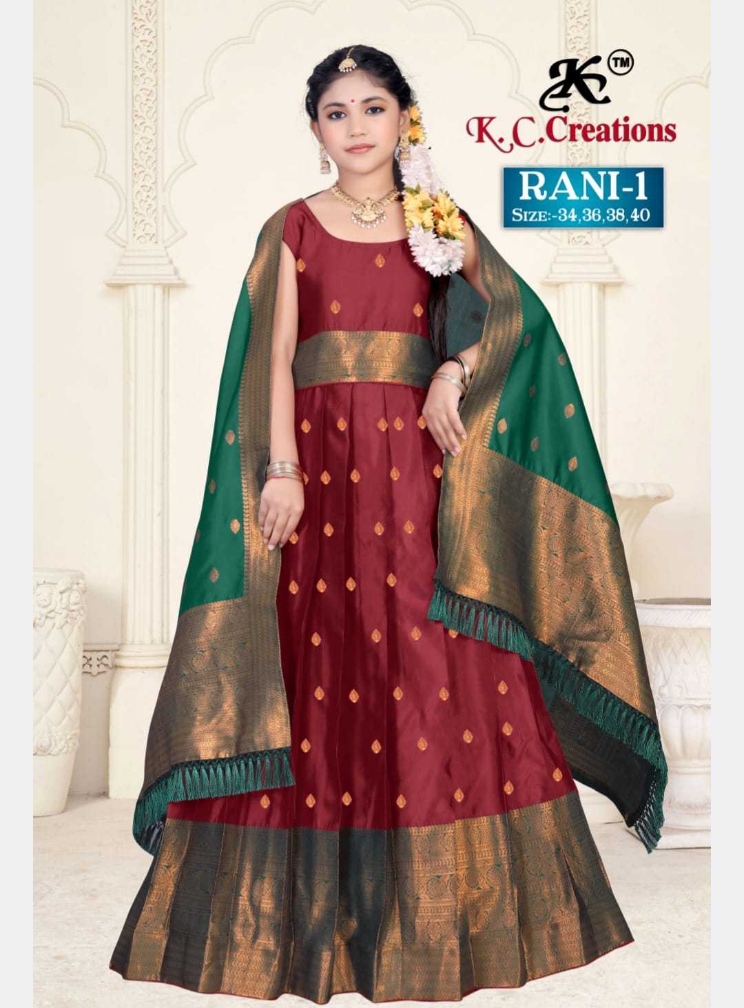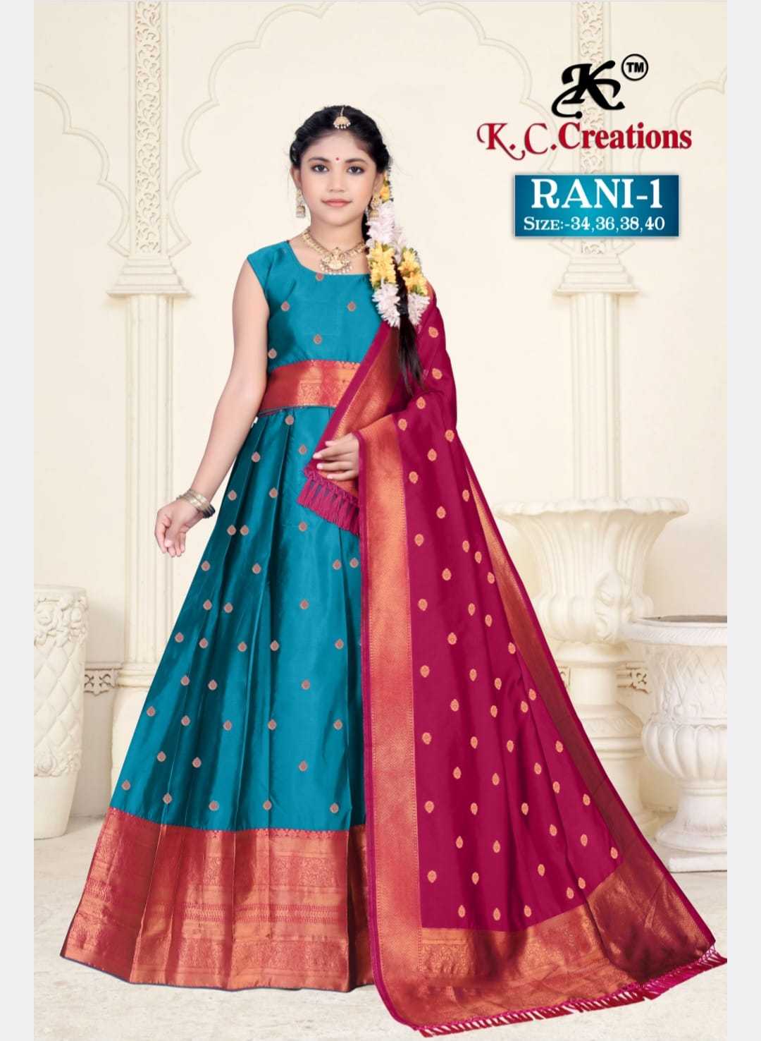 kc creation rani vol 1 amazing festive girls wear collection readymade long gown with dupatta