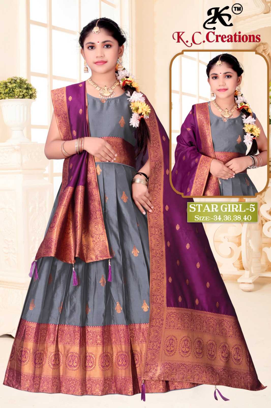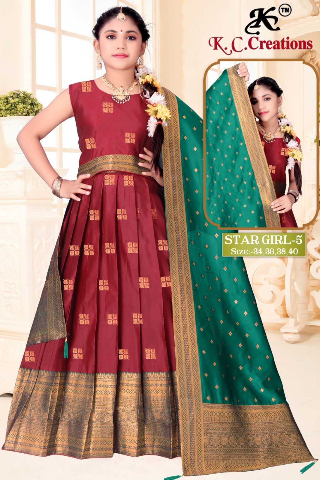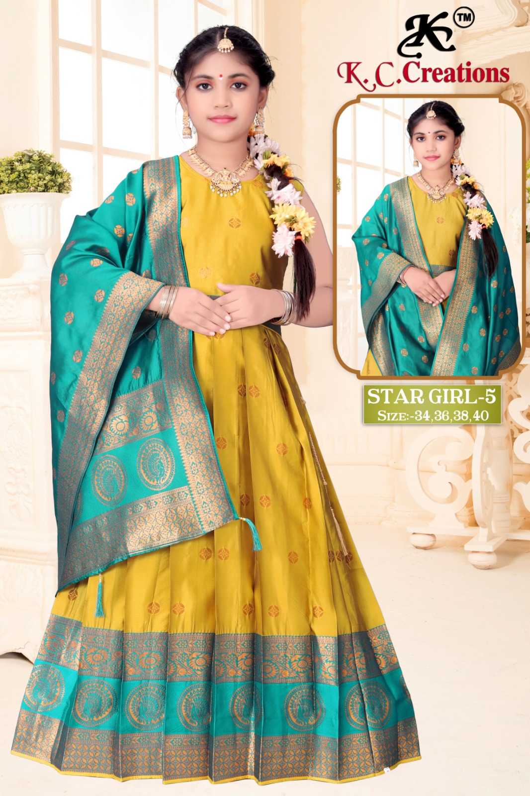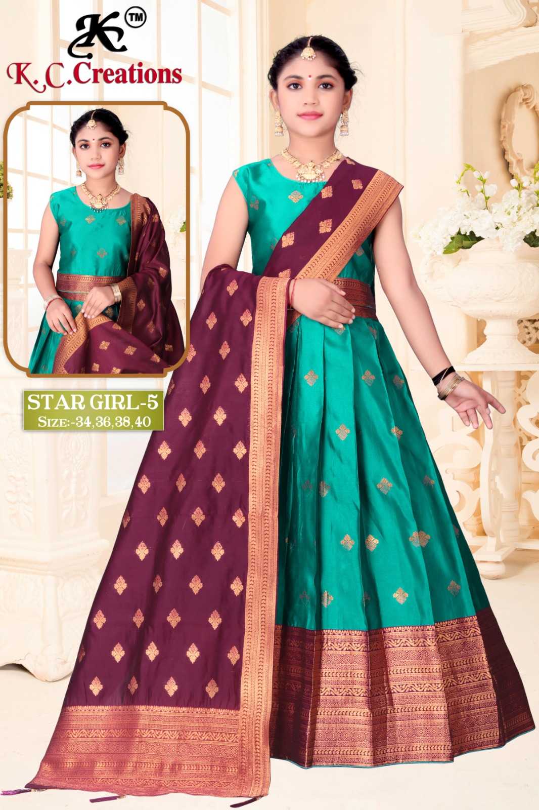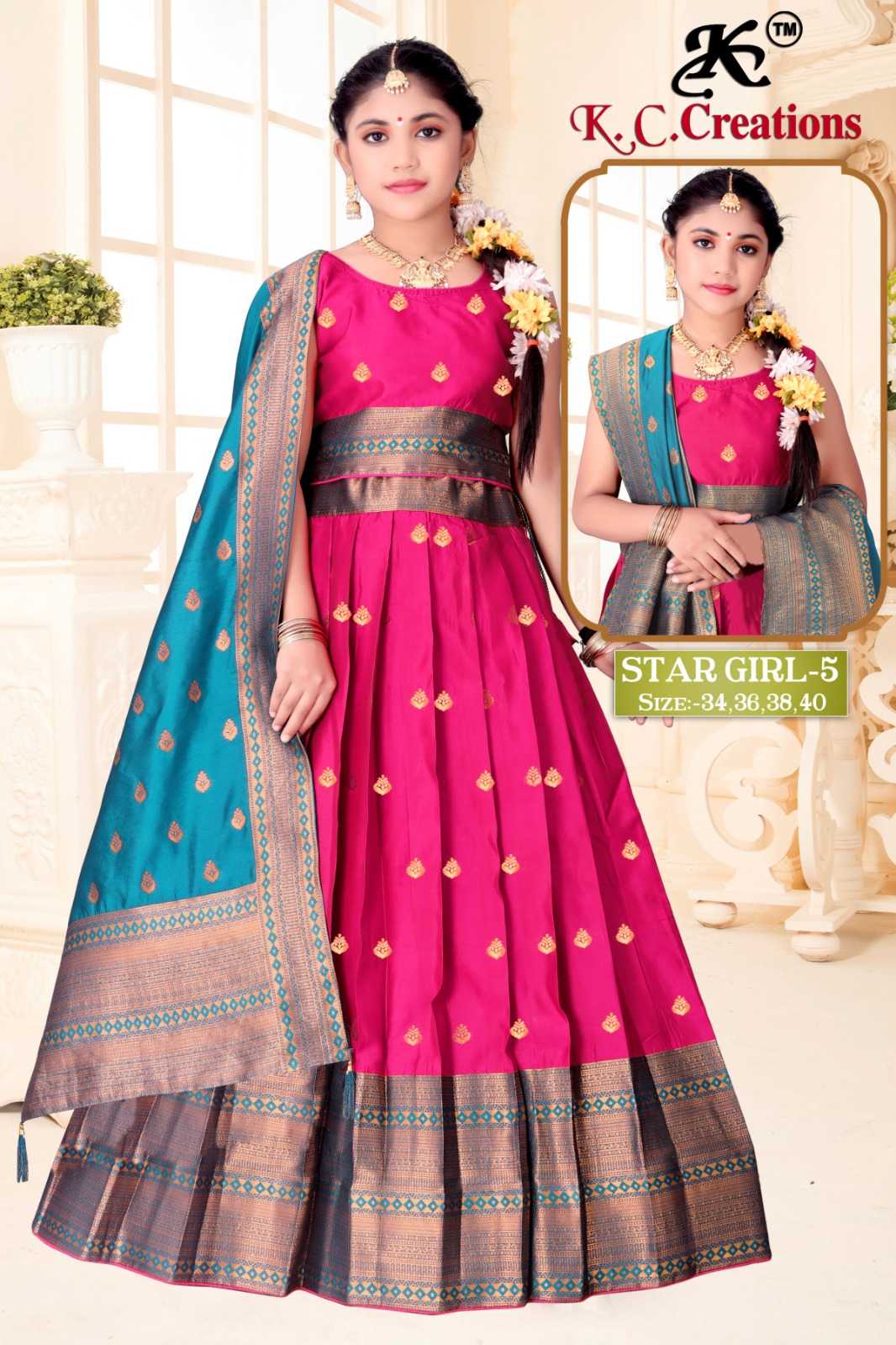 kc creation star girl vol 5 fullstitch kids wear pattu lehenga combo set