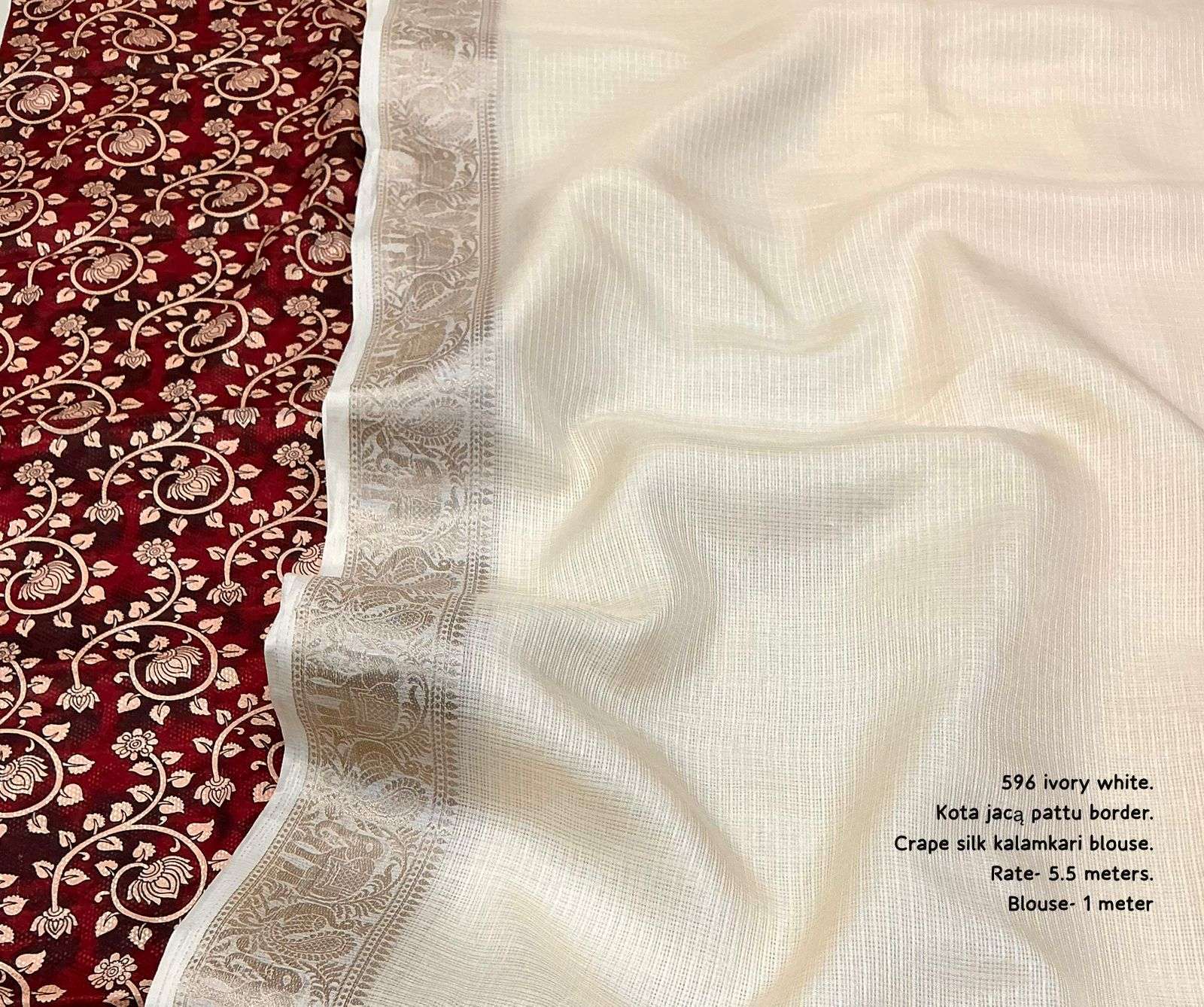 New kota sarees KC - SILK KOTA (BENTEX BORDER) Quamity- soft kota saree with zari and simple shine sartin woven border. Tassels on pallu. Blouse- printed jute silk kalmkari blouse. Rate- 750+ship Top trusted quality |