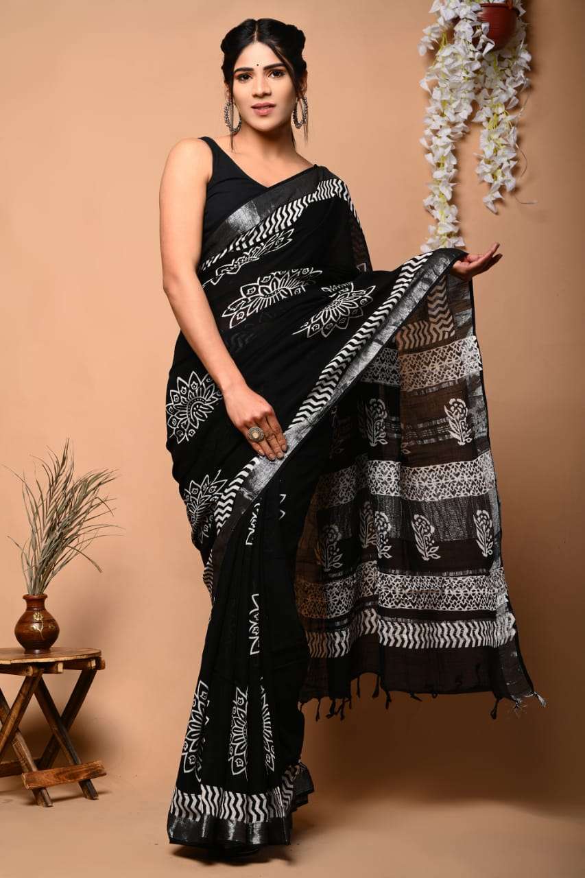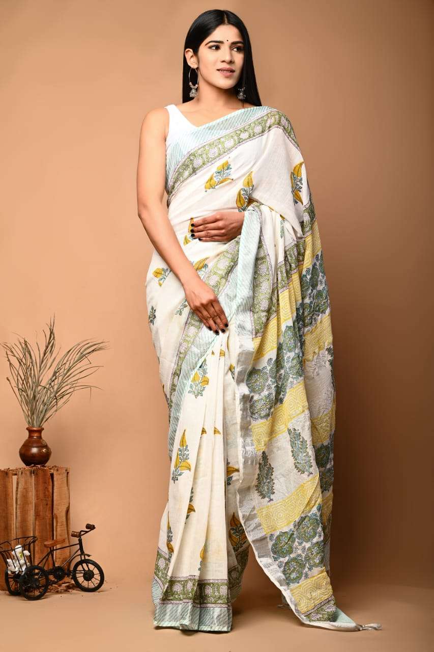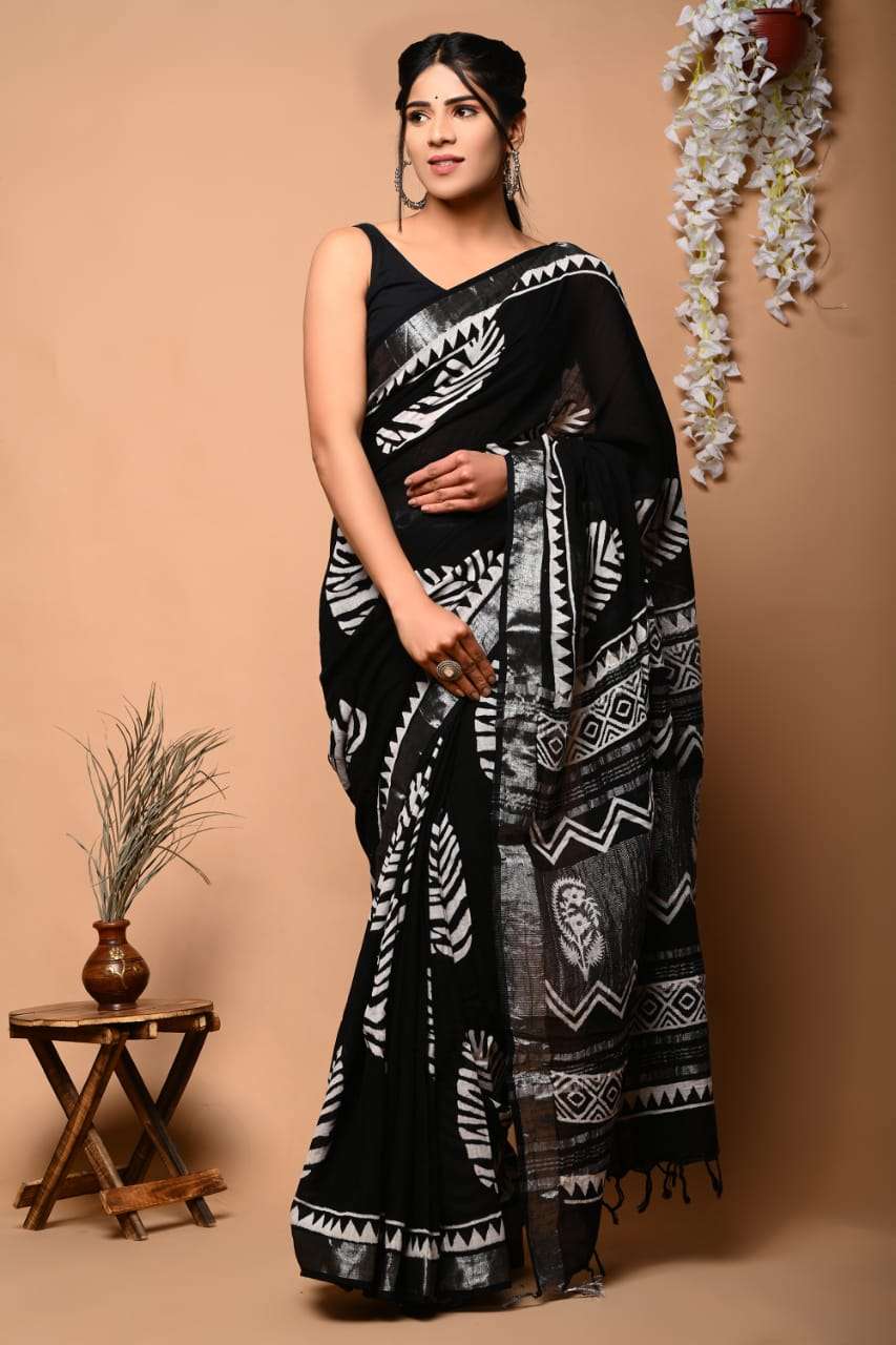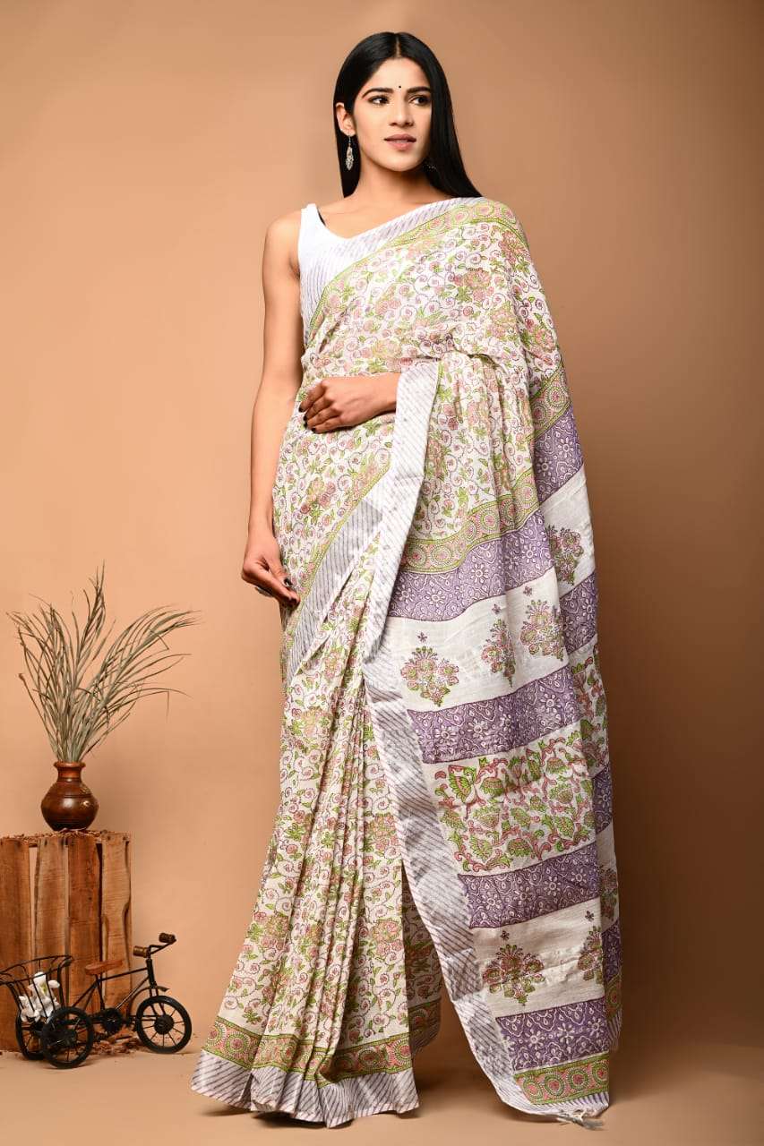 kc pushpa vol 3 hand block printed soft linen fabric cotton slub saree vegitable prints