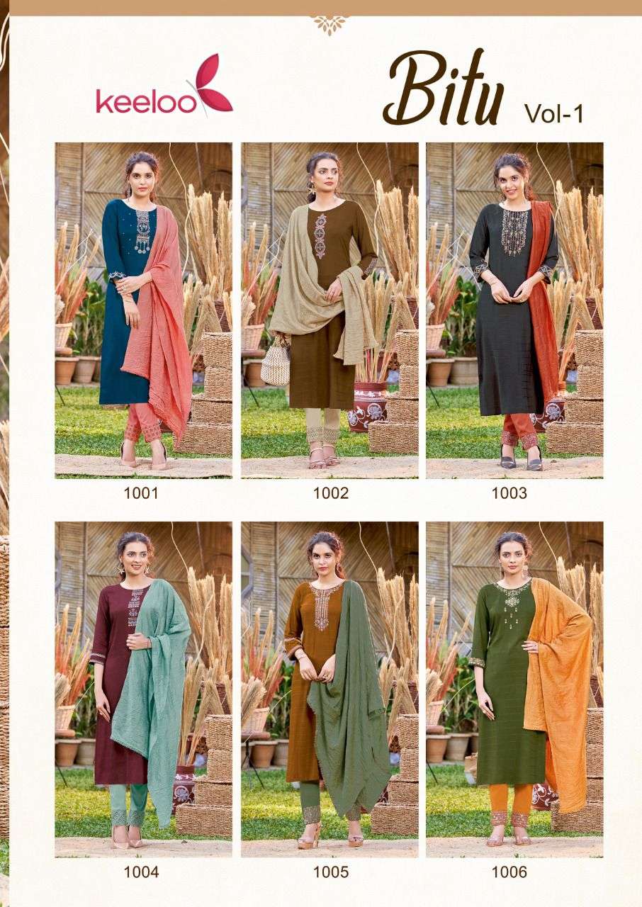 keeloo bitu vol 1 3pc readymade kurti pant dupatta sets