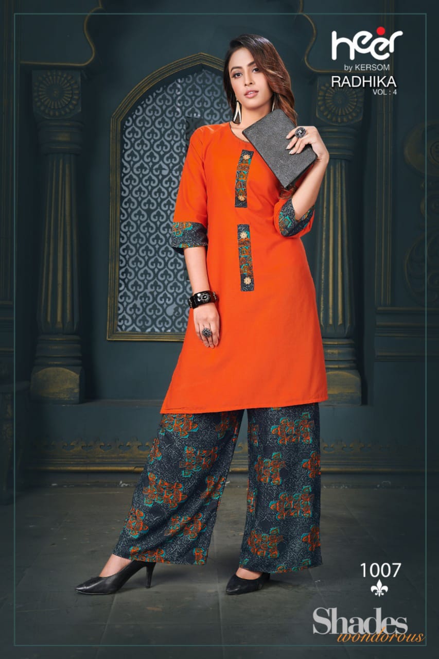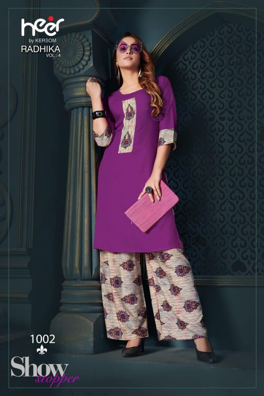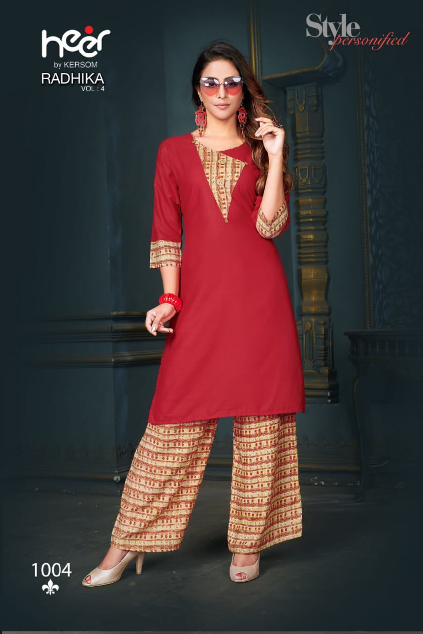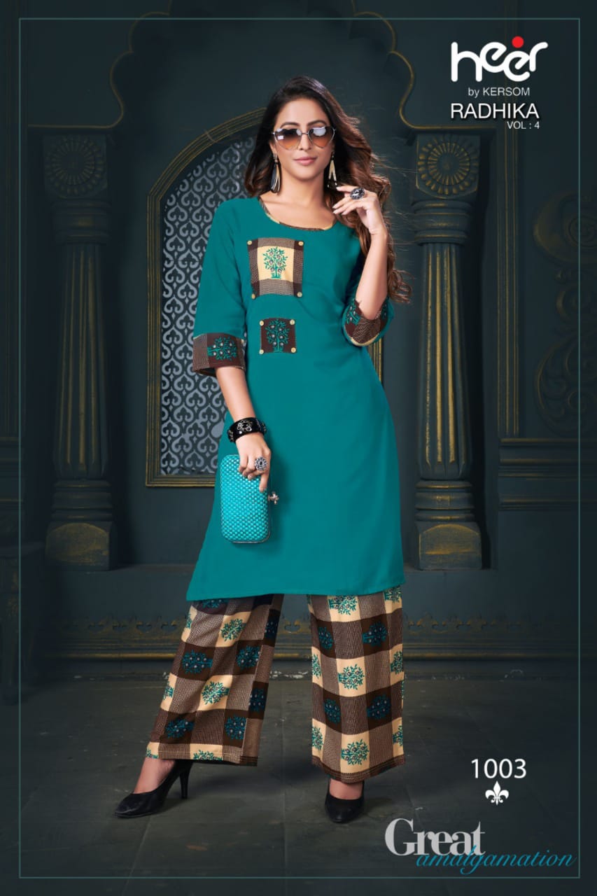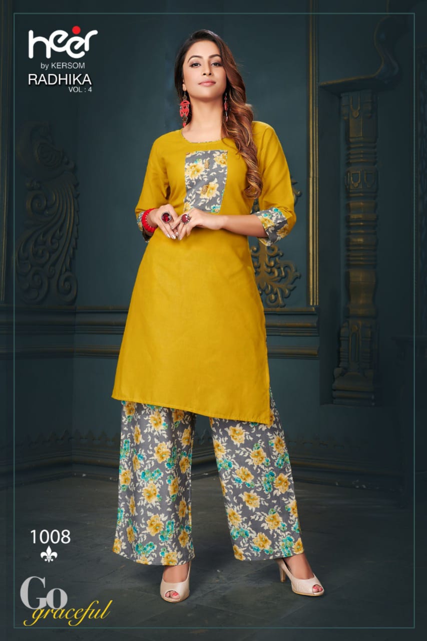 Kersom Heer Radhika Vol 4 Cotton Kurti With Plazzo Wholesale Price