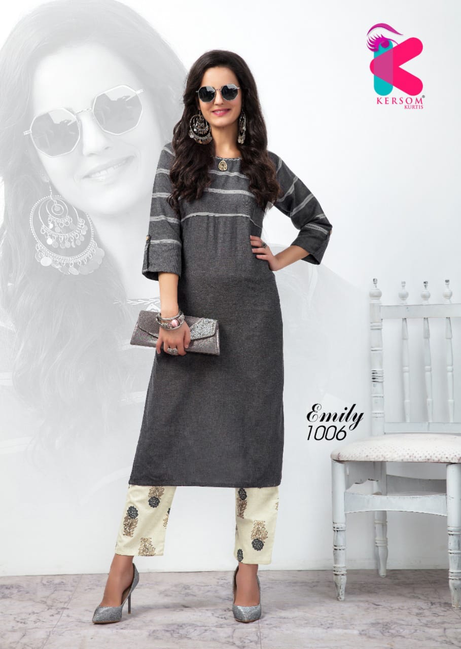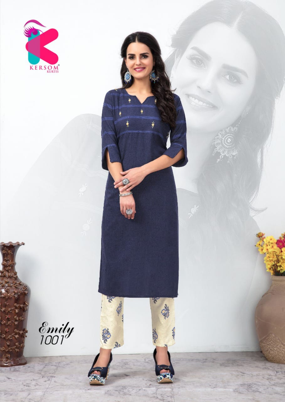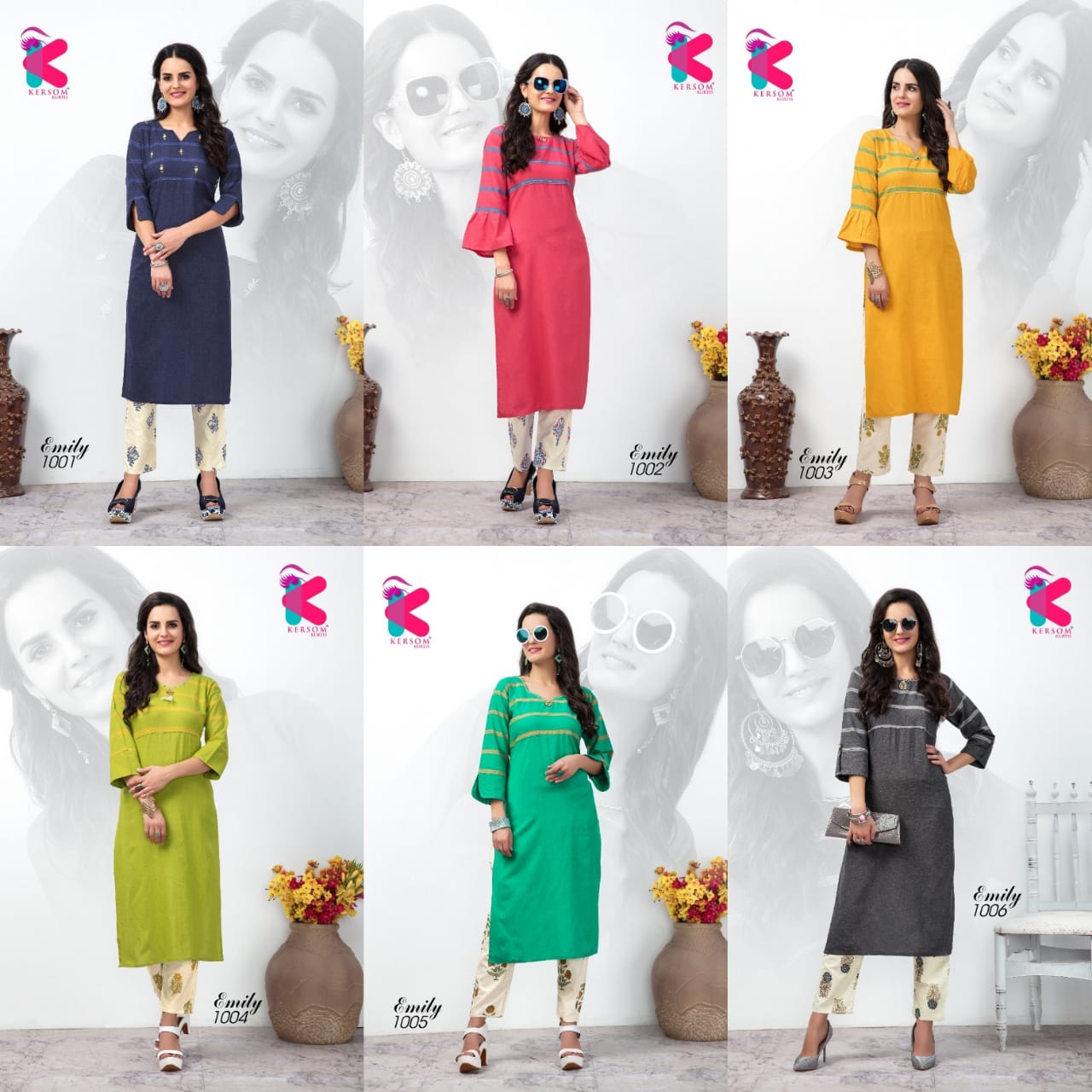 Kersom Present With Pant Emily Top:- Heavy Cotton Dobby + Pant:- Heavy Cotton Printed 46 Length Silaai Pattern Concept Rate :- 611/- Sizes :- M,L,XL,XXL Single Matching 6 Designs Delivery :- *Within 2-3 Days Max |