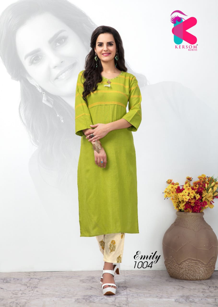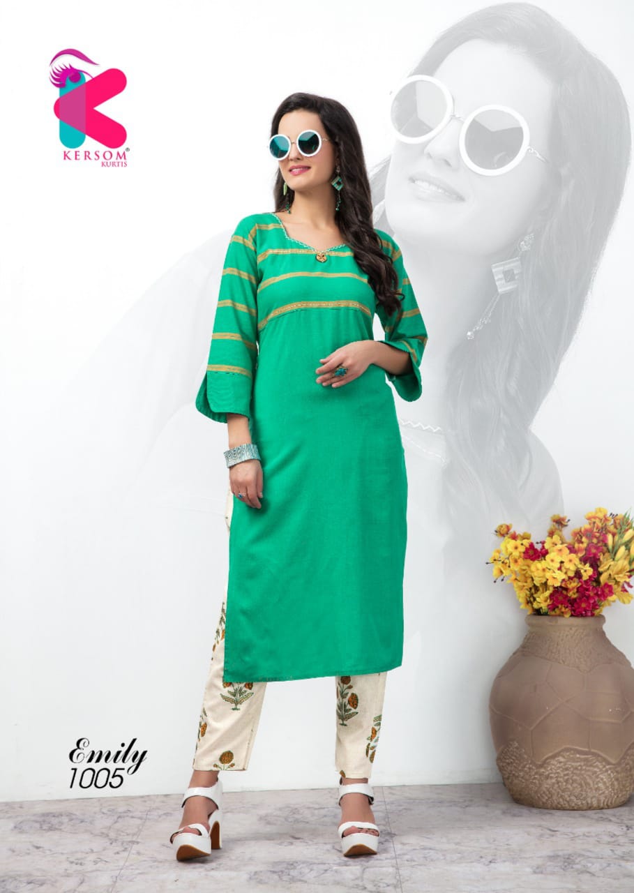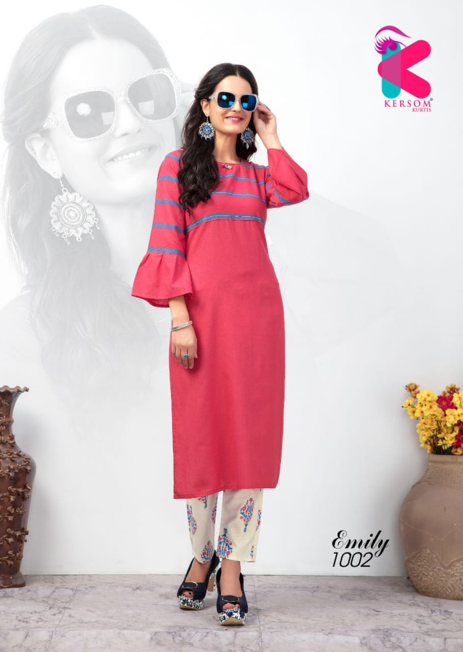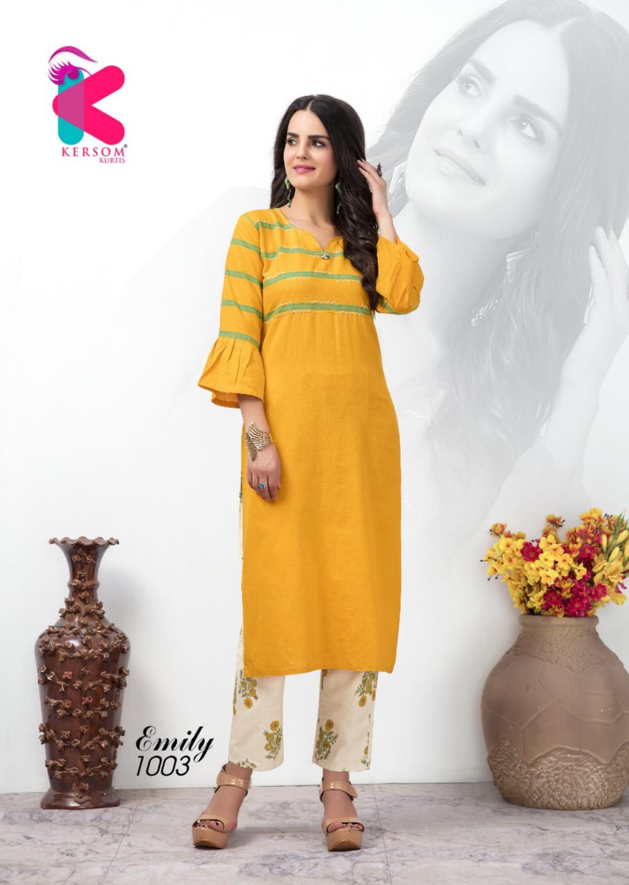 Kersom Present With Pant Emily Top:- Heavy Cotton Dobby + Pant:- Heavy Cotton Printed 46 Length Silaai Pattern Concept Rate :- 611/- Sizes :- M,L,XL,XXL Single Matching 6 Designs Delivery :- *Within 2-3 Days Max |