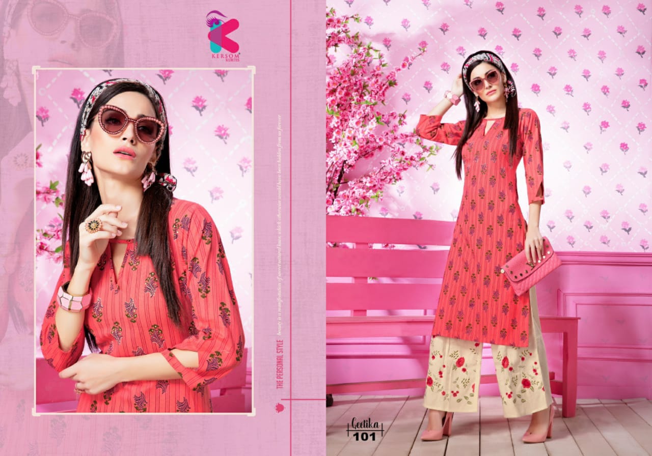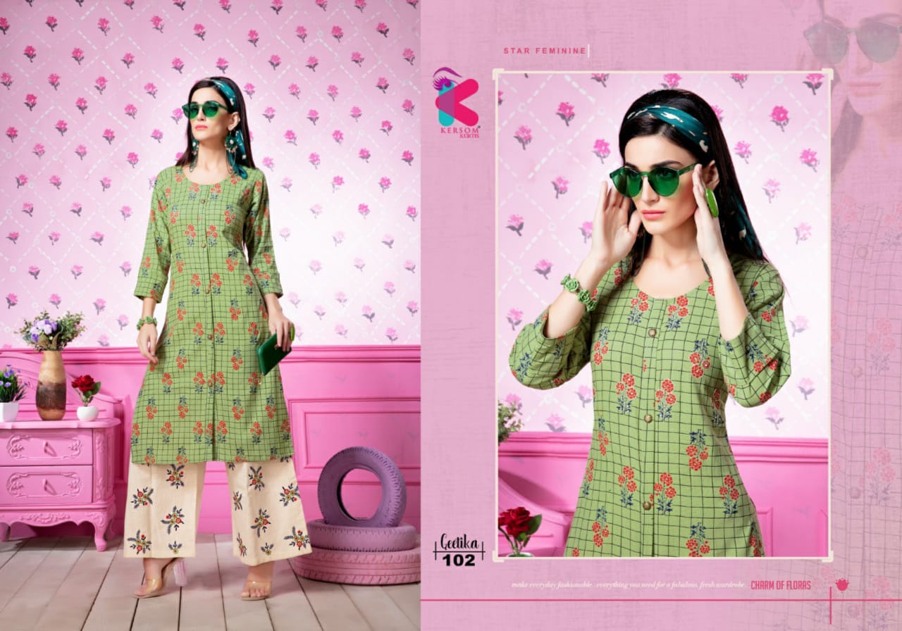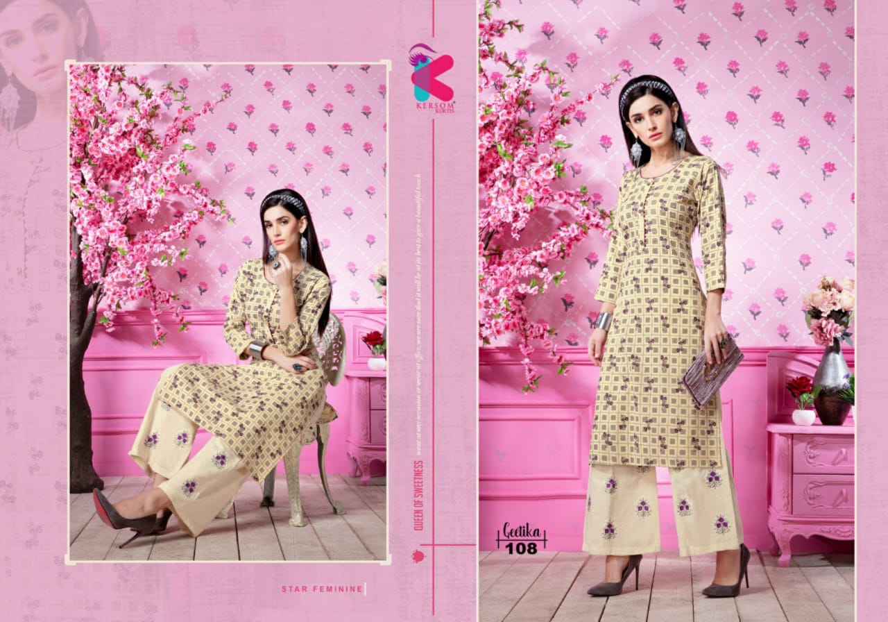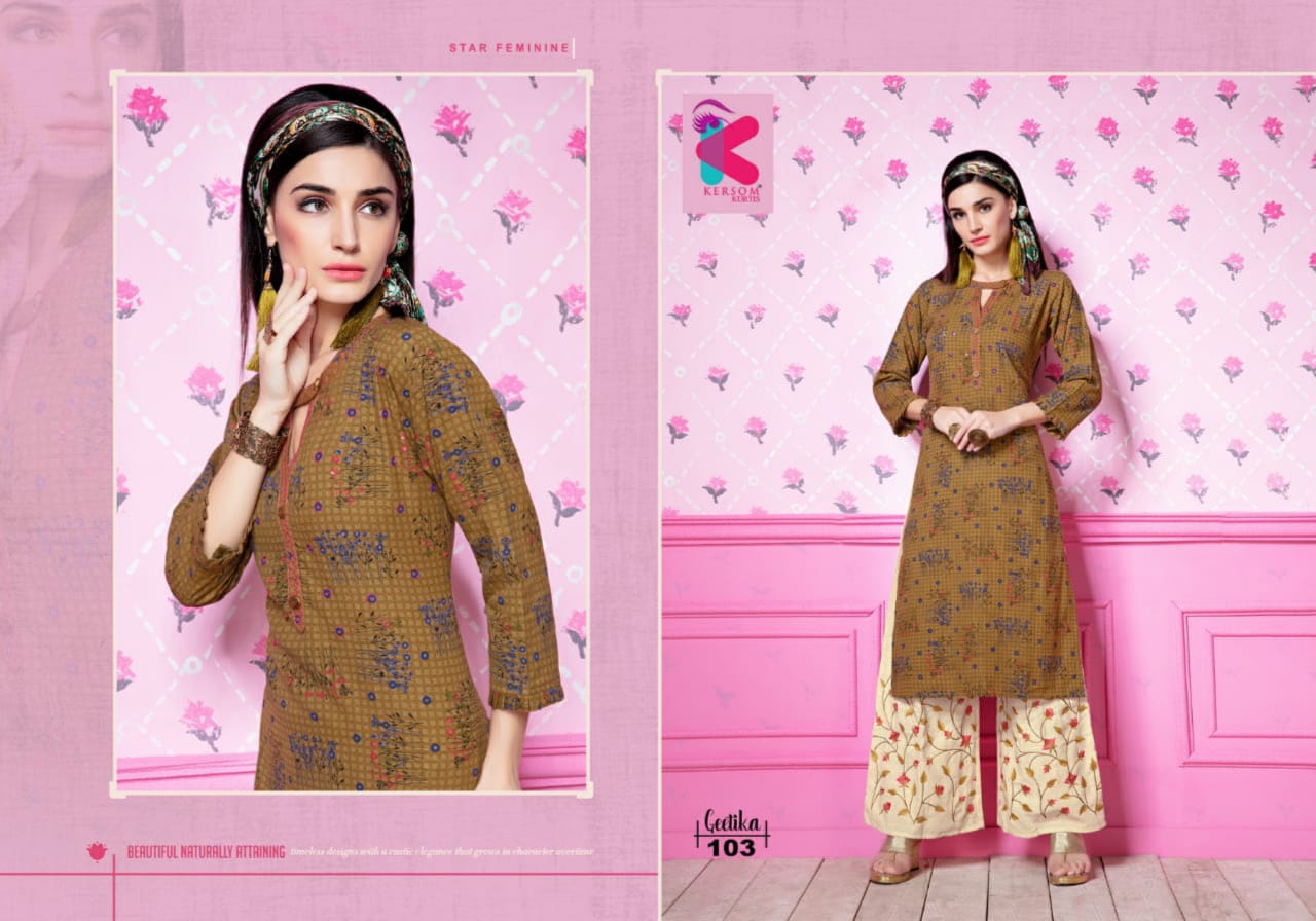 Kersom Present Geetika Linen Cotton Kurti With Plazzo Catlog Collection In India