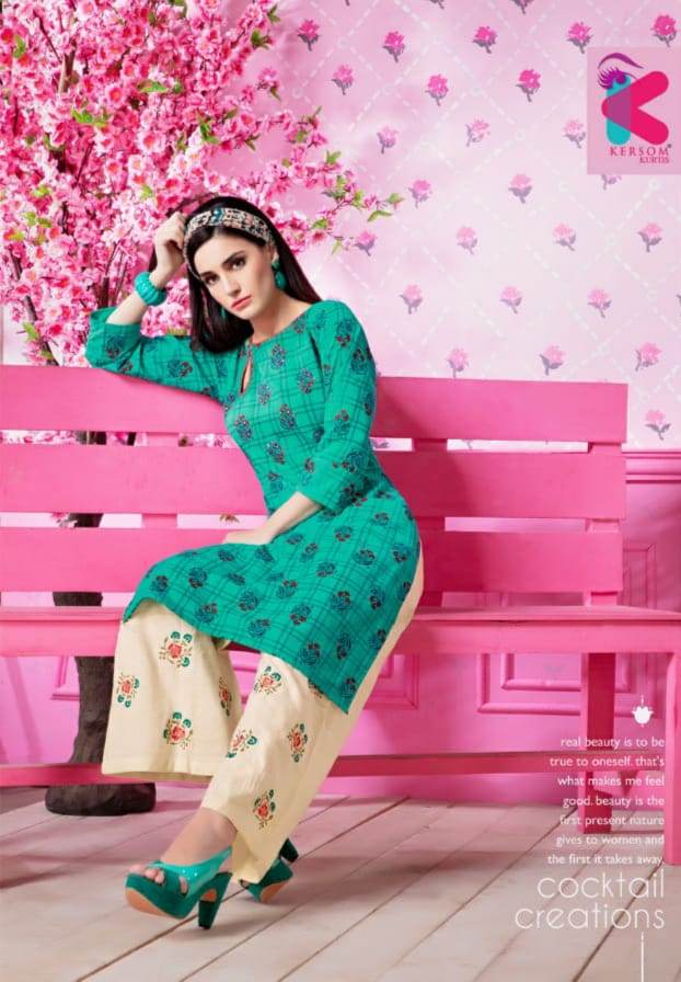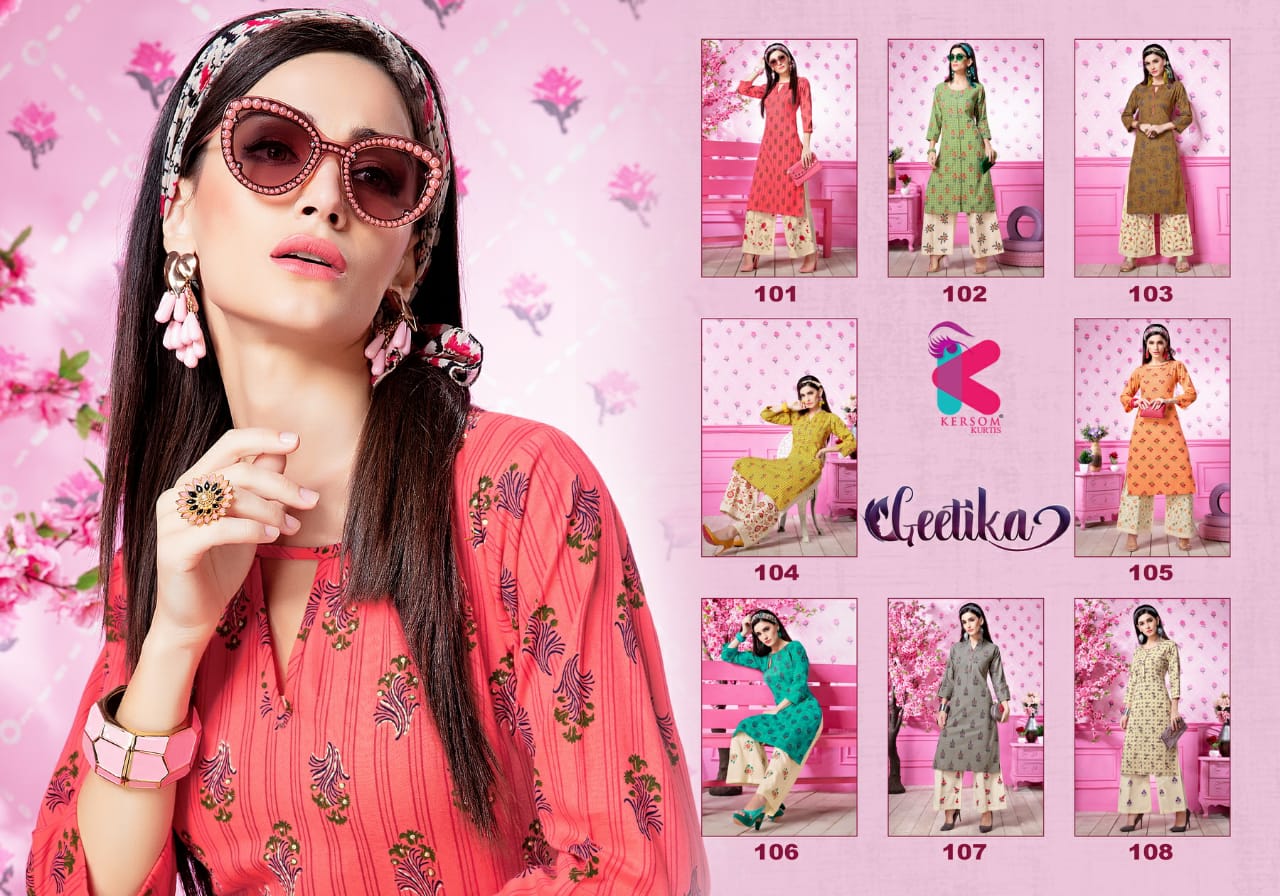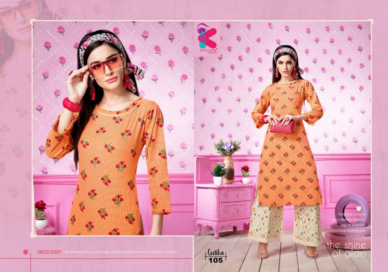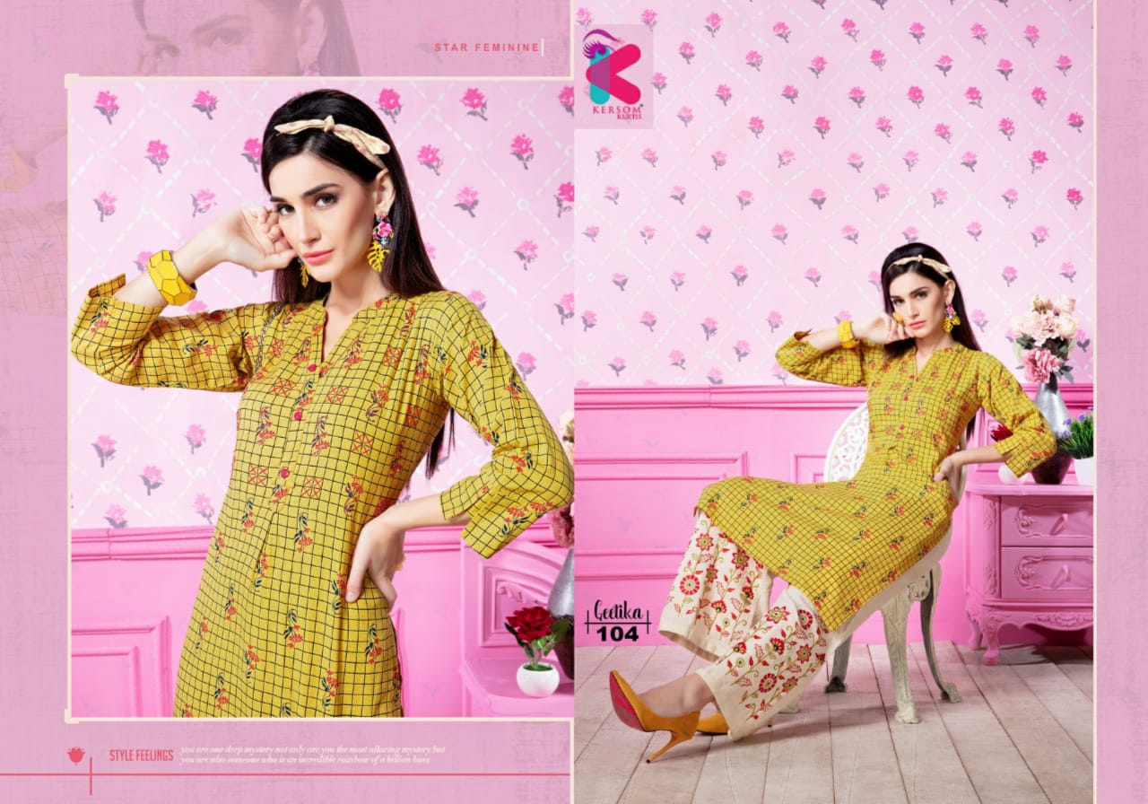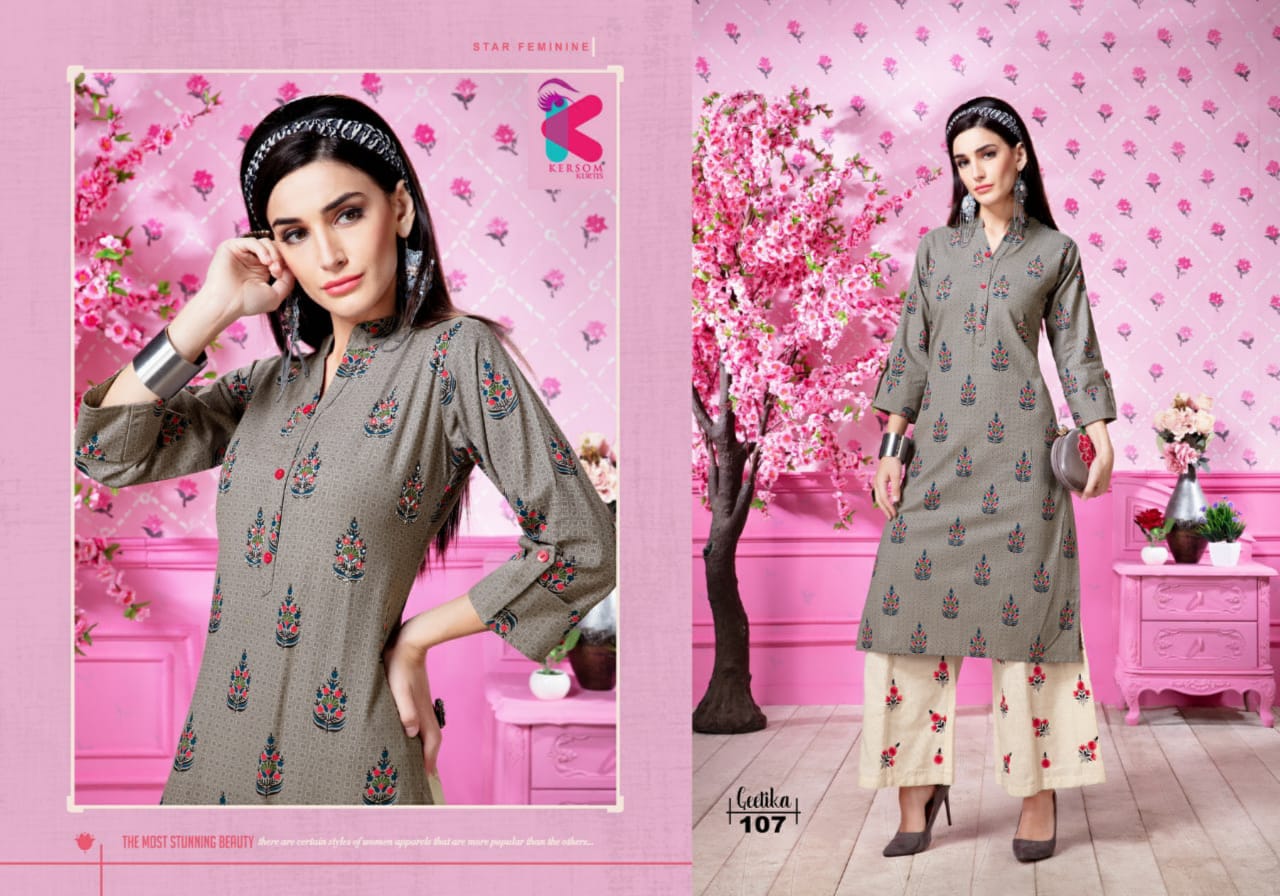Kersom Present Geetika Linen Cotton Kurti With Plazzo Catlog Collection In India