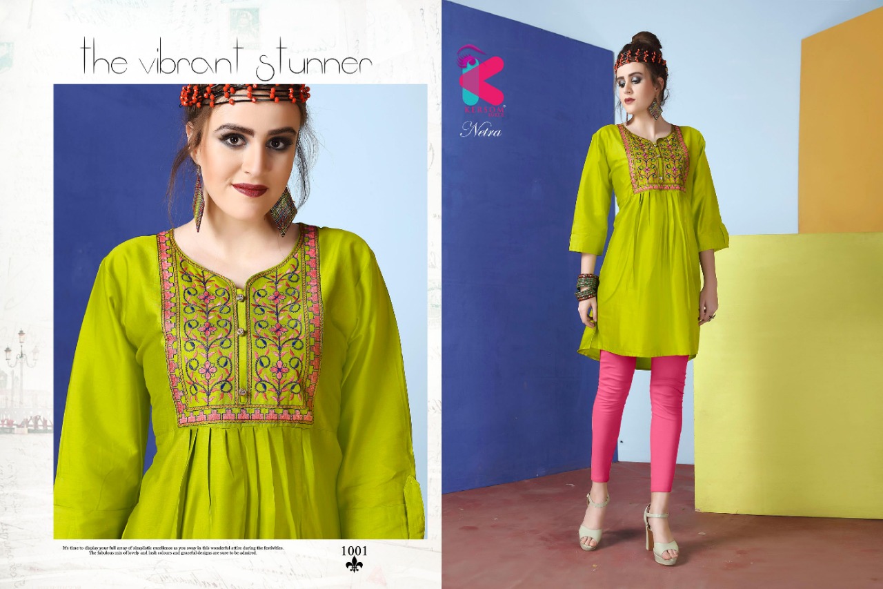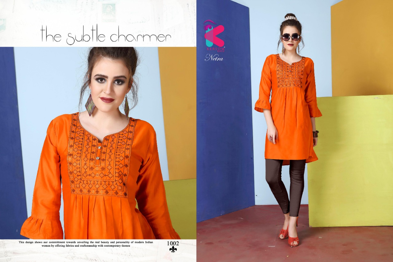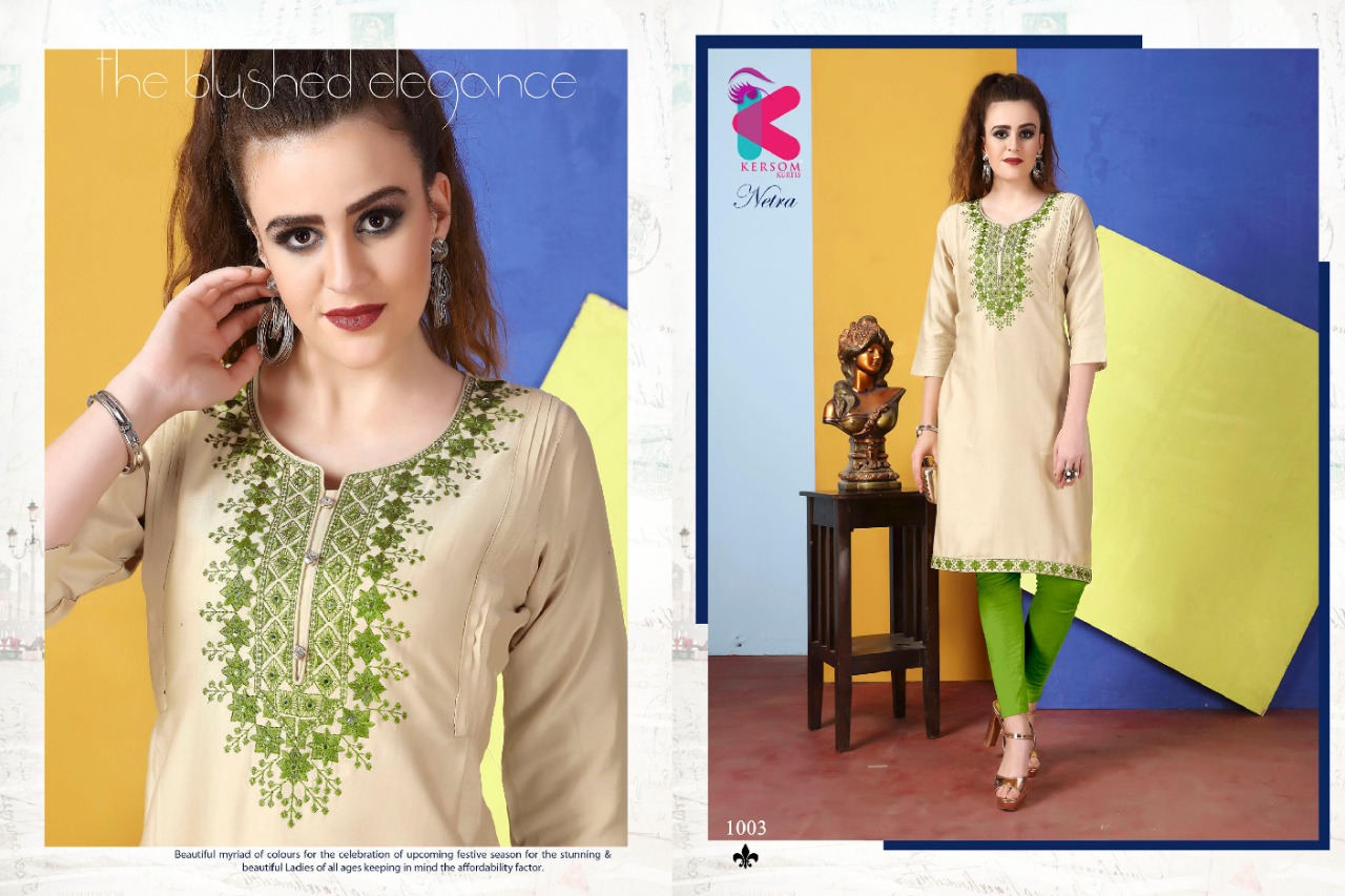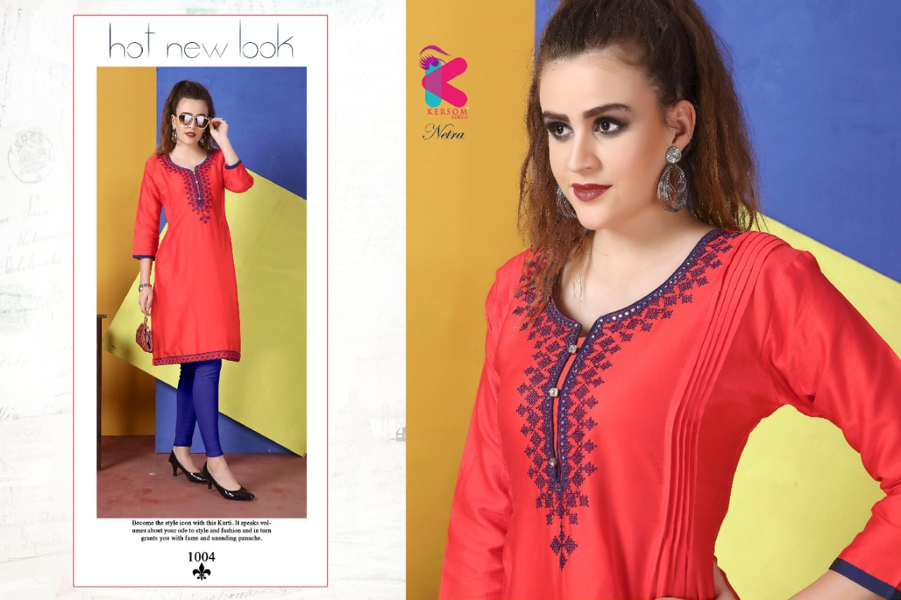 Kersom Present Netra Jam Satin Stylish Kurti Wholesal Rate In Surat