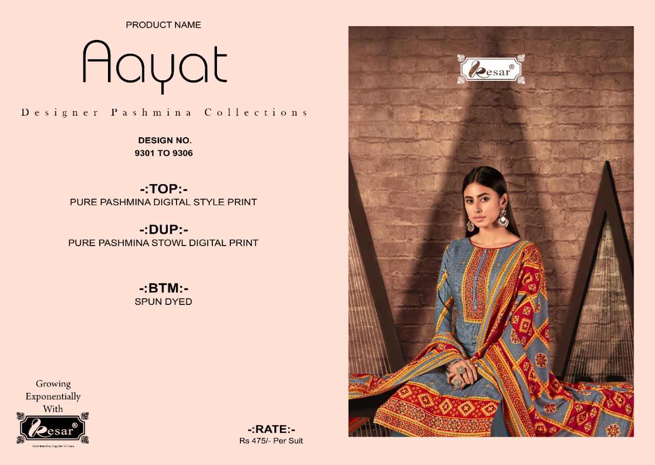 Presents 👗 AAYAT👗 * 6️⃣Blossom Dresses* Fabric Details:- ⭕ Top:- Pure pashmina DOBBY Digital Print * *Cut-2.50mtr ⭕ Bottom:-Pure SPAN Cut:- 3 mtr ⭕ Dupatta:- PURE PASHMINA STALL DIGITAL PRINT WITH 2 SIDE PIKU DUPATA 👗 Dress :- 6️⃣ Pcs Set 💰 Rate:- 4️⃣7️⃣5️⃣+ 5⃣%GST PRIMIUM WINTER CATALOGUE COLLECTION |