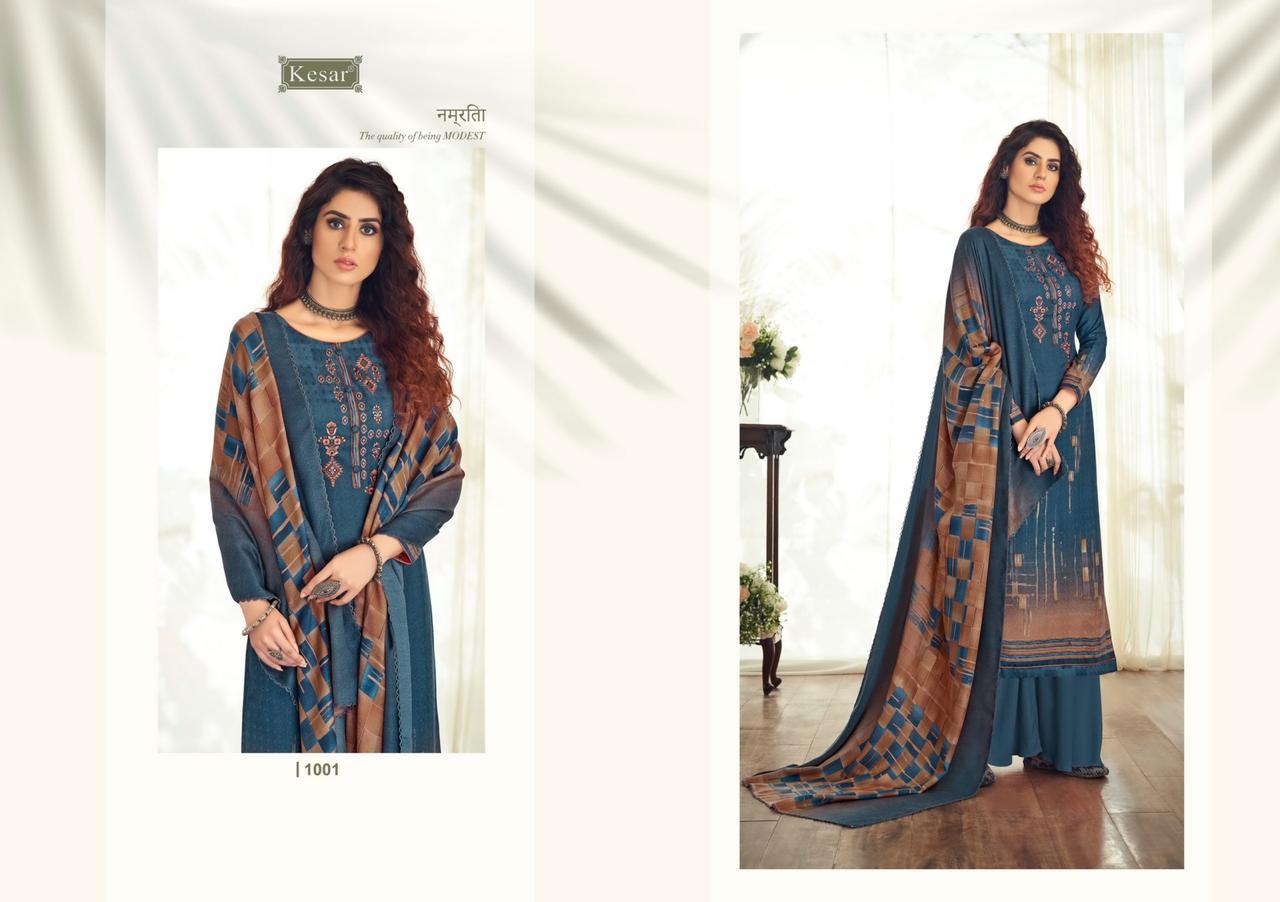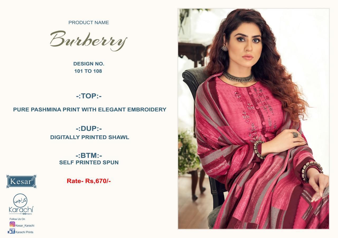 Kesar Karachi Burberry Pashmina Print Elegant Embroidery Work Suit Trader In Surat