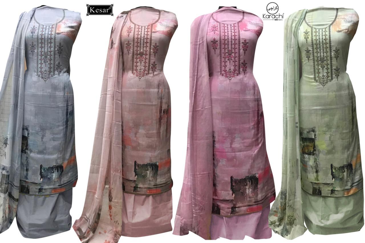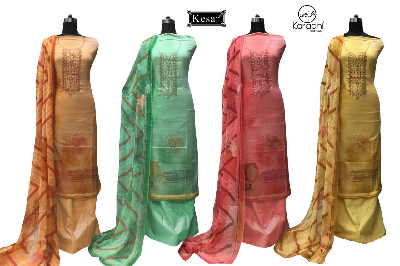 Kesar Karachi Prints Presents Latest Collection Launched on 17-03-2020. Presenting Beautiful collection of 8 PCS with Unstitched .