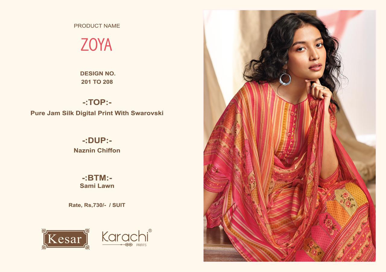 Kesar Karachi Prints Zoya Pure jam silk digital with sarwoski with naznin chiffon dupatta Price- 730/- Pc - 08 |