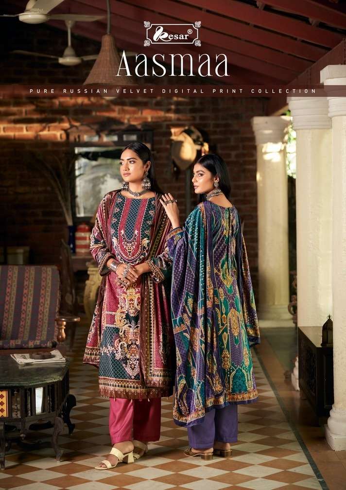 kesar present aasmaa velvet winter collection pakistani digital print salwar kameez collection