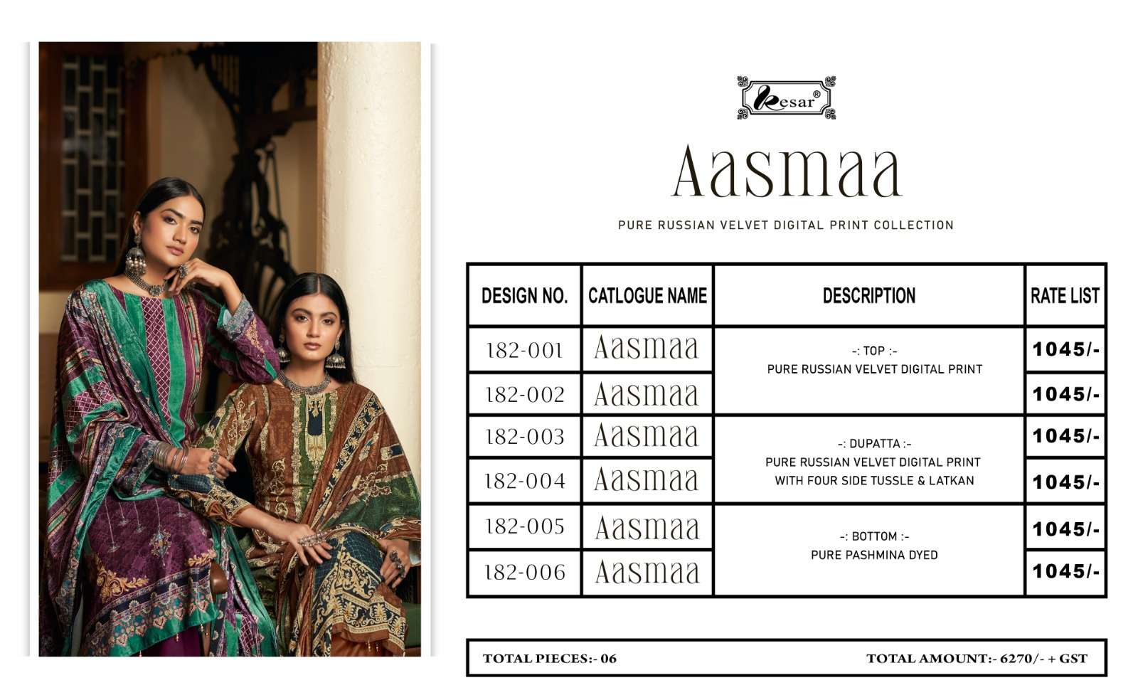🔥🔥🔥🔥 AASMAA.... 🔥🔥🔥🔥 🔴 Fabrics details🔴 👗*Top:- PURE RUSSIAN VELVET DIGITAL PRINT 🇮🇳*Dupatta: - PURE RUSSIAN VELVET DIGITAL PRINT WITH FOUR SIDE TUSSLE & LATKAN 👖*Bottom: -PURE PASHMINA DYED 💰*Pricex:- ₹1️⃣0️⃣4️⃣5️⃣/- 📦Designes:-6 Pcs Delivery soon 🔔 🔔 🔔 🔔 🔔 🔔 🔔 🔔 🔔 🔔 🔔 Confirm now |
