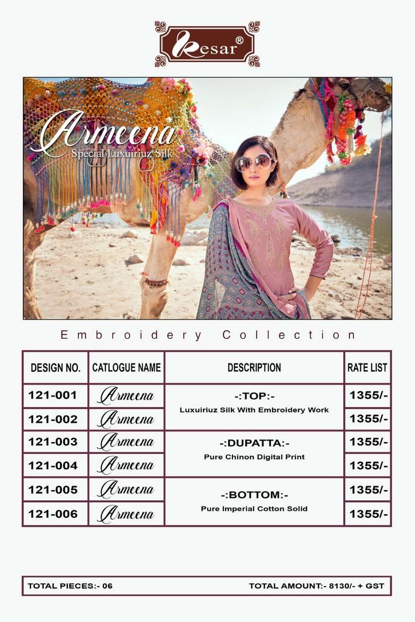 👗 ARMEENA👗 Fabric Details:- ⭕ *Top:-LUXUIRIUZ SILK WITH EMBROIDERY WORK ⭕ *Bottom:-PURE IMPERIAL COTTON ⭕ Dupatta:-PURE CHINON DIGITAL PRINT 👗 Dress :- 6️⃣ Pcs Set |