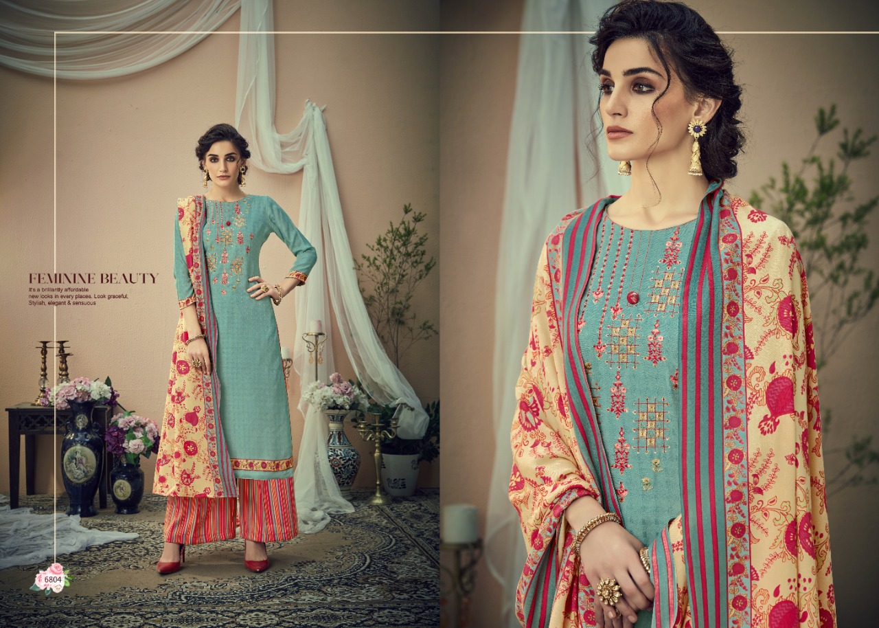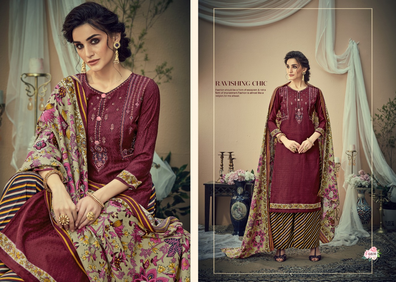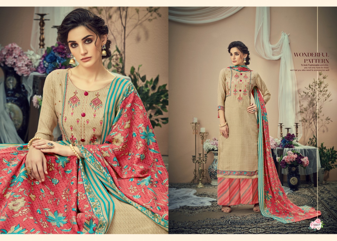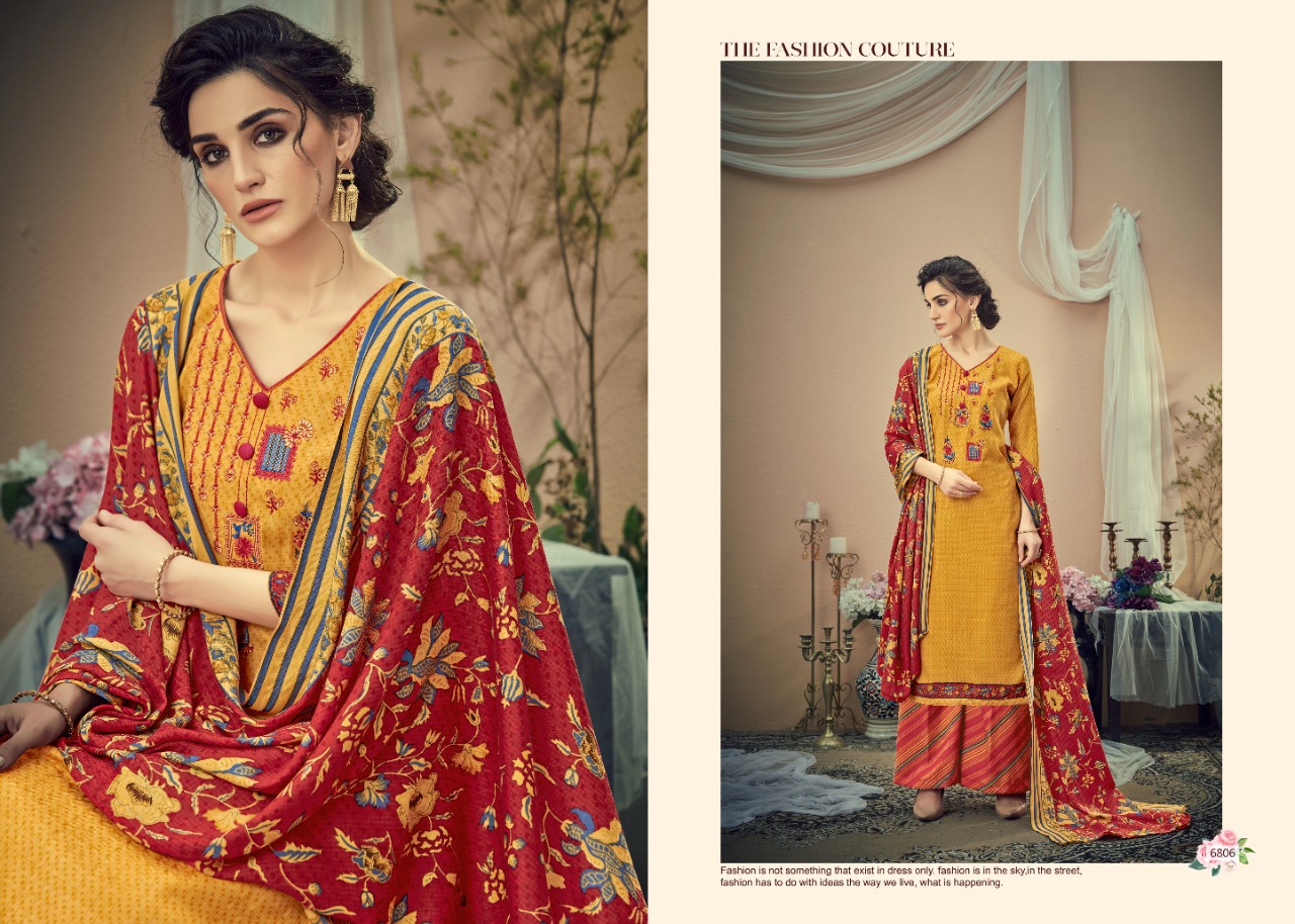 Woolen Suit* Presents SOFIYA ELEGANT EMBROIDERY SPECIAL 8 Blossom Dresses Fabric Details:- â• Top:- Pure pashmina pattern Digital STYAL Print WITH ELEGANT EMBROIDERY Cut-2.50mtr â• Bottom:- PURE PASHMINA SPAN LINING Cut:- 3 mtr â• Dupatta:- PASMINA I BOLL STTAL DIGITAL PRINT WITH 2 SIDE PIKU cut 2.50 mtr Dress :- 8⃣ Pcs Set Rate:- 6⃣3⃣5⃣ + 5⃣%GST PRIMIUM WINTER CATALOGUE COLLECTION |