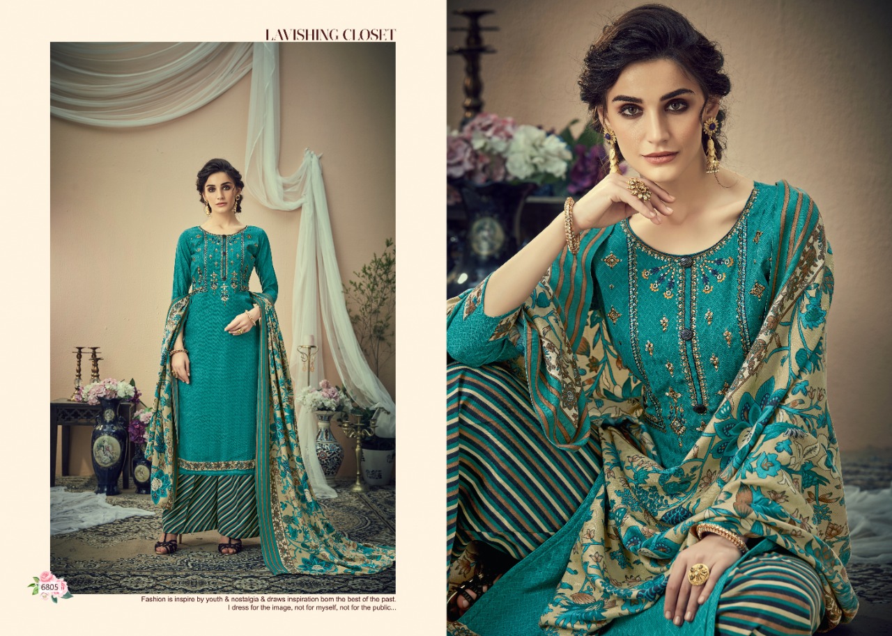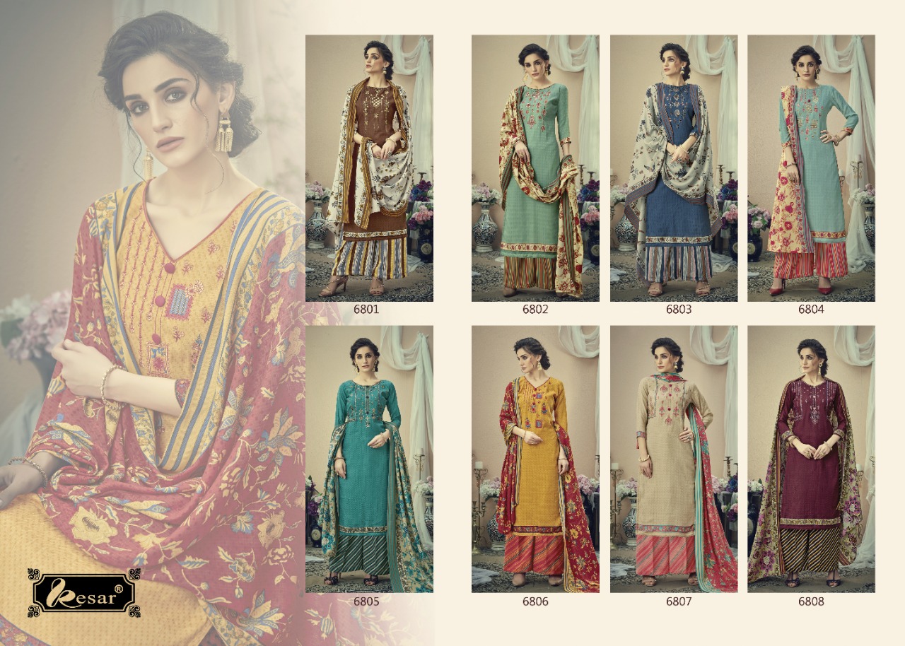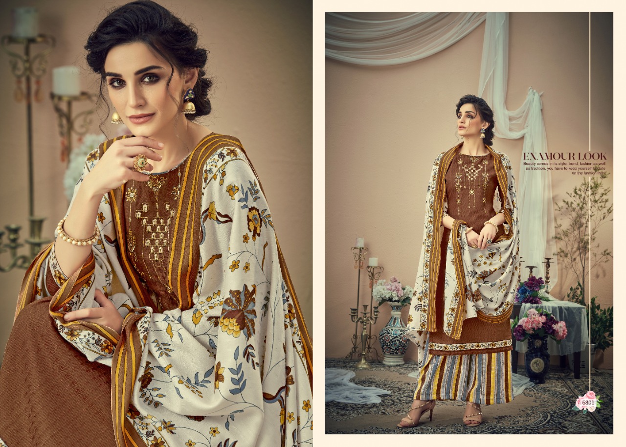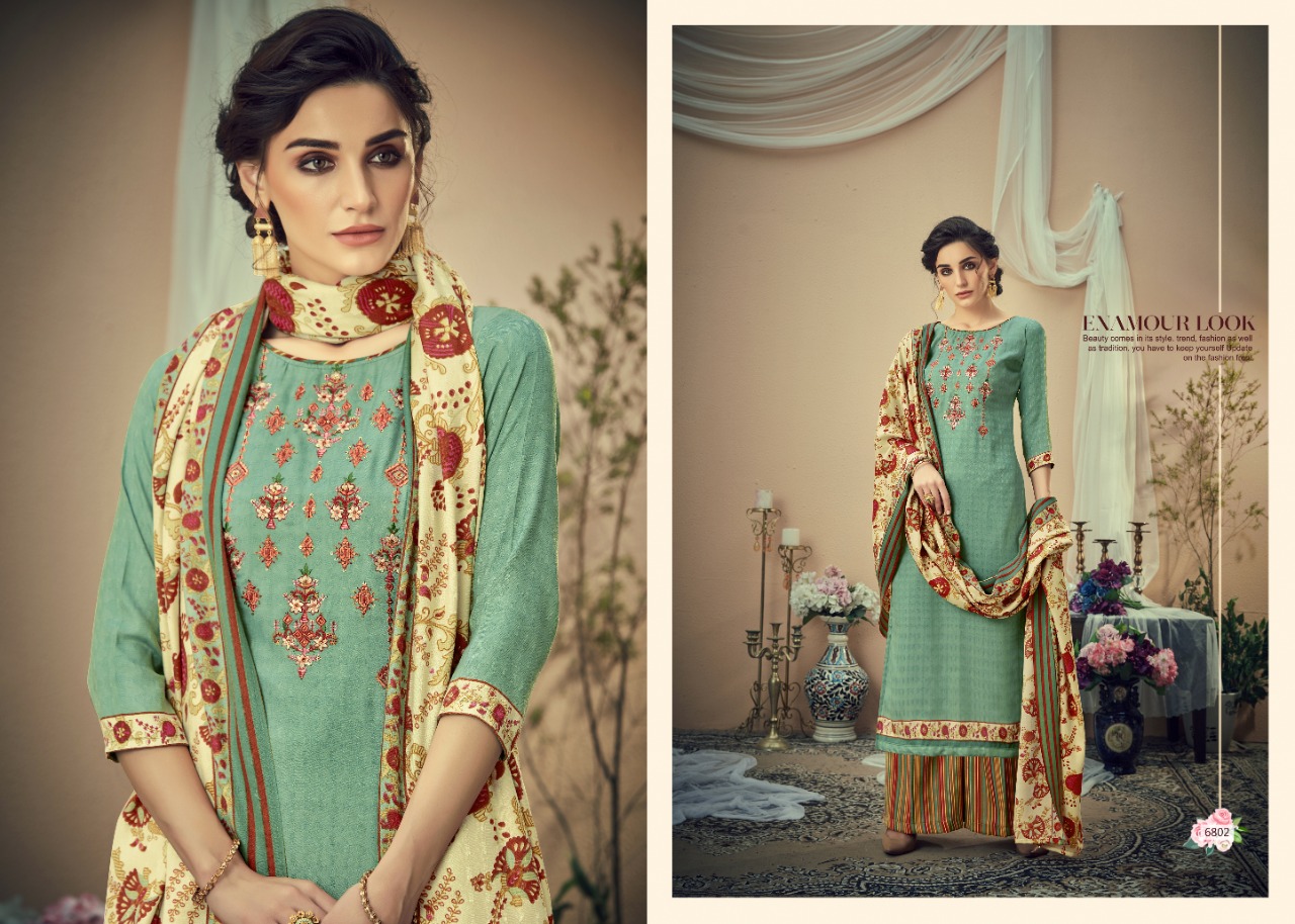 Woolen Suit* Presents SOFIYA ELEGANT EMBROIDERY SPECIAL 8 Blossom Dresses Fabric Details:- â• Top:- Pure pashmina pattern Digital STYAL Print WITH ELEGANT EMBROIDERY Cut-2.50mtr â• Bottom:- PURE PASHMINA SPAN LINING Cut:- 3 mtr â• Dupatta:- PASMINA I BOLL STTAL DIGITAL PRINT WITH 2 SIDE PIKU cut 2.50 mtr Dress :- 8⃣ Pcs Set Rate:- 6⃣3⃣5⃣ + 5⃣%GST PRIMIUM WINTER CATALOGUE COLLECTION |