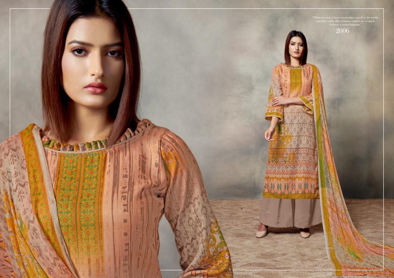 Woolen Suit* Presents ZOYA SPECIAL DIGITAL PRINT 8 Blossom Dresses Fabric Details:- â• Top:- Pure pashmina DOBBY Digital STYAL Print Cut-2.50mtr â• Bottom:- PURE PASHMINA Cut:- 3 mtr â• Dupatta:- PURE JARMAN DIGITAL PRINT WITH 2 SIDE PIKU DUPATA Dress :- 8⃣ Pcs Set Rate:- 6⃣8⃣5⃣ + 5⃣%GST PRIMIUM WINTER CATALOGUE COLLECTION |