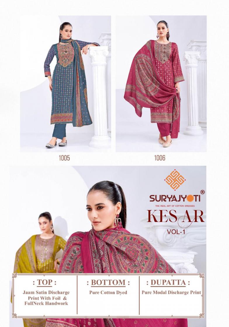 👫DEAR CUSTOMER👫 🙏WELCOME TO SURYAJYOTI 😍LAUNCHING OF SURYAJYOTI’S NEW FANCY PRINT CATALOG 📕CATALOGUE- KESAR VOL-1 👚TOP- JAAM SATIN DISCHARGE PRINT WITH FOIL AND FULL NECK HANDWORK 👖BOTTOM- PURE COTTON 🧣DUPATTA- PURE MODAL SILK DISCHARGE PRINT CUT- 👚2.50-👖2.50–🧣2.25 💸RATE- 861/- 💼PACKING- EXCLUSIVE POUCH PACK WITH BAG REMARK: BOOKING OPEN FOR LIMITED TIME ONLY Always with you...👍 |
