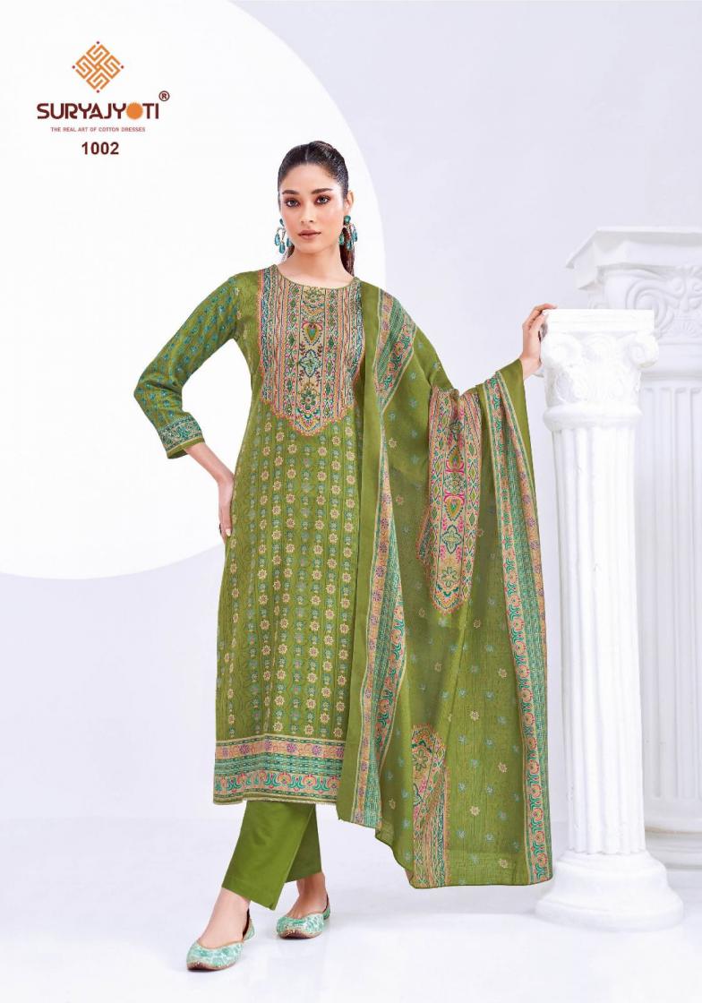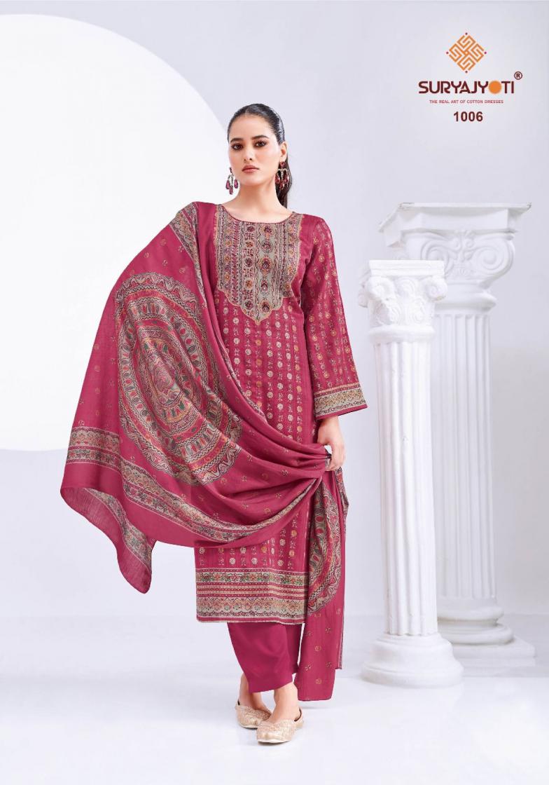 Suryajyoti Cotton Presents Latest Collection Launched on 19-08-2025. Presenting Beautiful collection of 6 PCS with Unstitched .