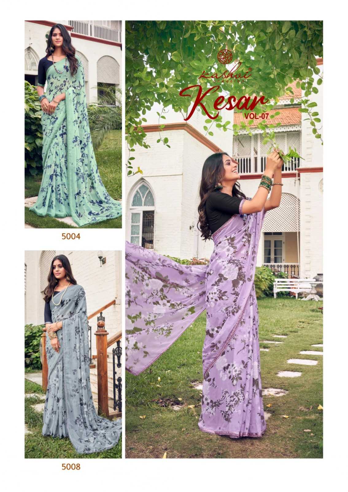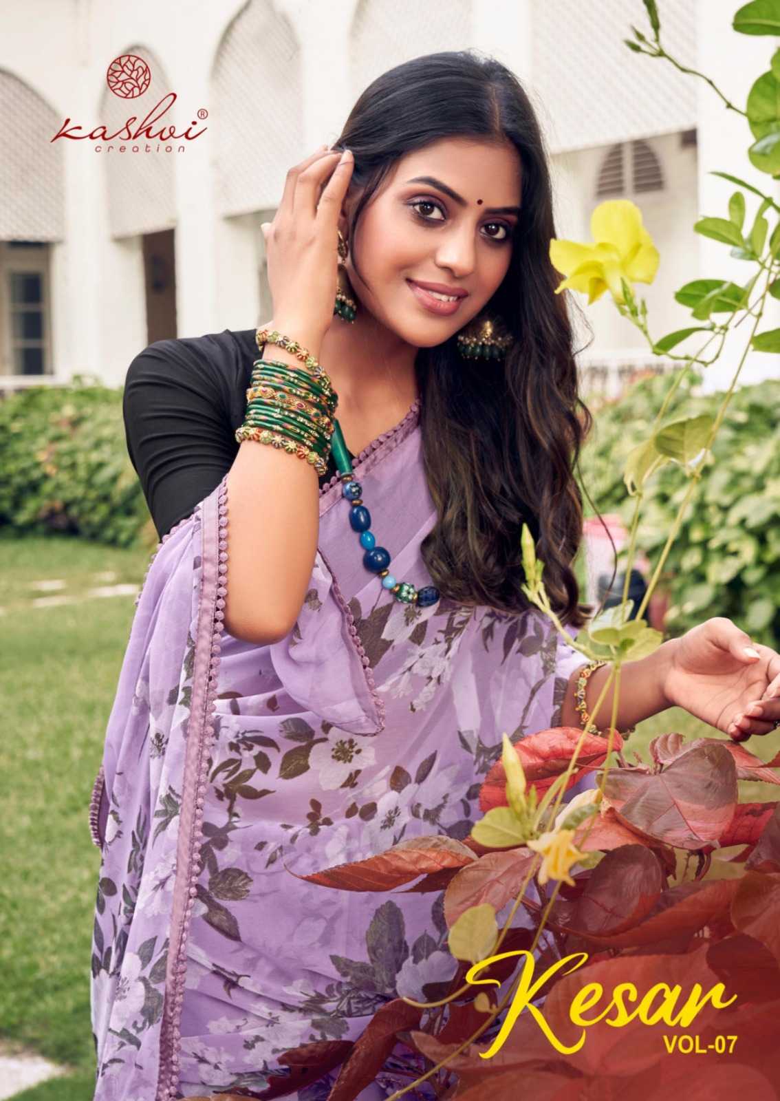 kesar vol 7 by kashvi creation adorable georgette sarees with fancy lace sarees