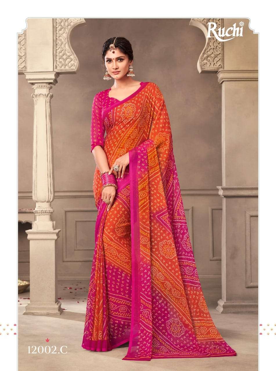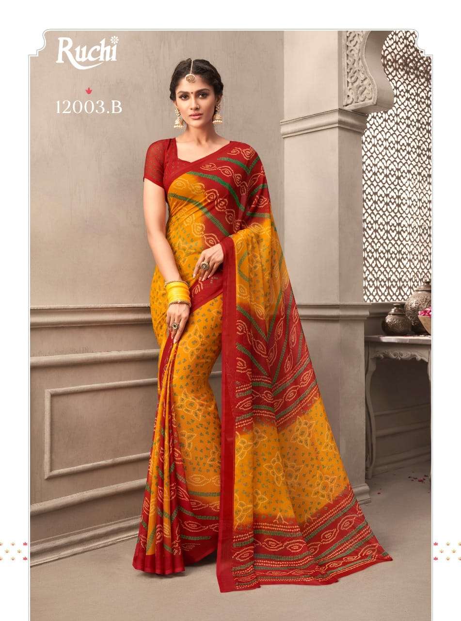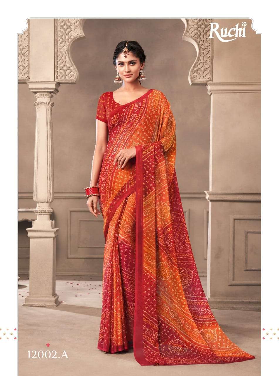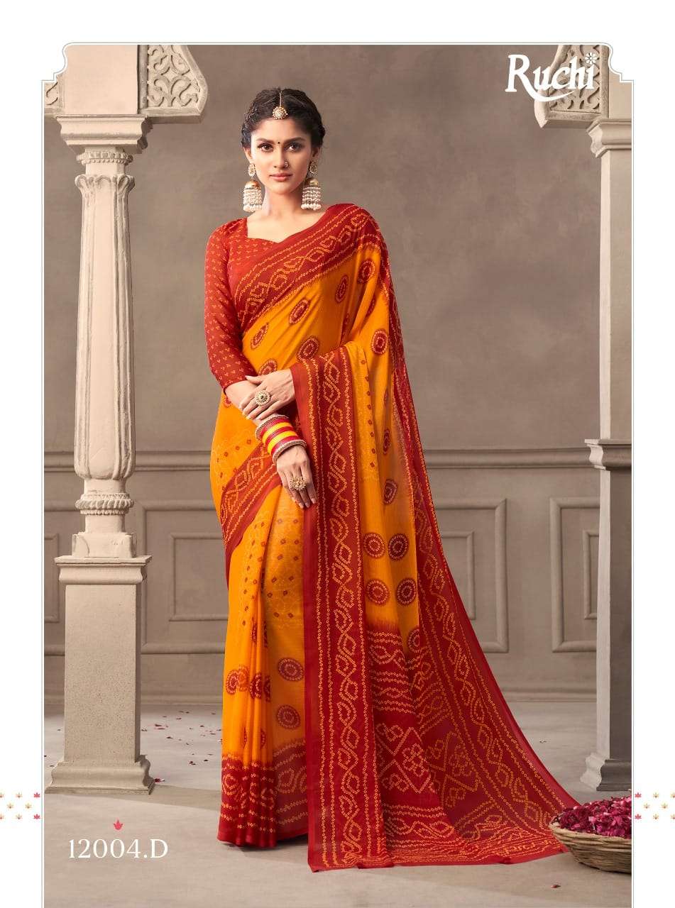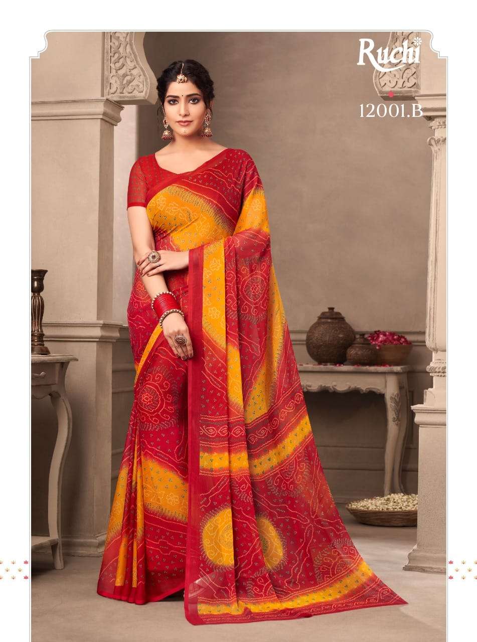 Kesariya Chiffon Vol 65 By Ruchi Bandhani Printed Saree