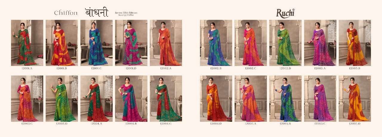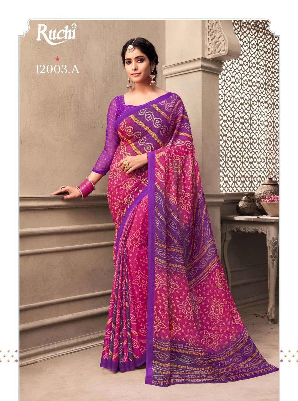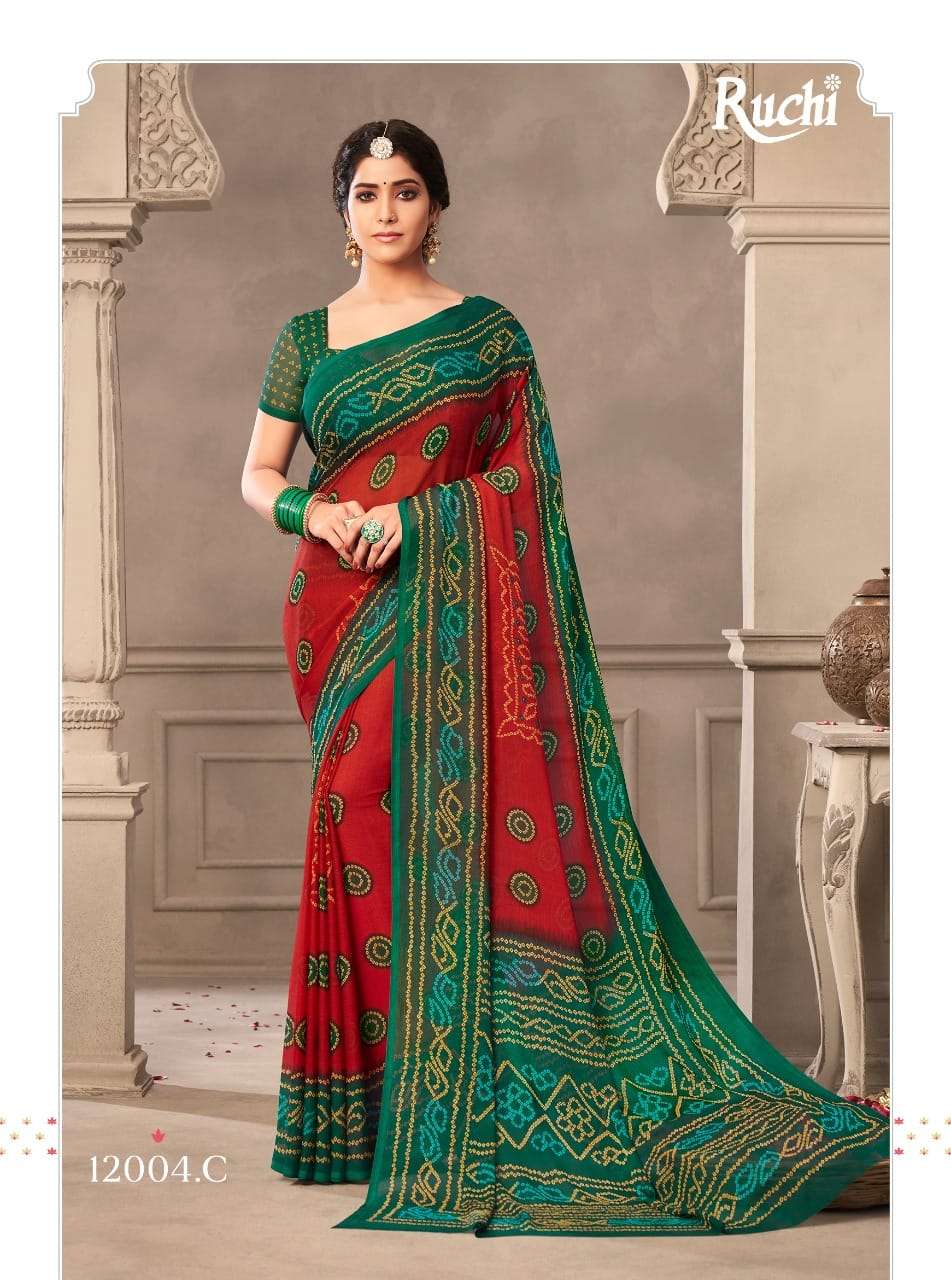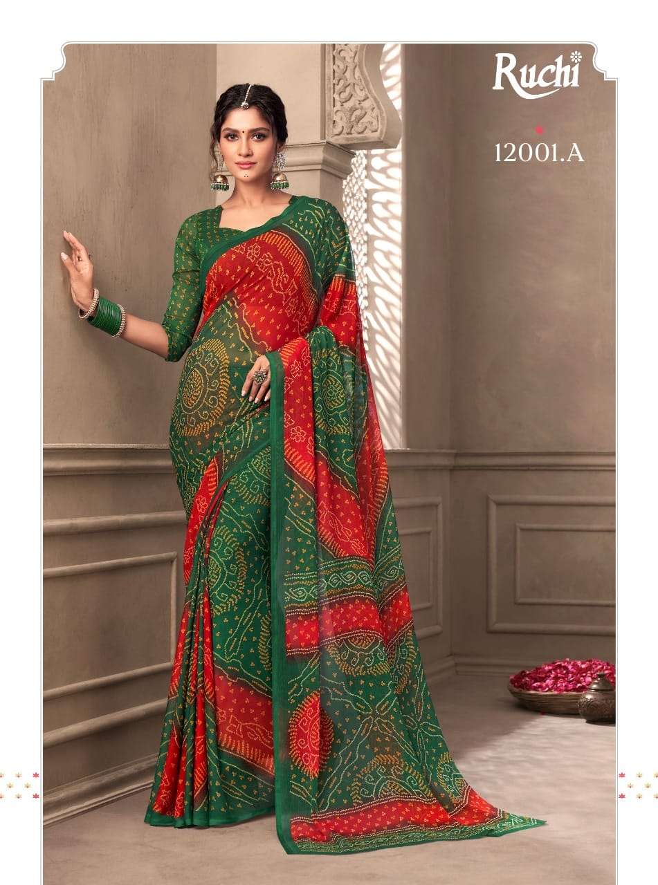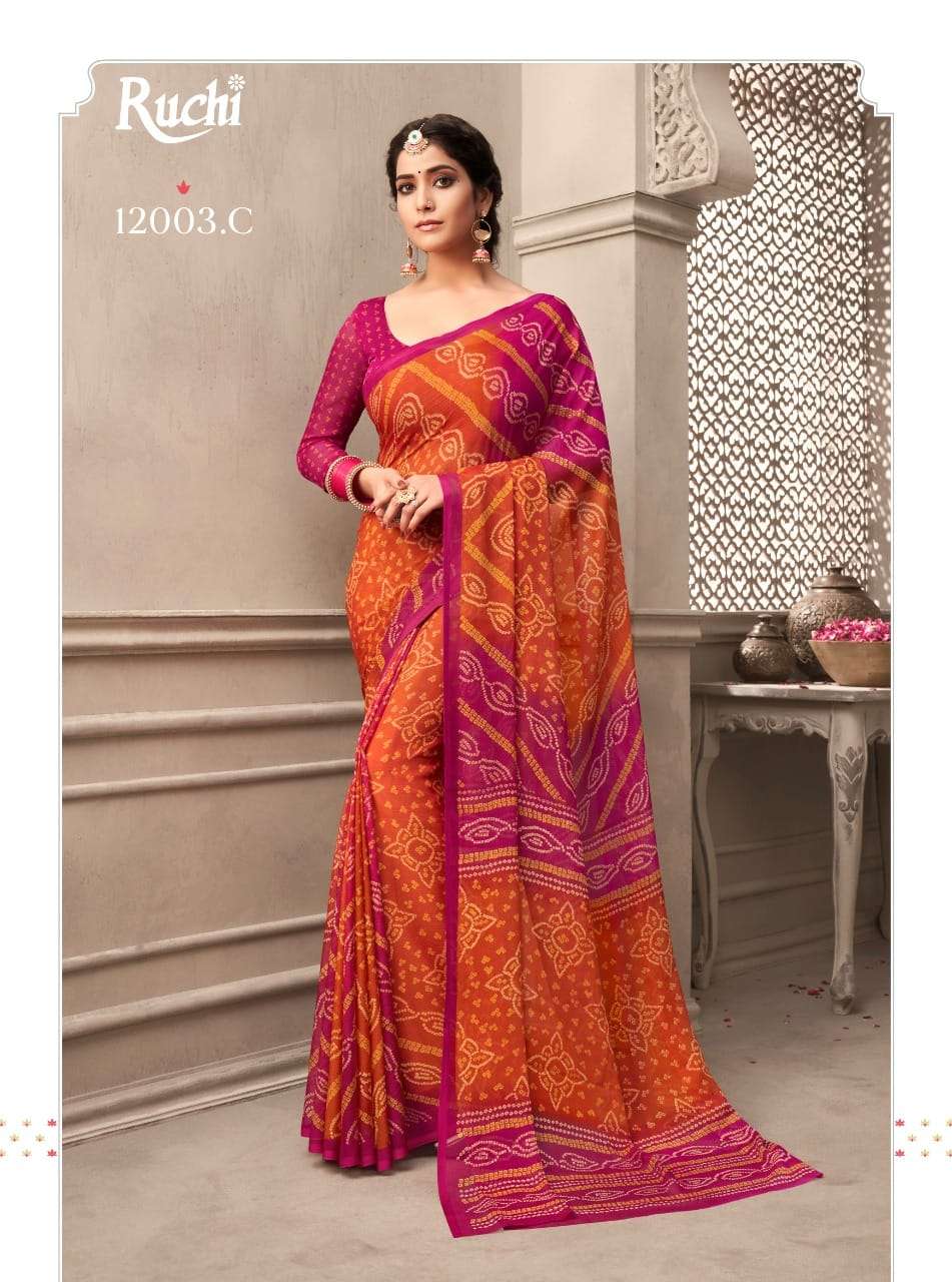 Kesariya Chiffon Vol 65 By Ruchi Bandhani Printed Saree