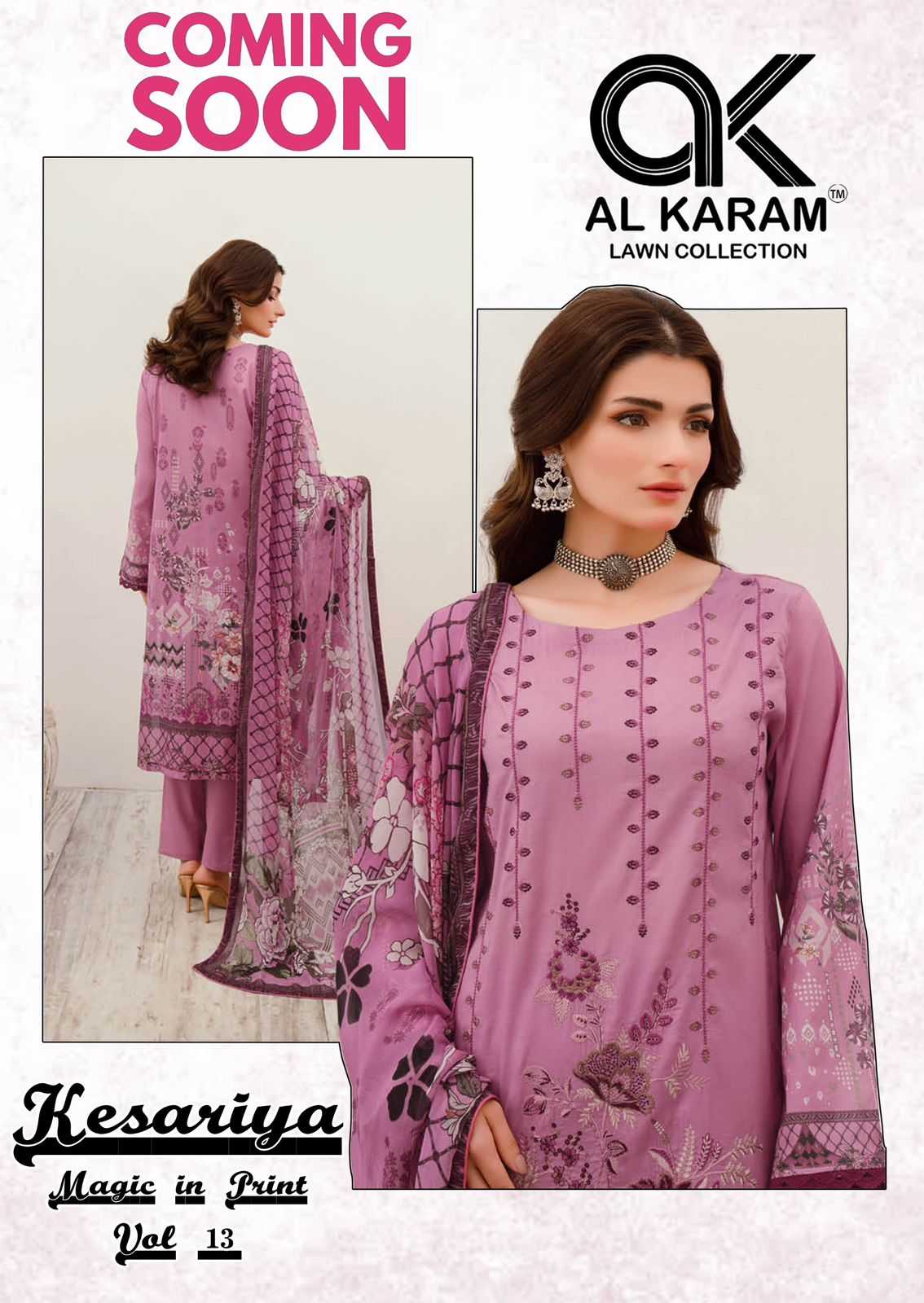 kesariya magic in print vol 13 by al karam cotton printed pakistani dress