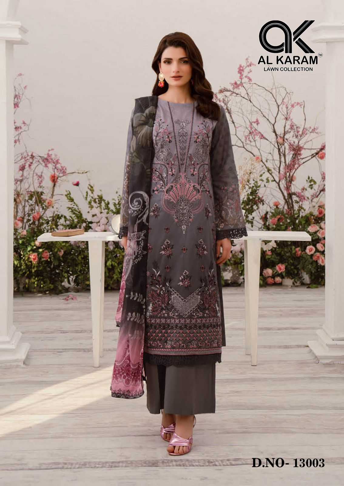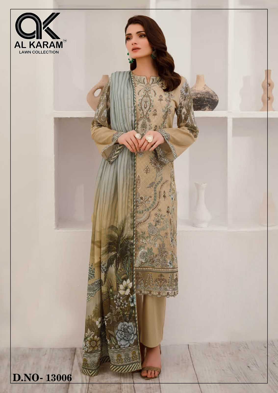 💐💐HERE IT COMES💐💐 ♥️YOUR FAVOURITE BRAND♥️ 🌹Al- karam VOL-13🌹 Pure cambric collection with mal mal dupatta 👗Top : Pure Cambric 120 gsm (cut:2.40mtr) 👖Bottom :Cotten cut:2 .00) 🧣Dupatta: Pure Cotton Mal Mal (cut 2.25 mtr) Designs : 06 With attractive pouch and bag 💼 packing RATE 400/- Booking Open Limited stock REGARDS AL KARAM LAWN COLLECTION |