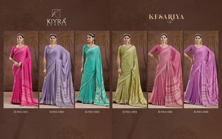 kesariya vol 1 by kiyra new trendy dull moss with mill jarii new design saree 2024