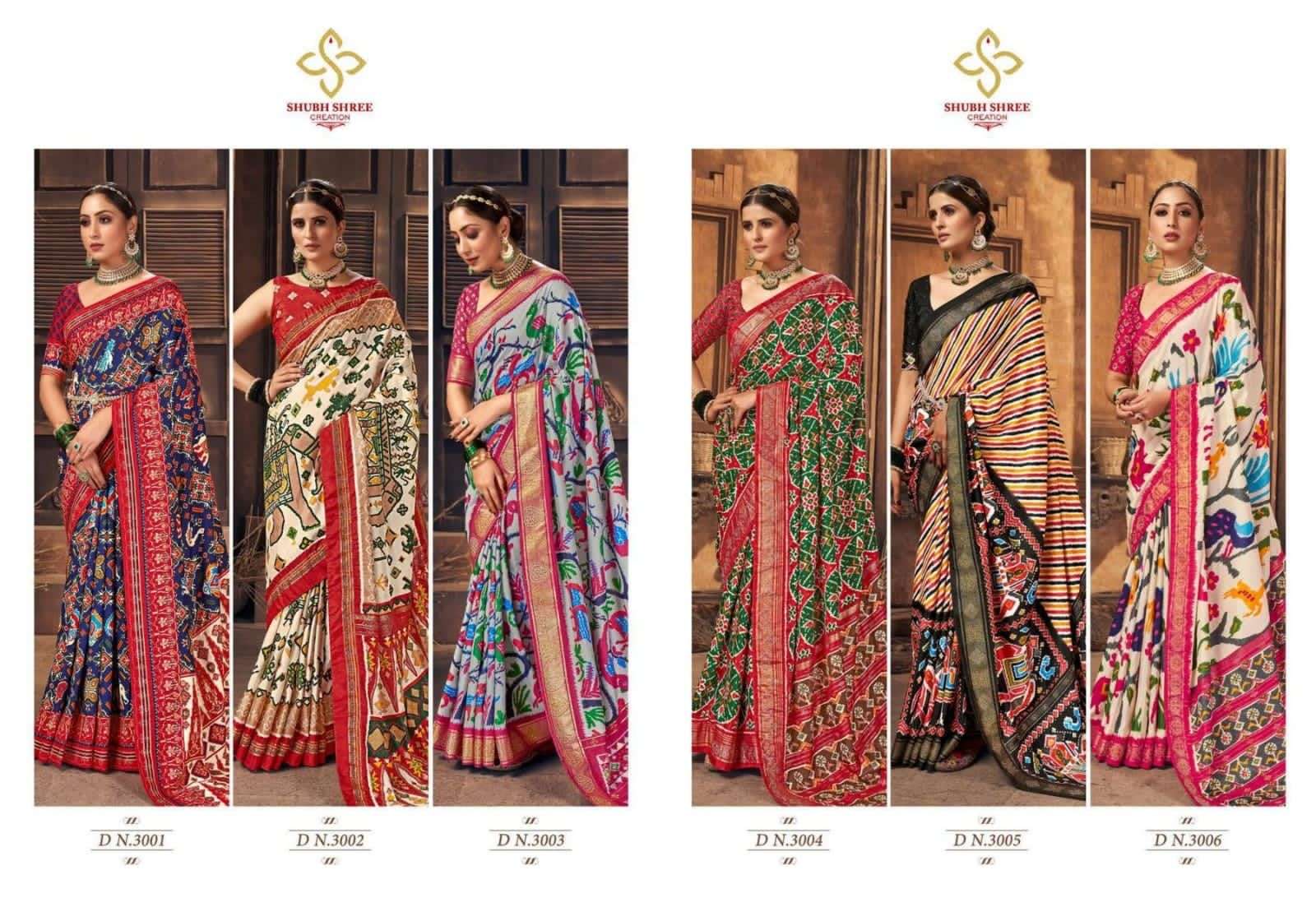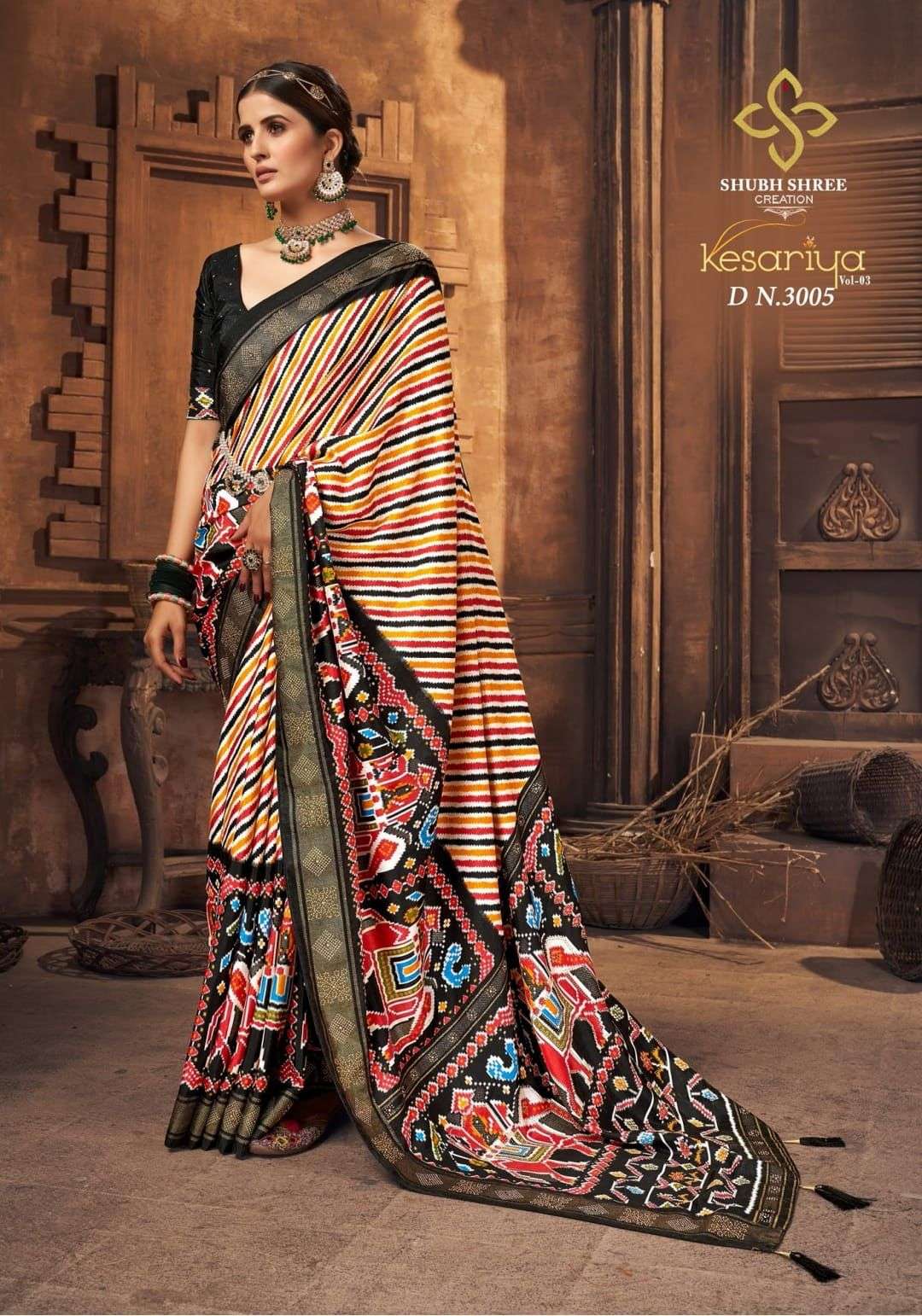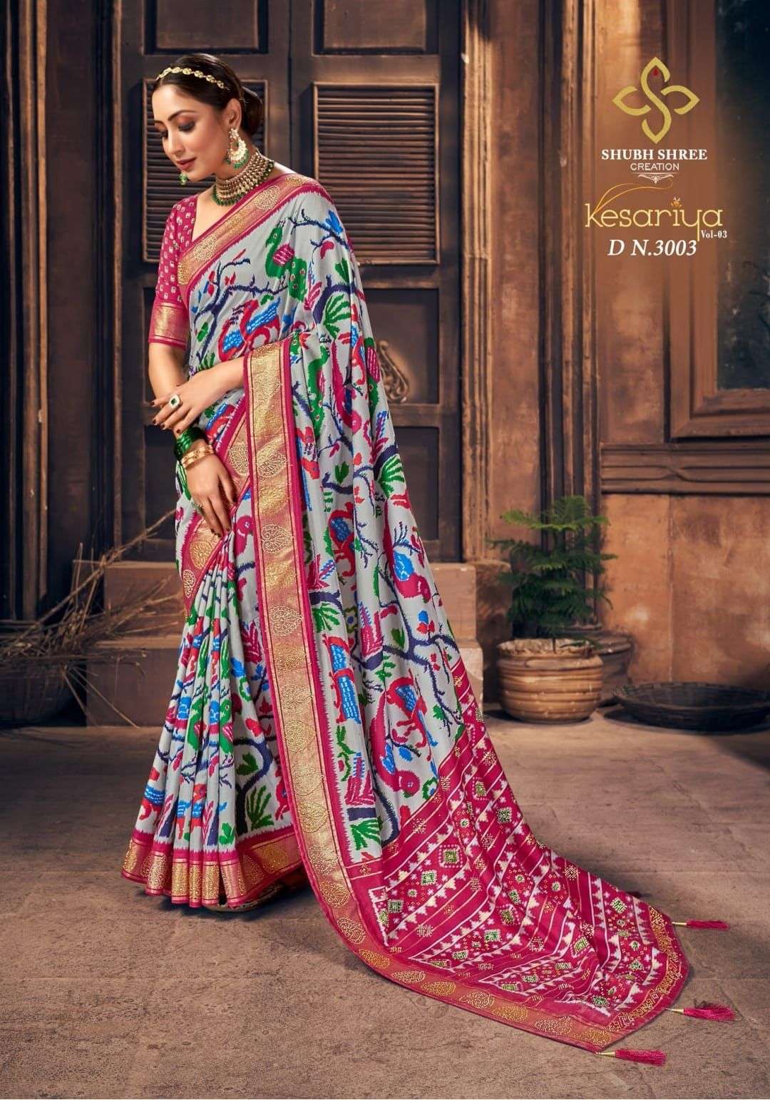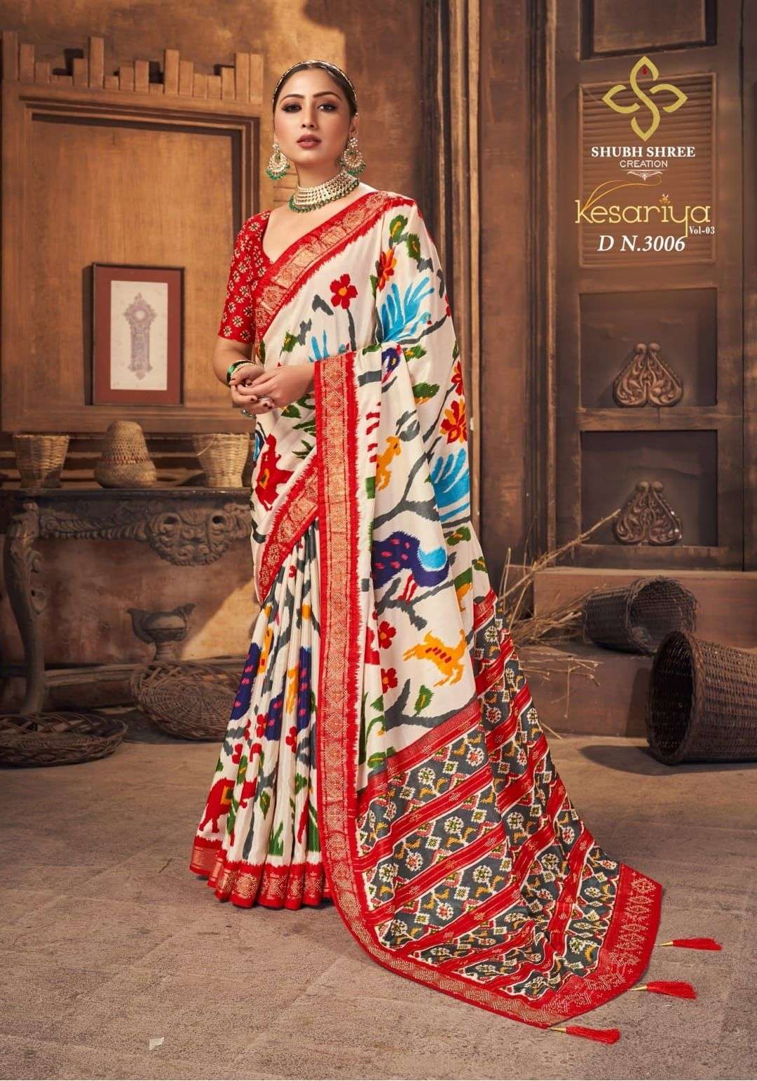 kesariya vol 3 by shubh shree soft printed patola sarees