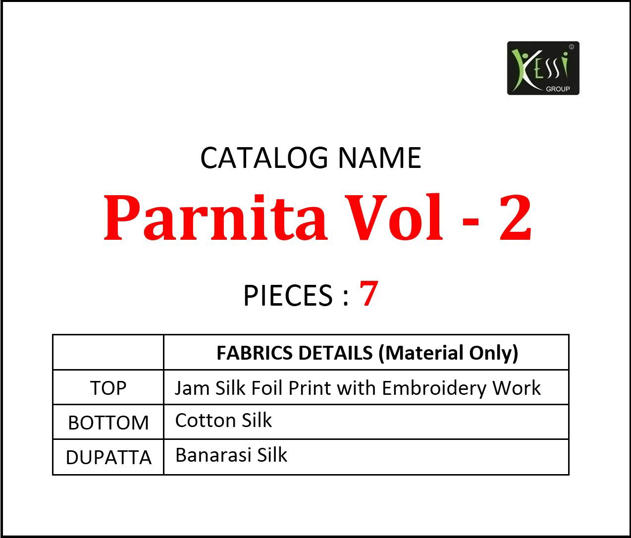 Kessi Fabrics Parnita Vol 2 Beautiful New Designs Embroidered Collection