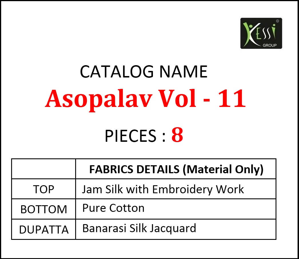 Kessi Present Asopalav Vol 11 Jam Silk Embroidery Work Indian Style Salwar Suit Wholesaler