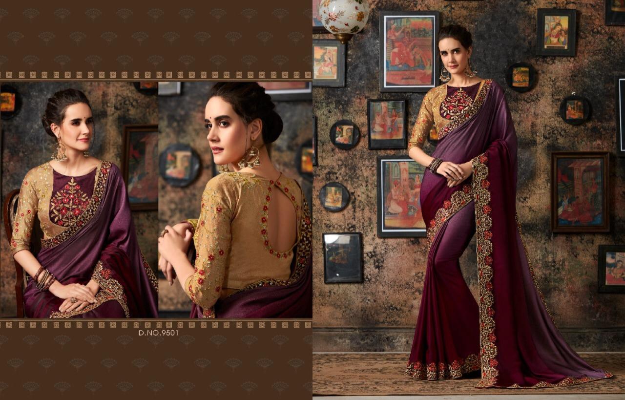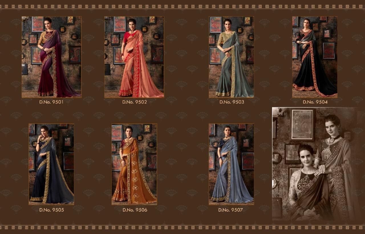 Brand - Kessi . Type - saree. Catlog Name - KIANA . Rate -1399 pe rpcs . Series -9501 to 9507. Set To Set . GST 5 Percent Extra . Delivery from tomorrow |
