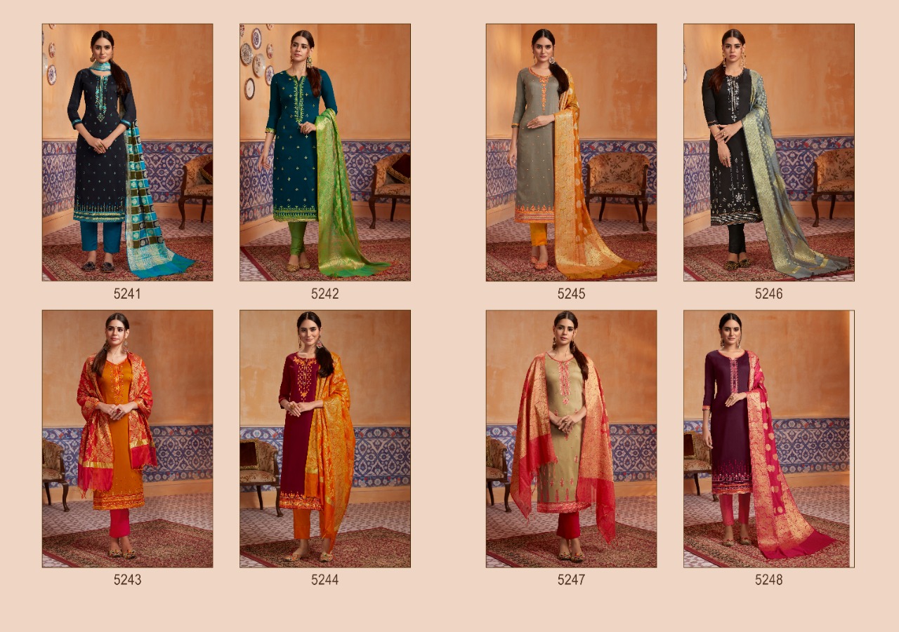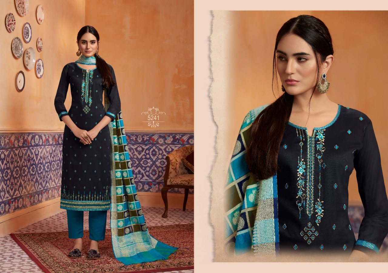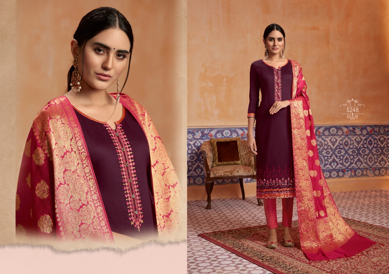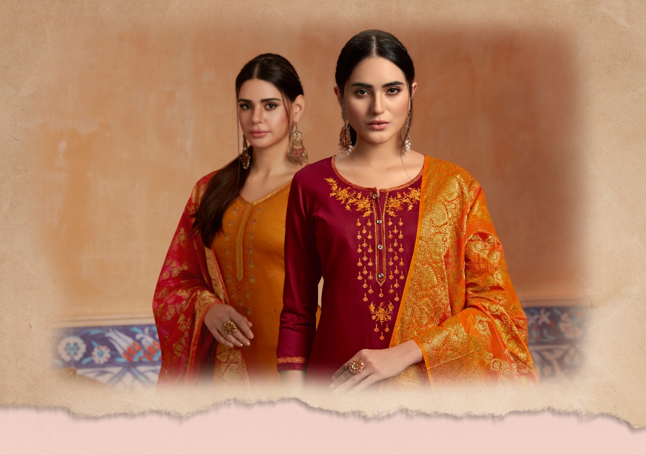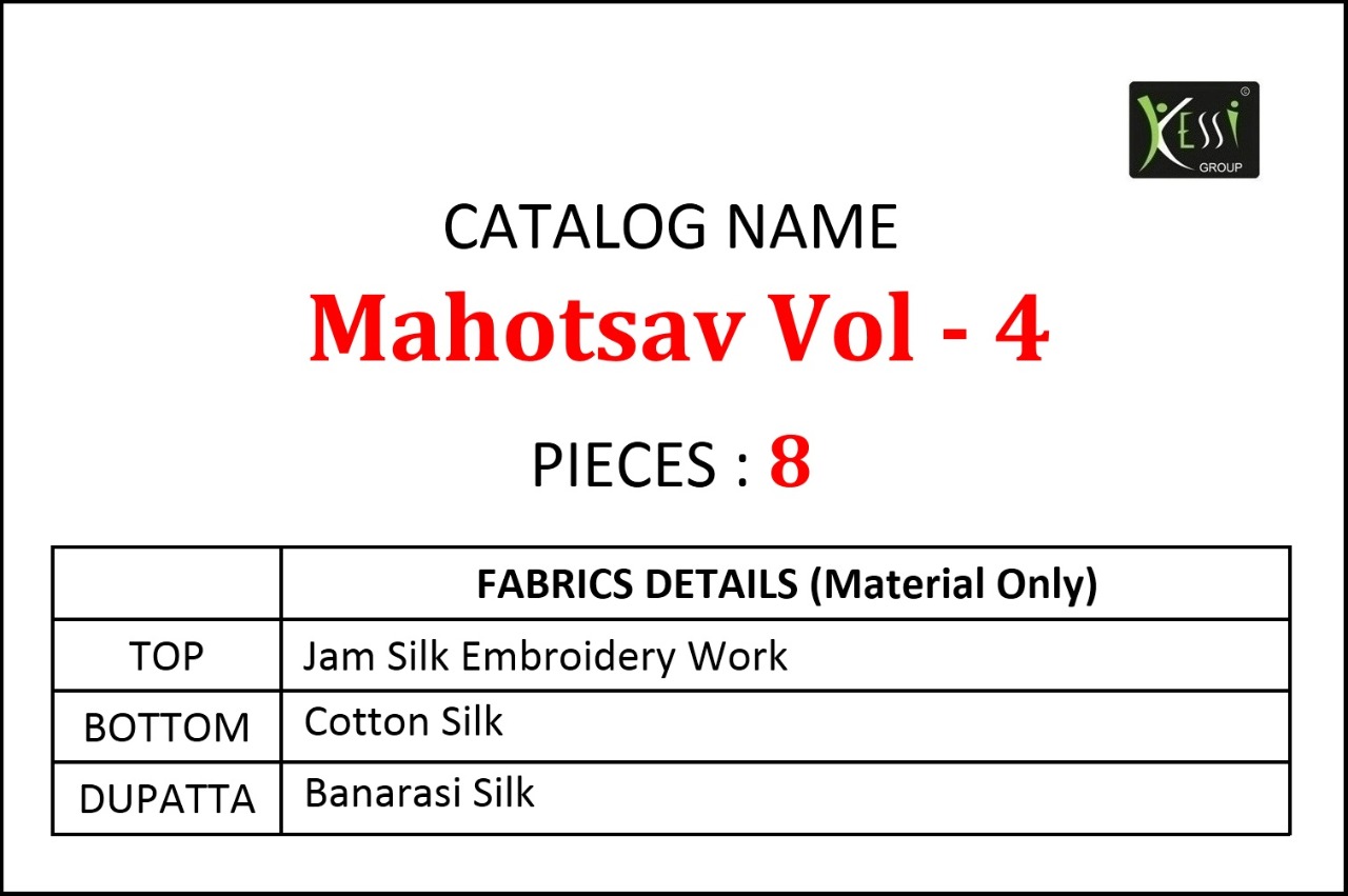 Kessi Present Mahotsav Vol 4 Jam Silk Embroidery Dress Materials With Banaras Dupatta