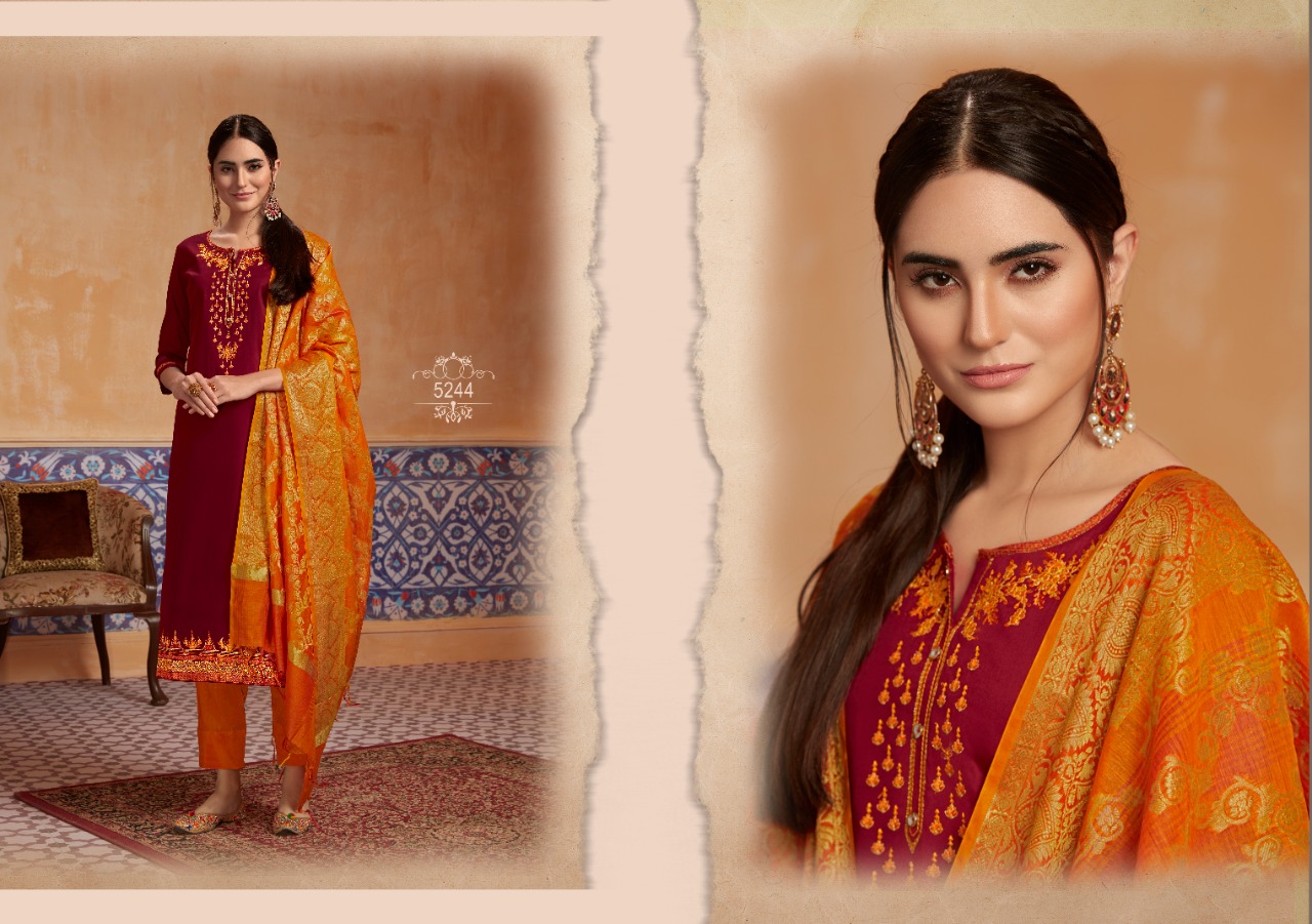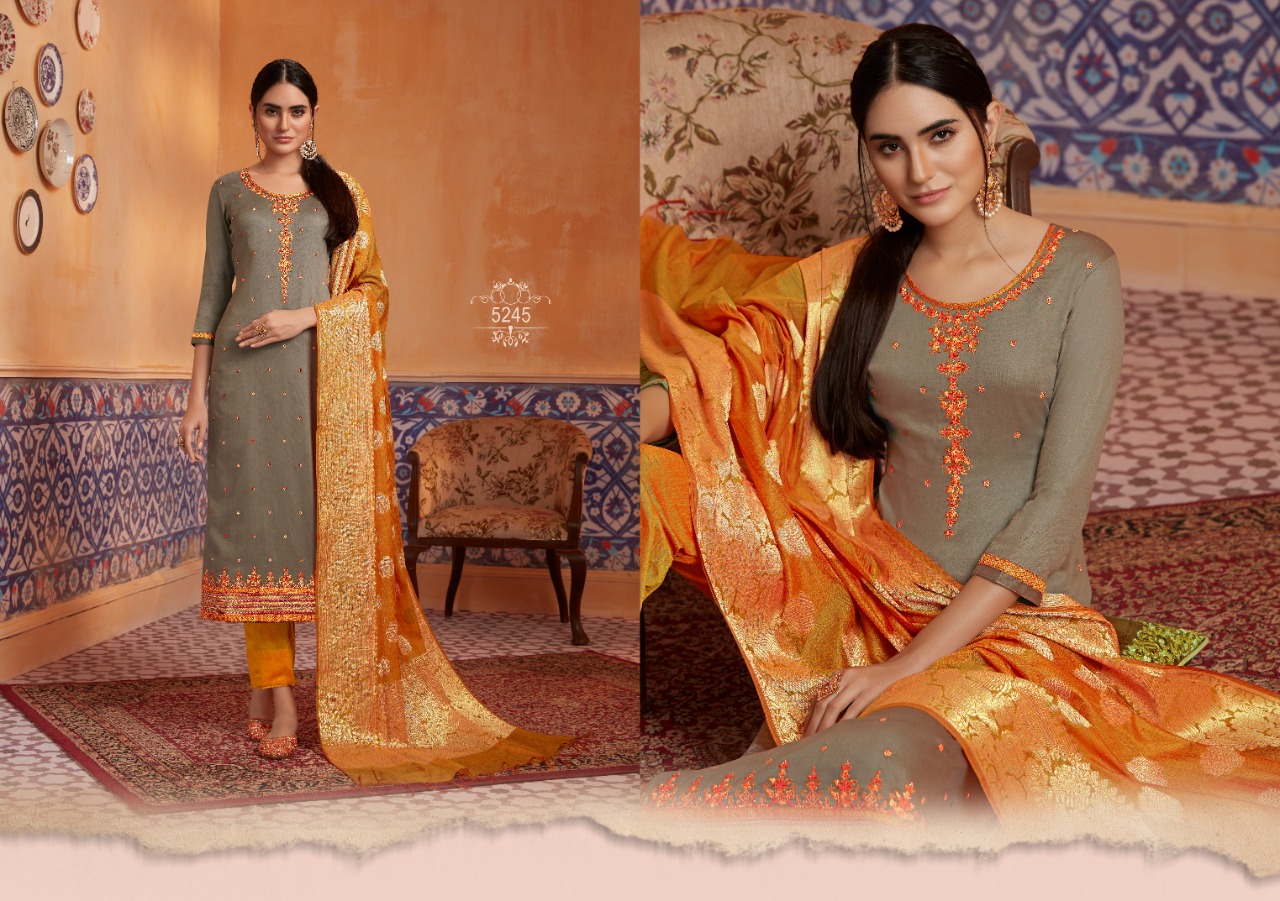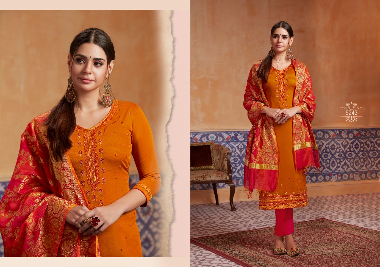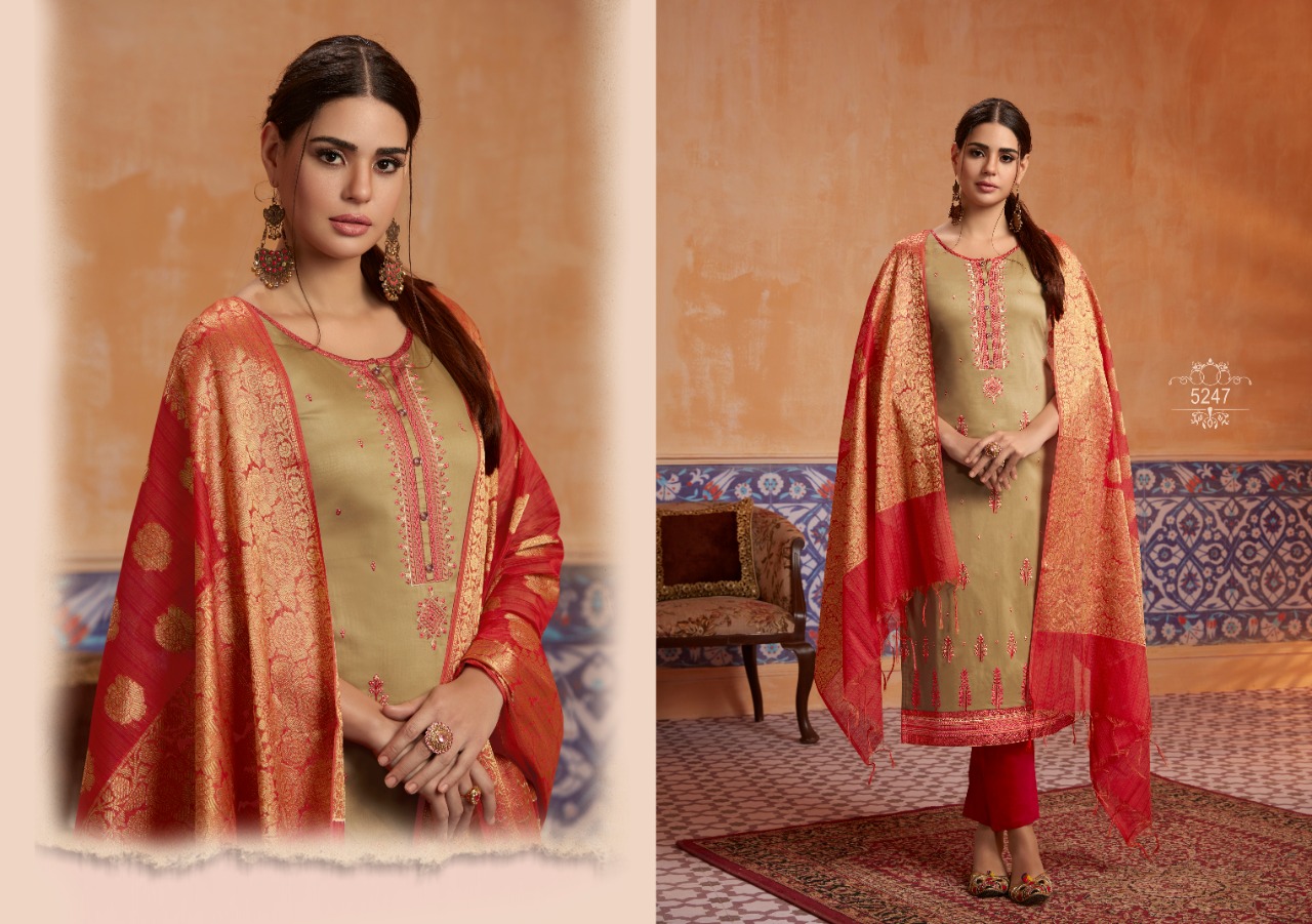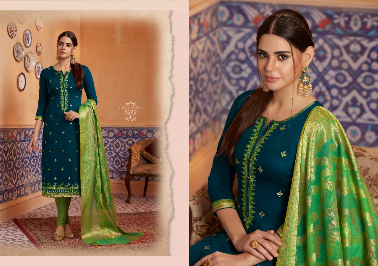 Kessi Present Mahotsav Vol 4 Jam Silk Embroidery Dress Materials With Banaras Dupatta
