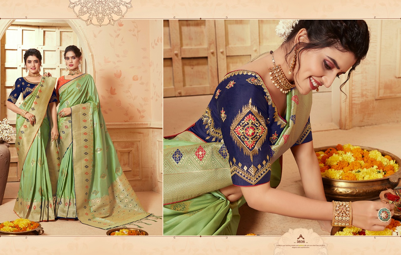 Kessi Present Saugat Silk Traditional Wear Heavy Look Double Blouse Saree Concept