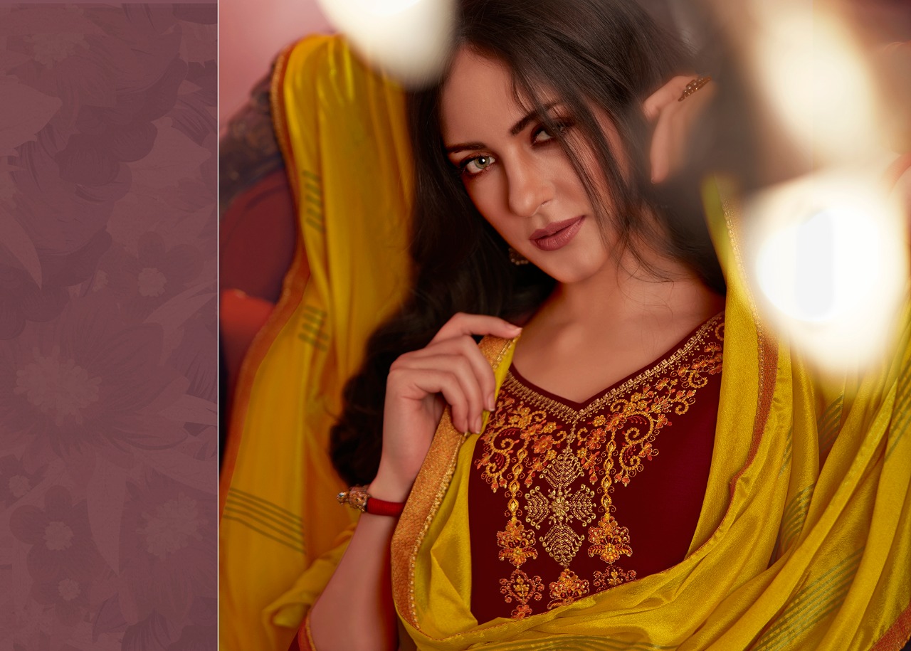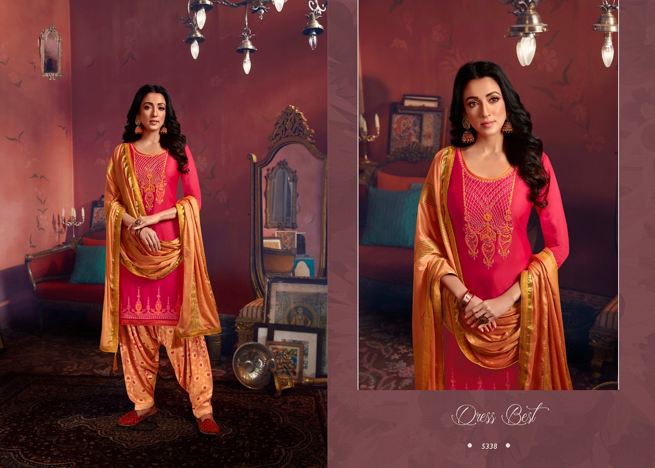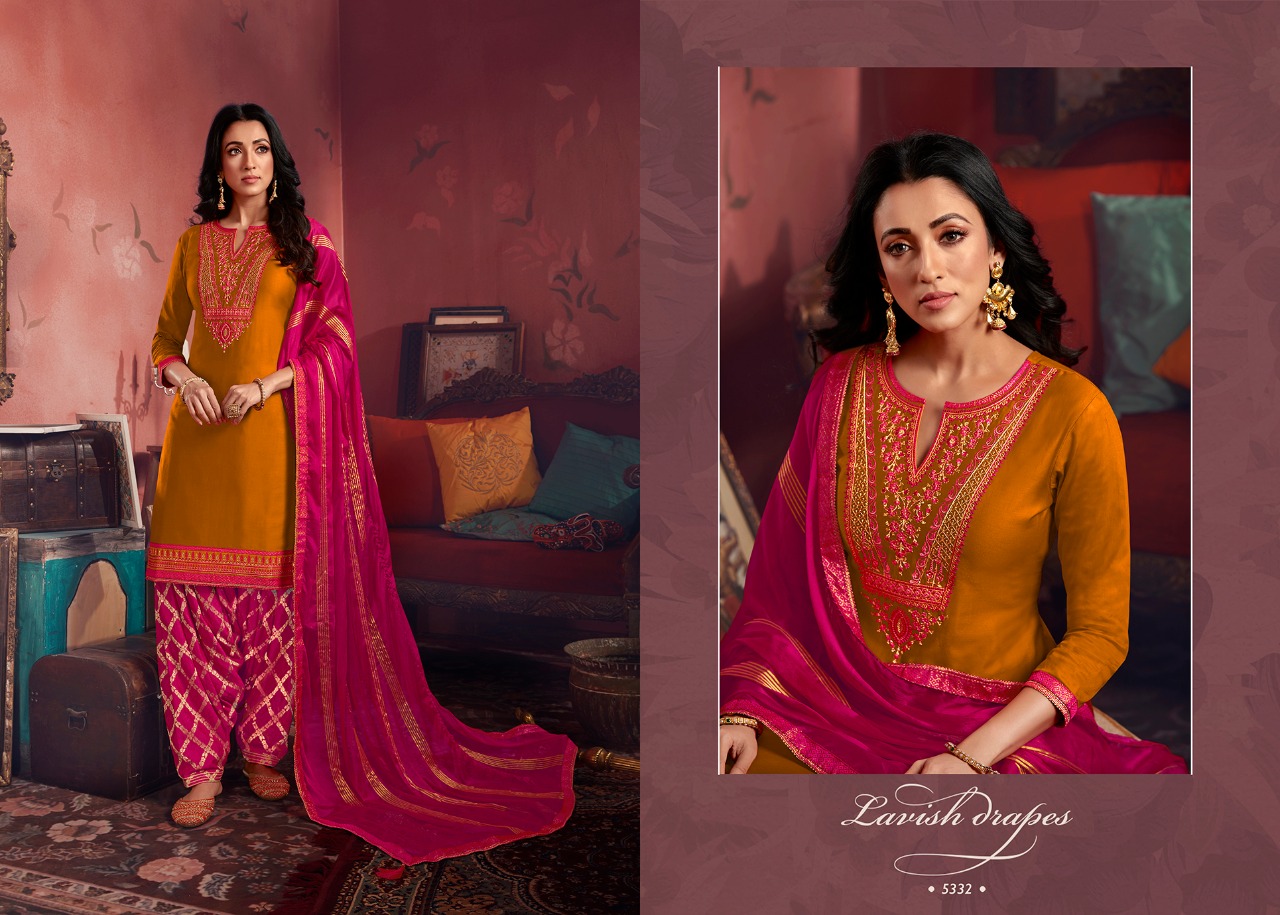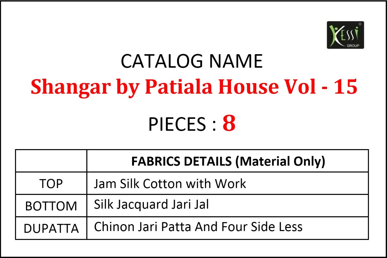 Kessi Fabrics Pvt. Ltd. has launched Catalog name : Shangar by Patiala House Vol - 15 Fabric Details ▪Top:- Jam Silk with Embroidery Work ▪Bottom:- Silk Jacquard Jari Jal ▪Dupatta:- Chinon Jari Patta and Four Side Less ▪Total Design:- 8 Rate - 899/- |