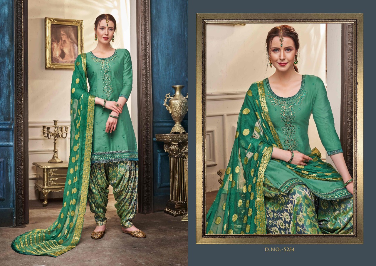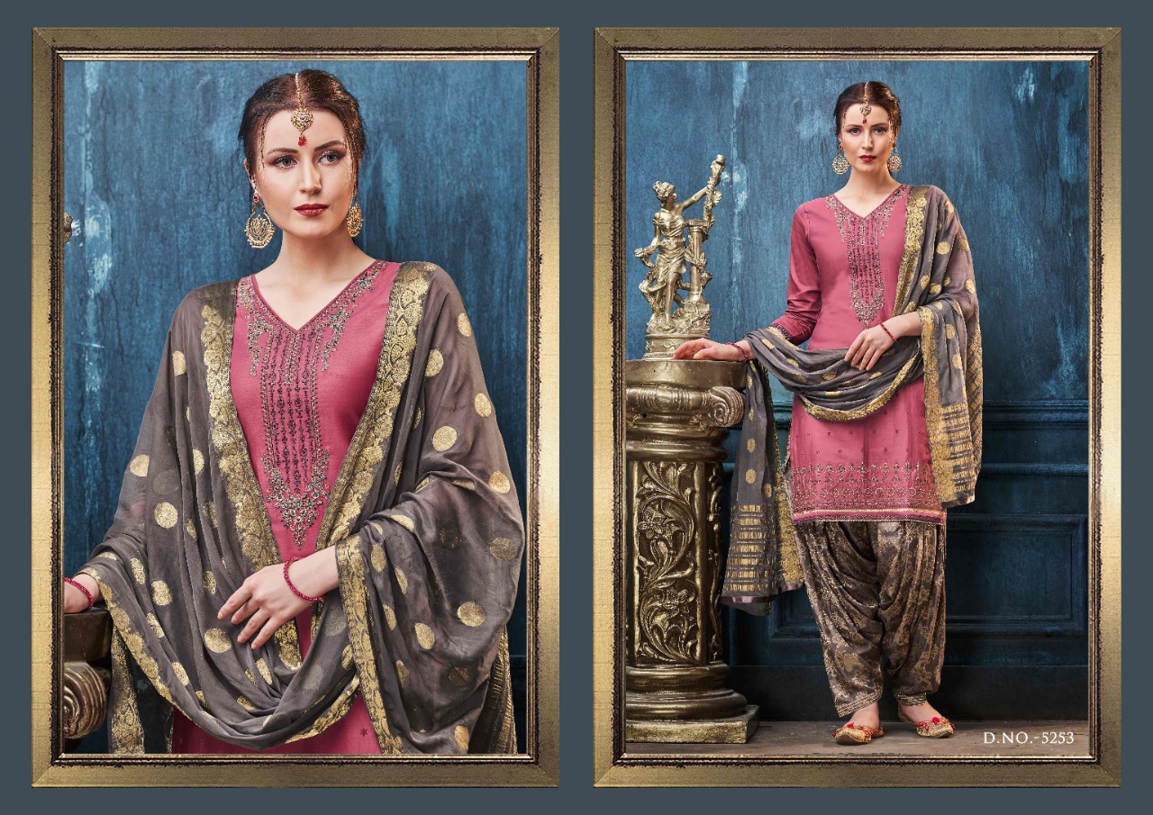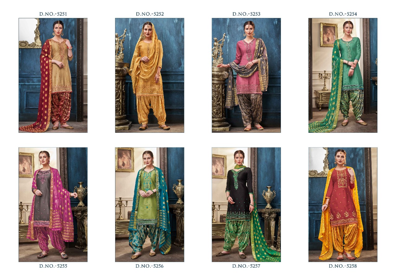 Kessi Fabrics Pvt. Ltd. has launched Catalog name : Shangar by Patiala Vol - 14 Fabric Details ▪Top:- Jam Silk Cotton with Work ▪Bottom:- Silk Jacquard Jari Jal ▪Dupatta:- Nazneen Jari Border Butta ▪Total Design:- 8 RATE - 899 /- |