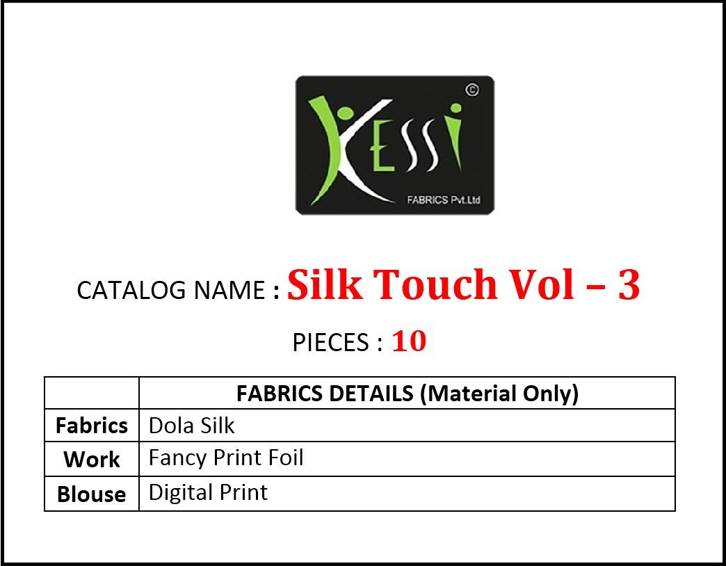 Brand - Kessi . Tyep - saree. Catlog Name - SILK TOUCH VOL -3. Rate -799 per pcs . Set To set. GST 5 Percent Extra. Delivery 2 days |