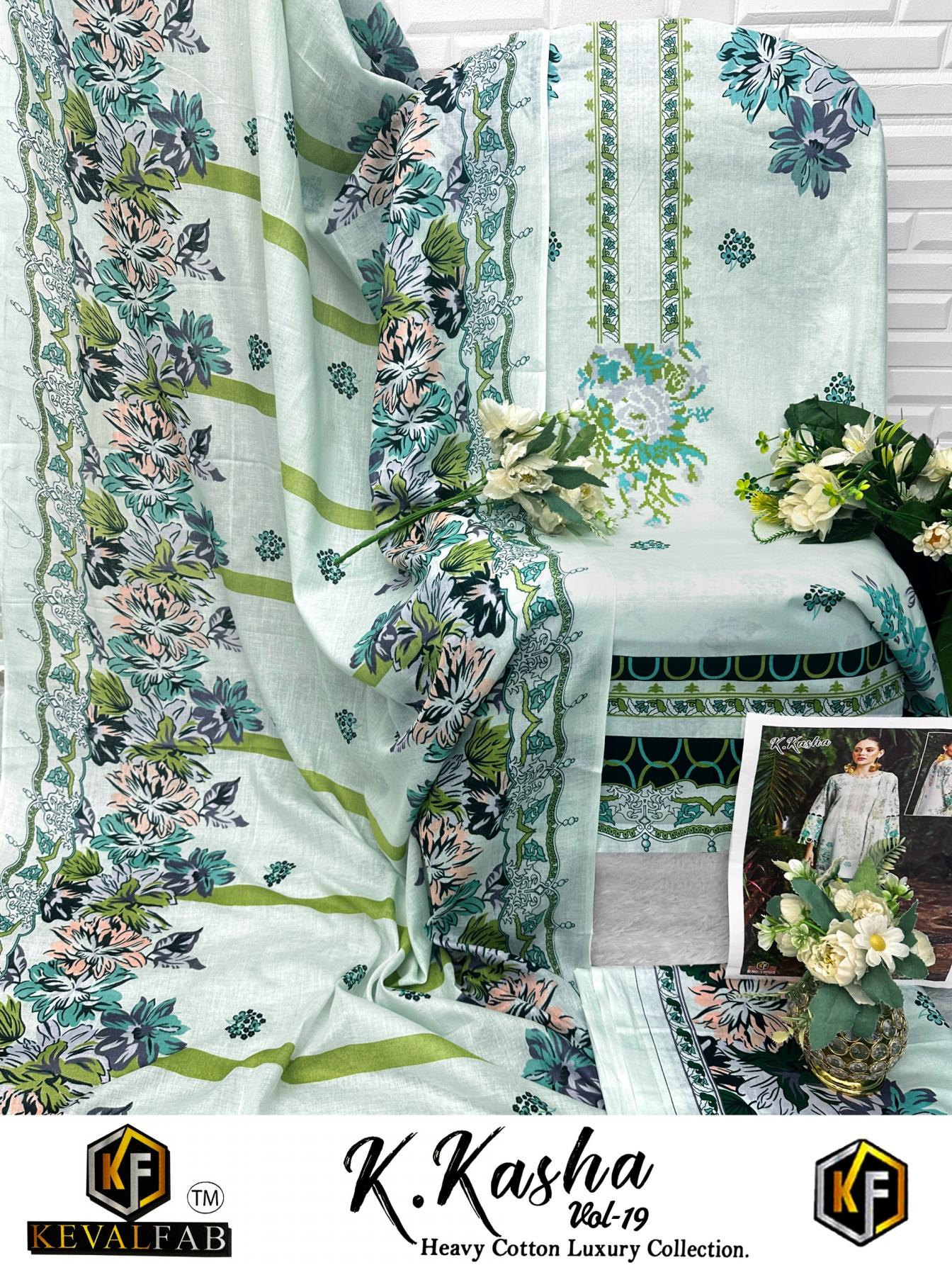 keval fab k kasha vol 19 amazing cotton pakistani 3pcs dress