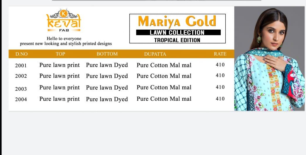 Keval Fab Mariya Gold Collection Pure Lawn Printed Salwar Kameez Trader