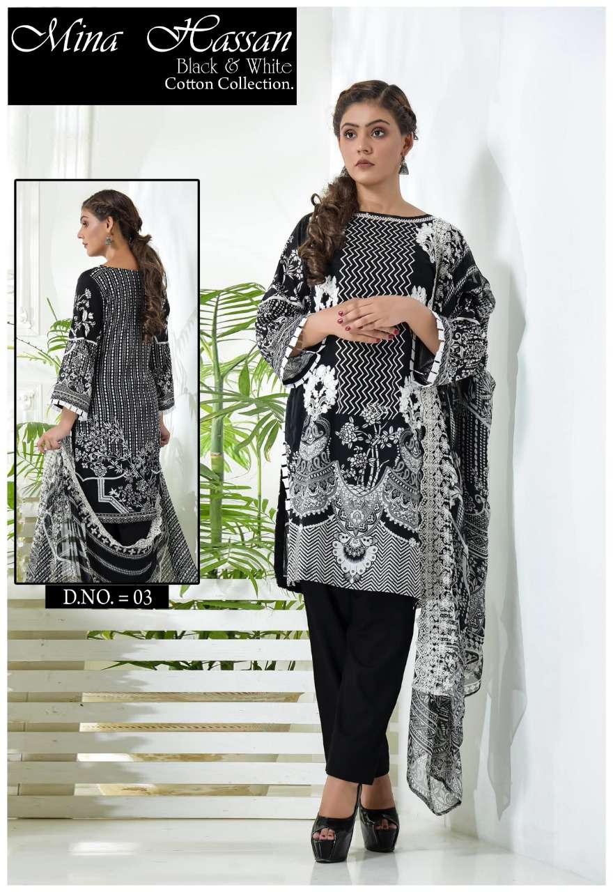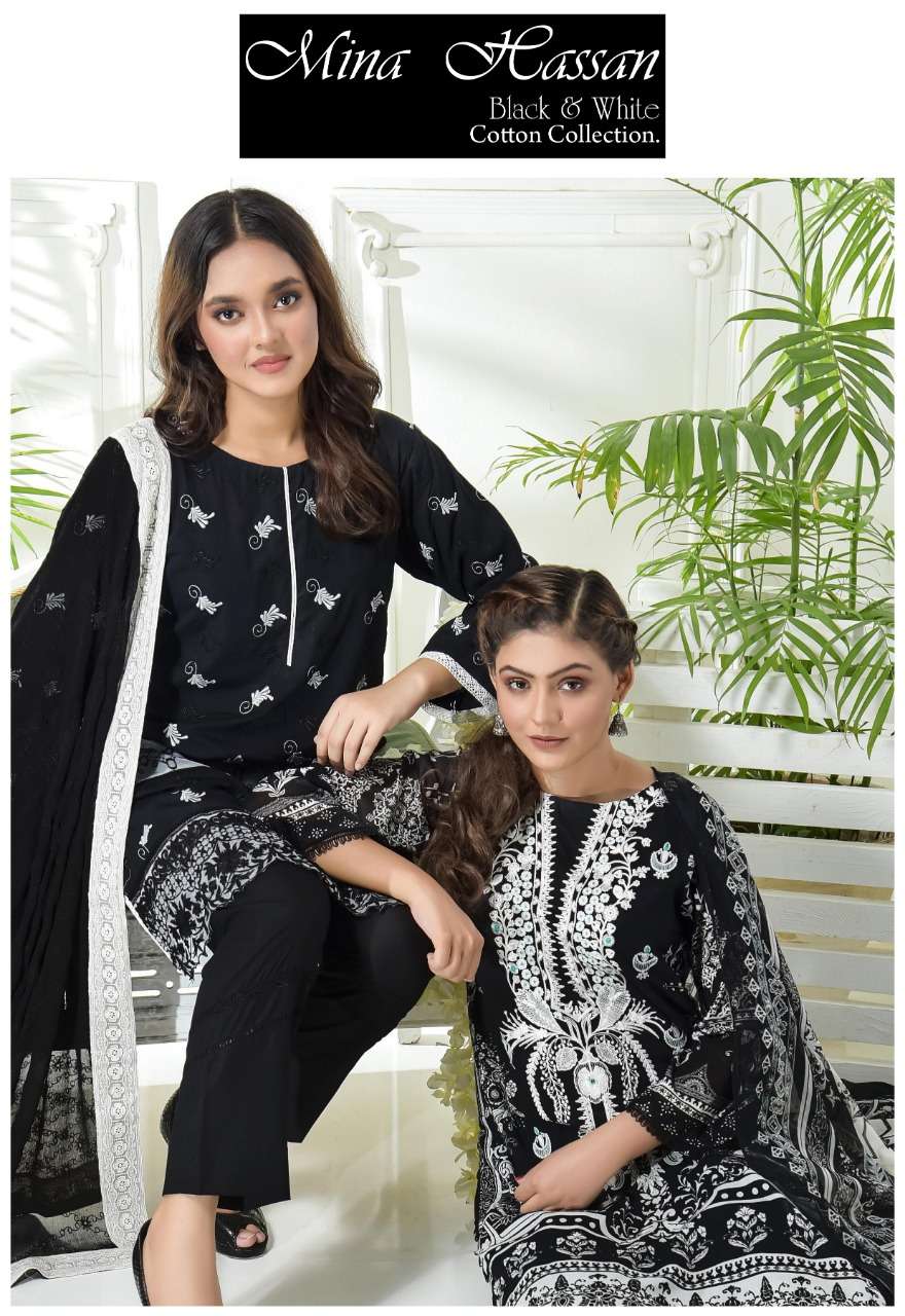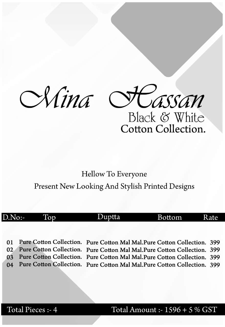 NEW LUNCHING HEAVY COTTON COLLECTION MINA HASSAN BLACK N WHITE COTTON COLLECTION 💫 BOTTOM COTTON 2.00 MTR DUPATTA PRINTED COTTON 2.25 MTR PRICE 371 EXCLUSIVE PAUCH 👜 |