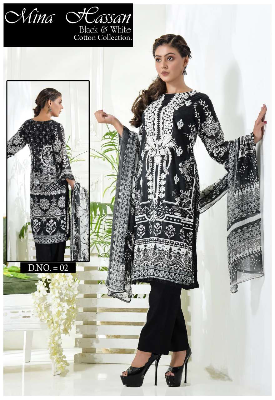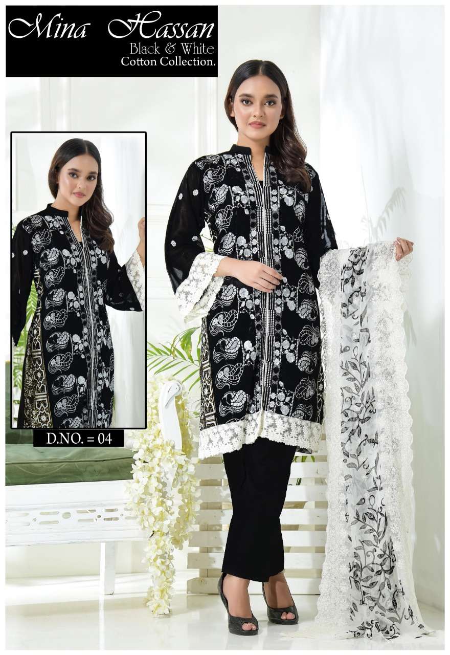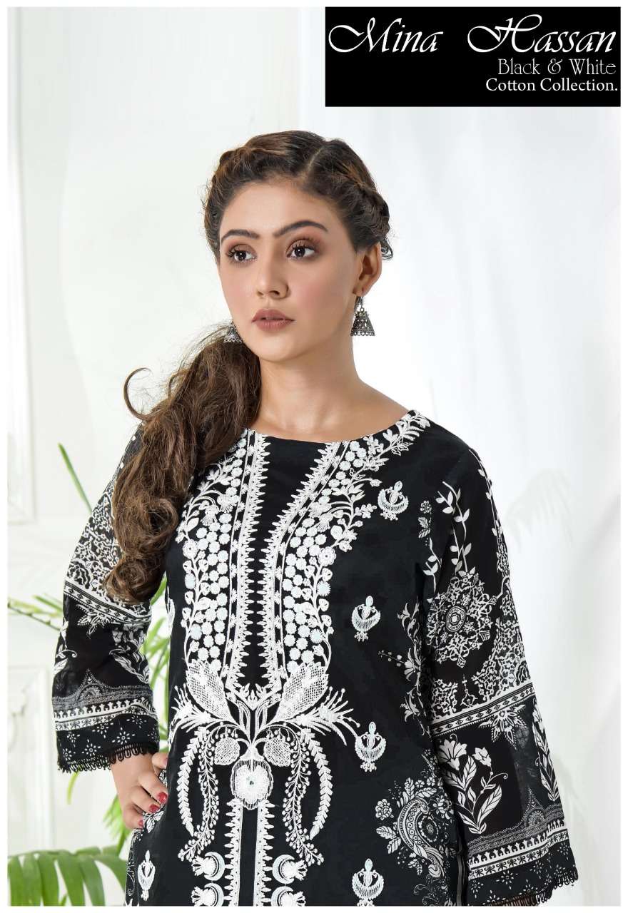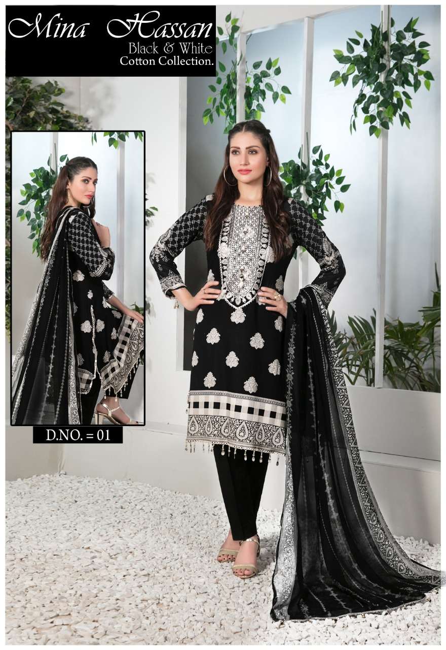 NEW LUNCHING HEAVY COTTON COLLECTION MINA HASSAN BLACK N WHITE COTTON COLLECTION 💫 BOTTOM COTTON 2.00 MTR DUPATTA PRINTED COTTON 2.25 MTR PRICE 371 EXCLUSIVE PAUCH 👜 |