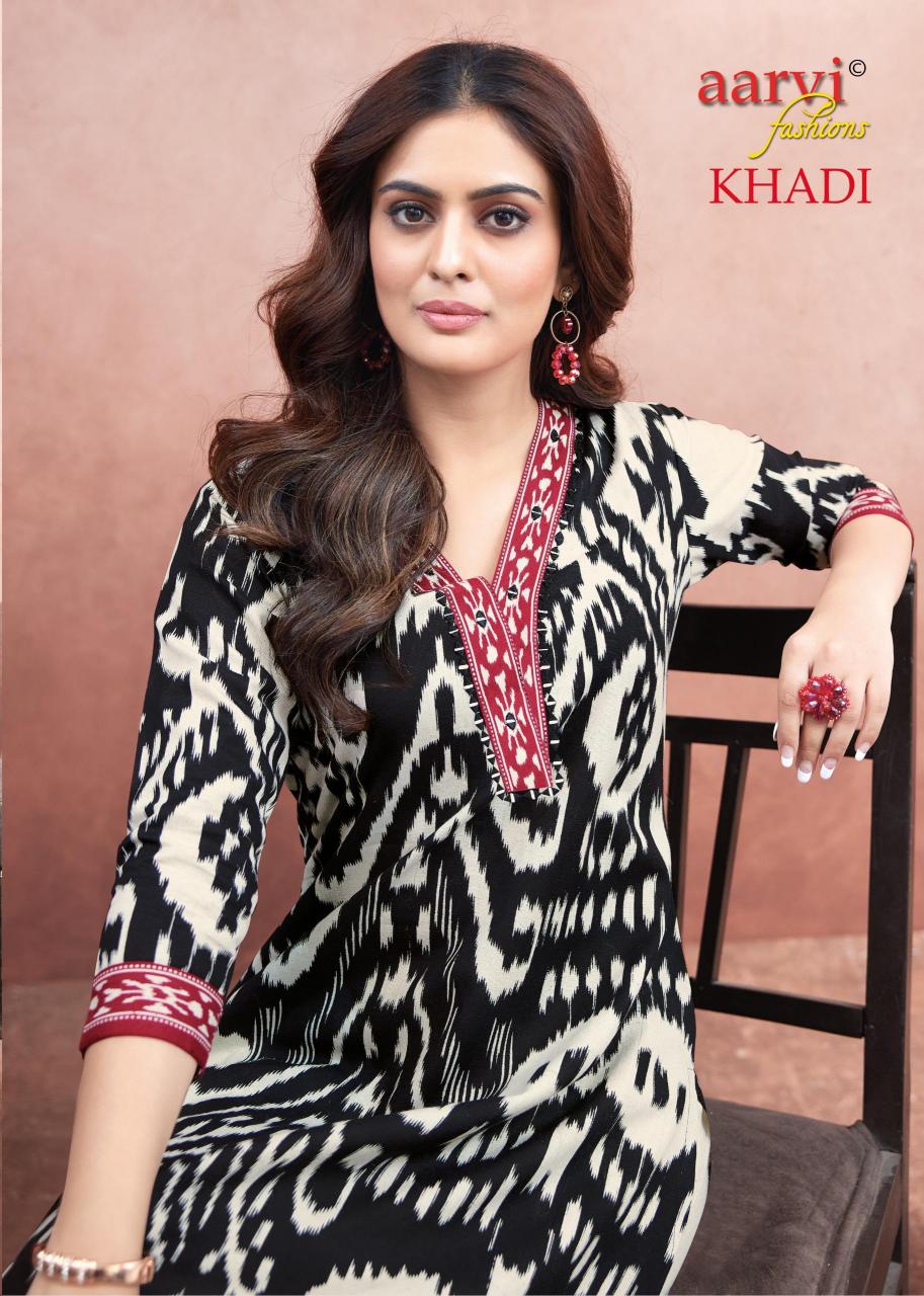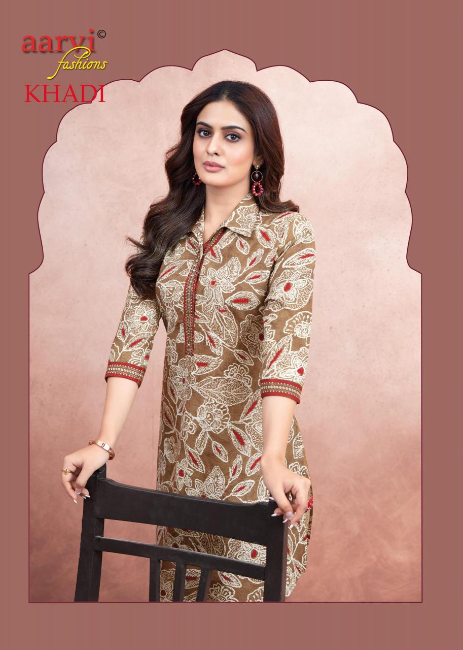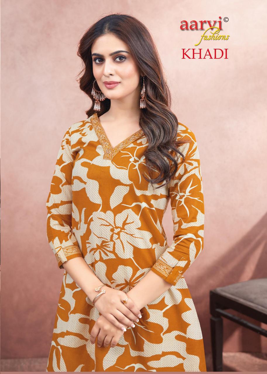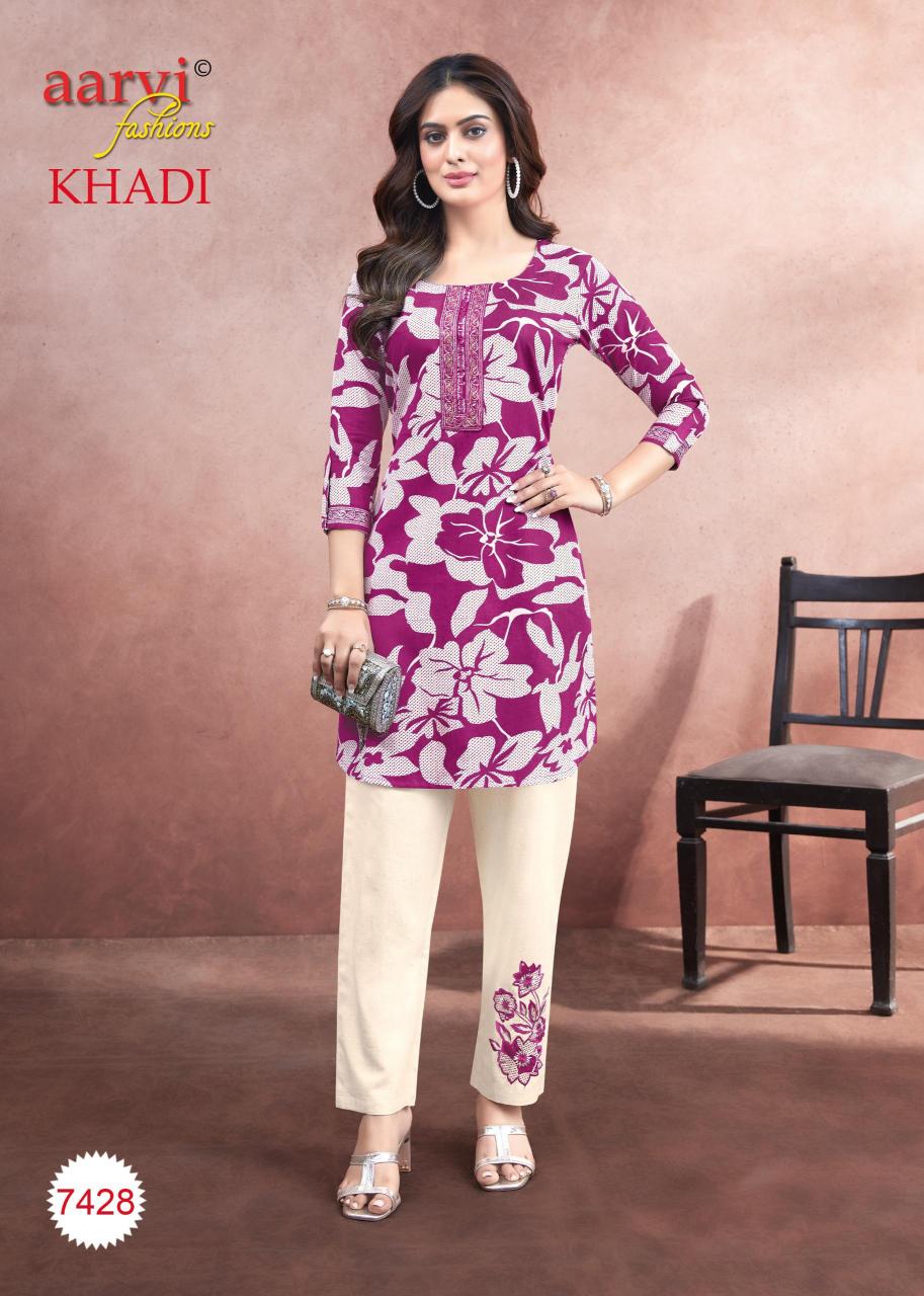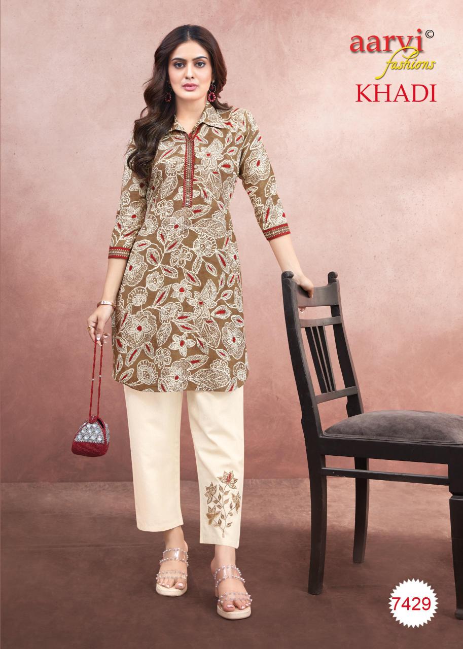 khadi vol 1 by aarvi fashion fully stitch cotton casual kurti with pant