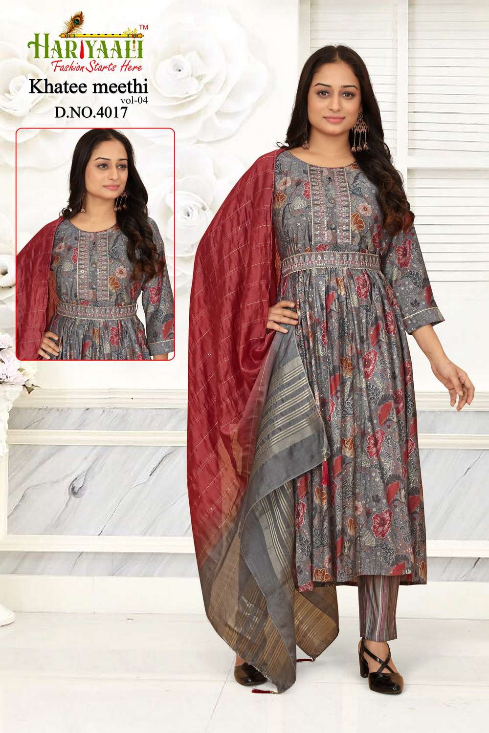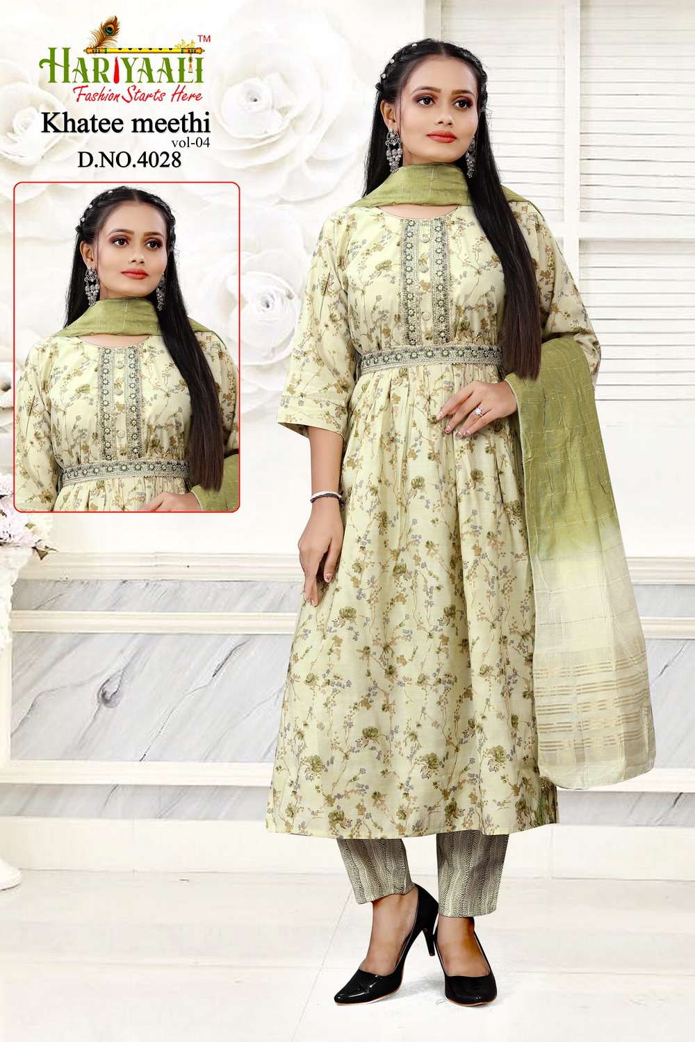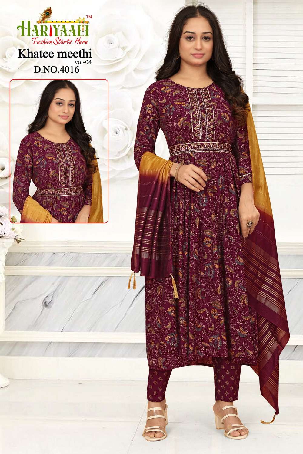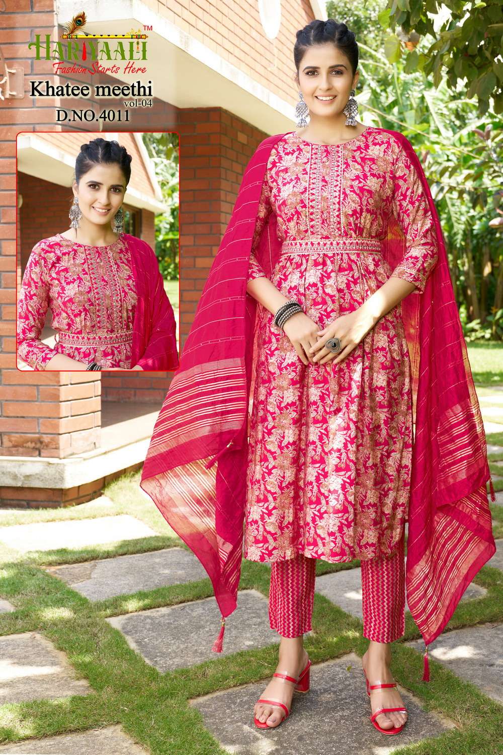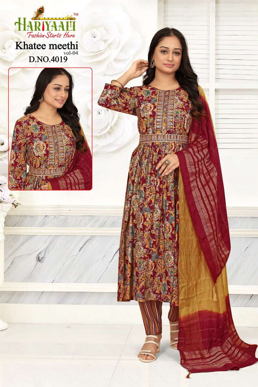 khatee meethi vol 4 by hariyaali readymade nayra cut salwar kameez combo set