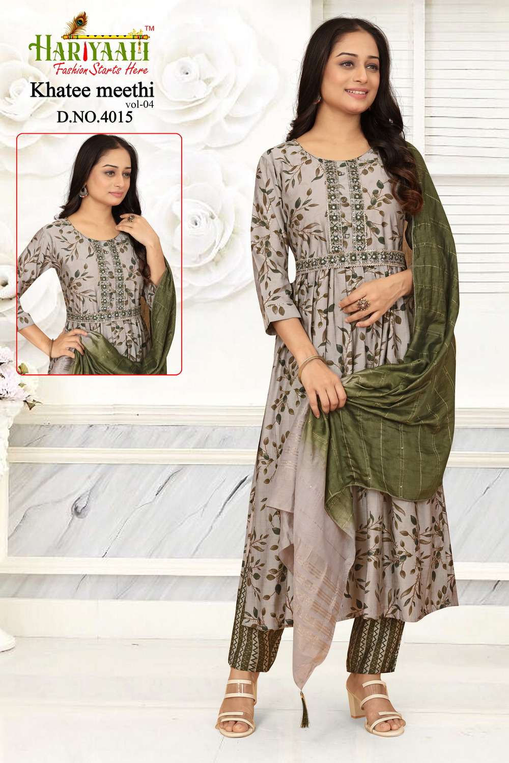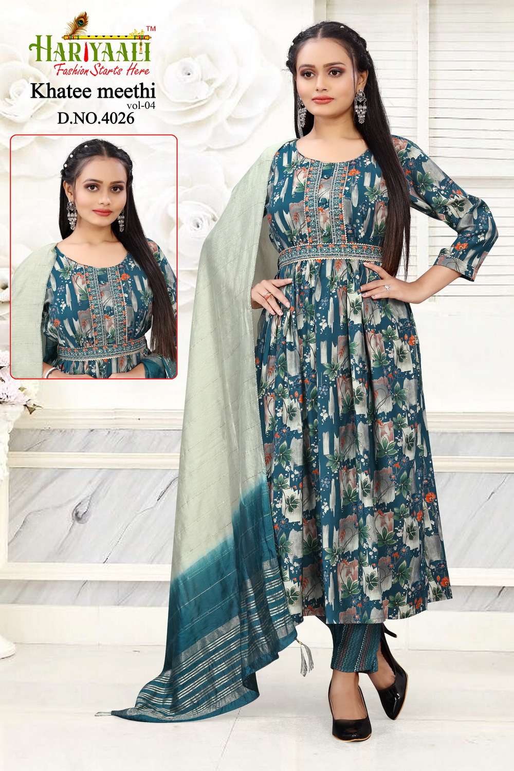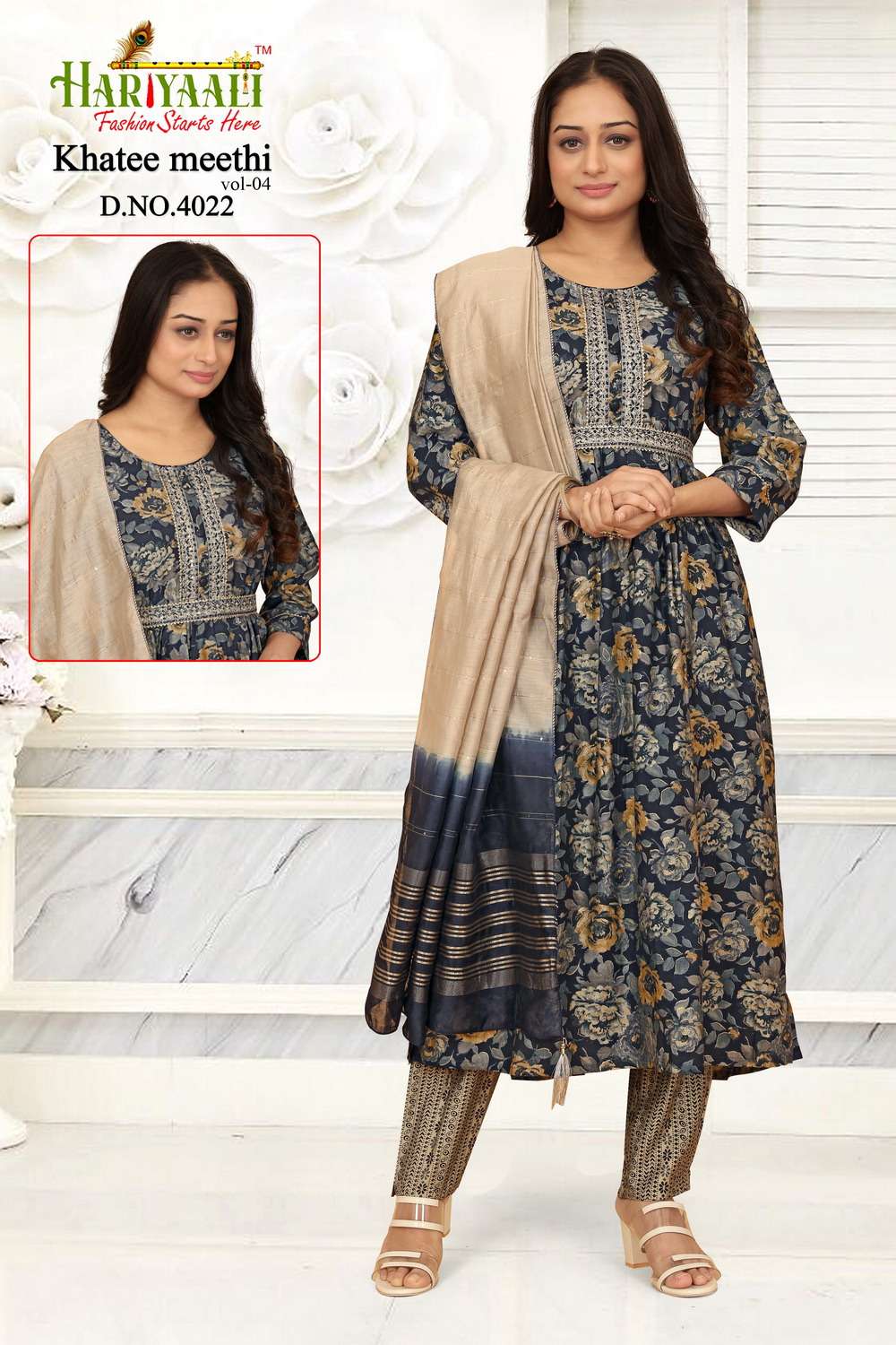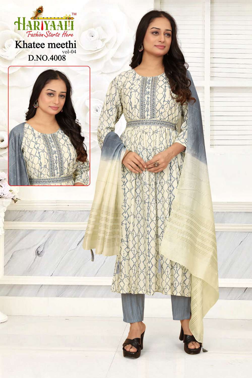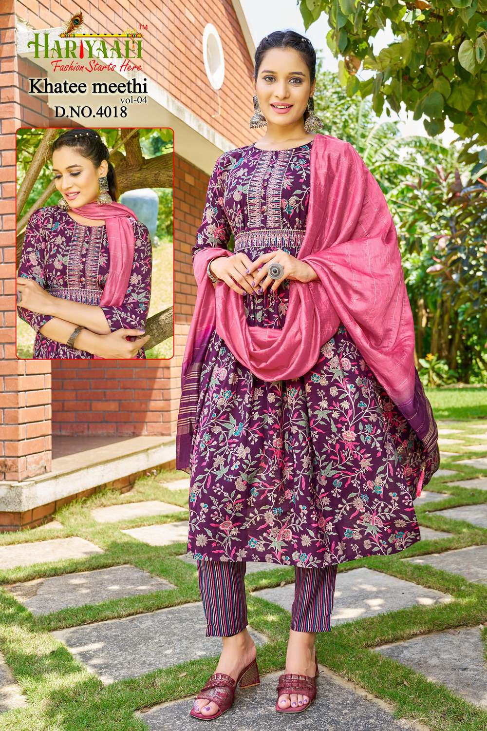 khatee meethi vol 4 by hariyaali readymade nayra cut salwar kameez combo set